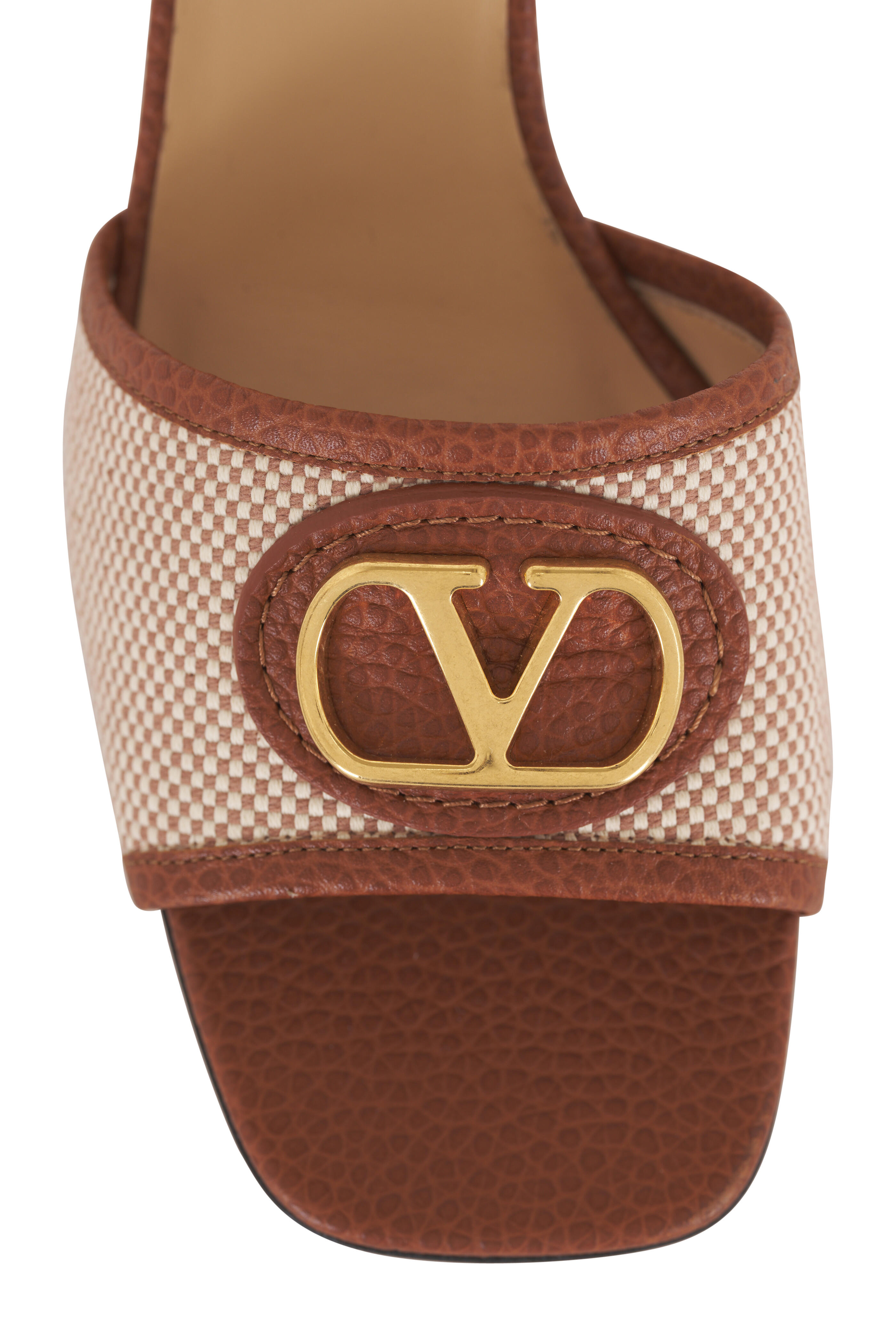 Canvas upper. Open toe. Adjustable buckle ankle strap. VLogo detail. Leather lining and insole. Leather sole. Gold-tone hardware. Made in Italy. Heel measurement: 75mm.