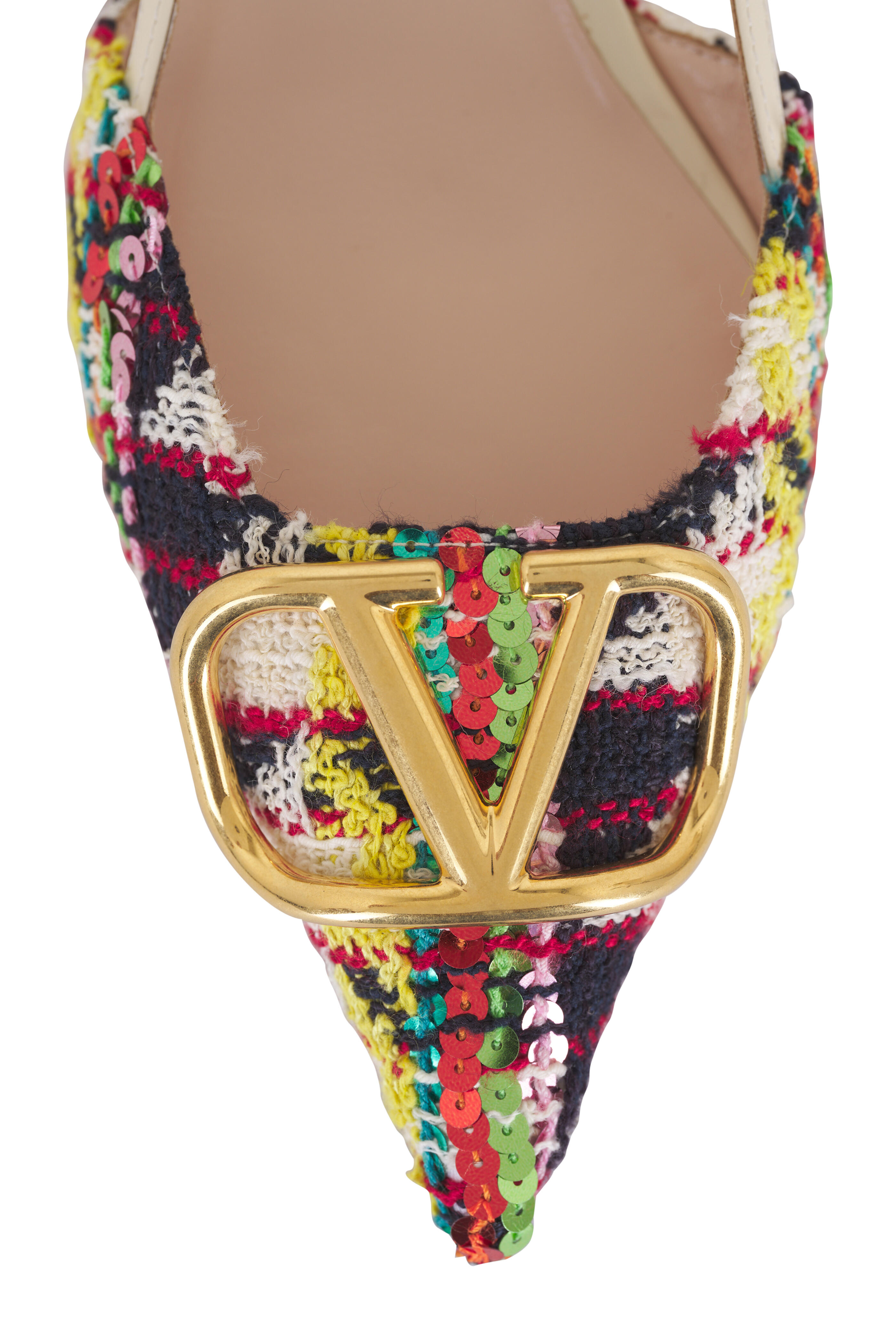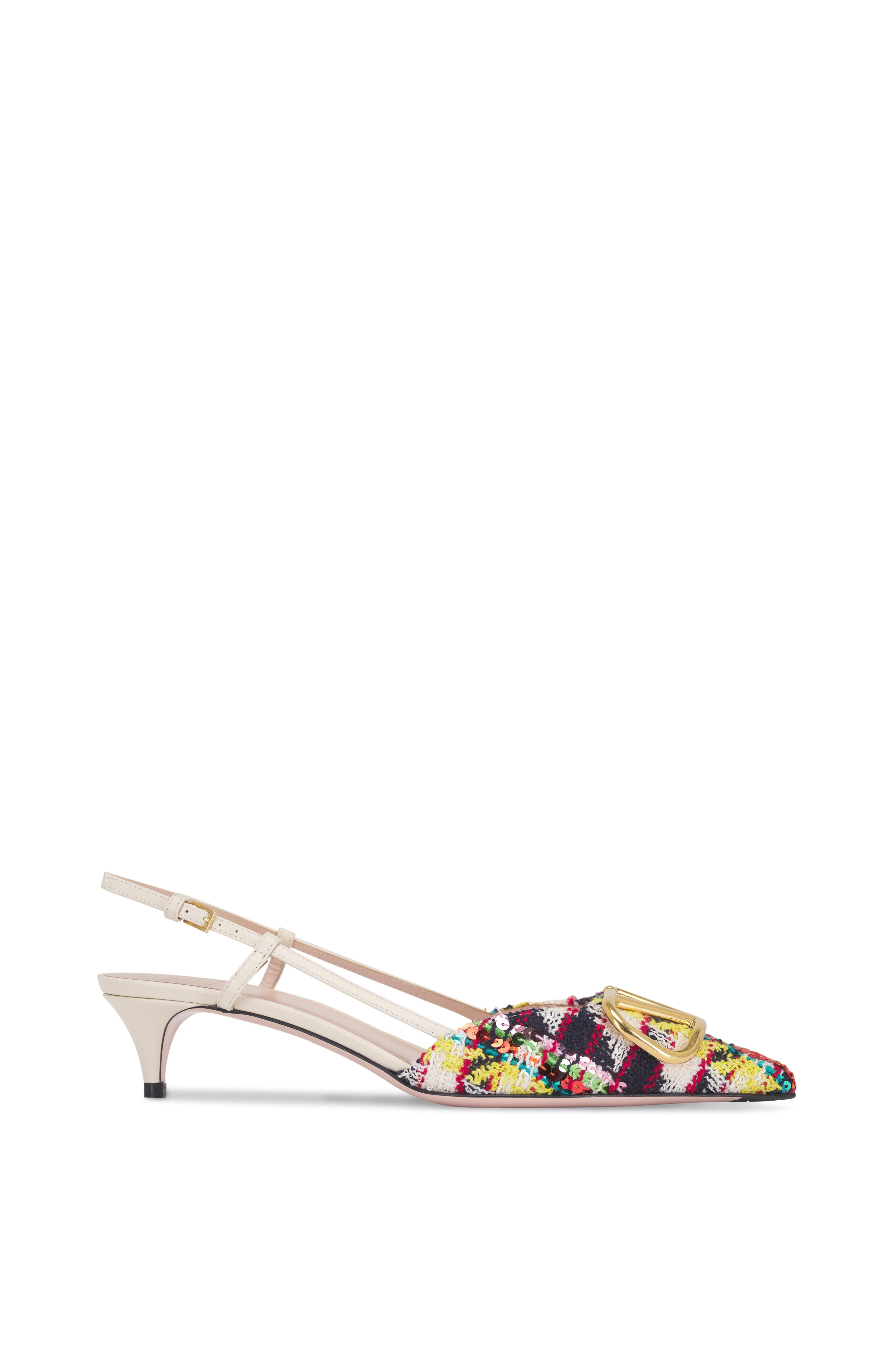 VLogo Multicolor Tweed & Leather Slingback, 40mm