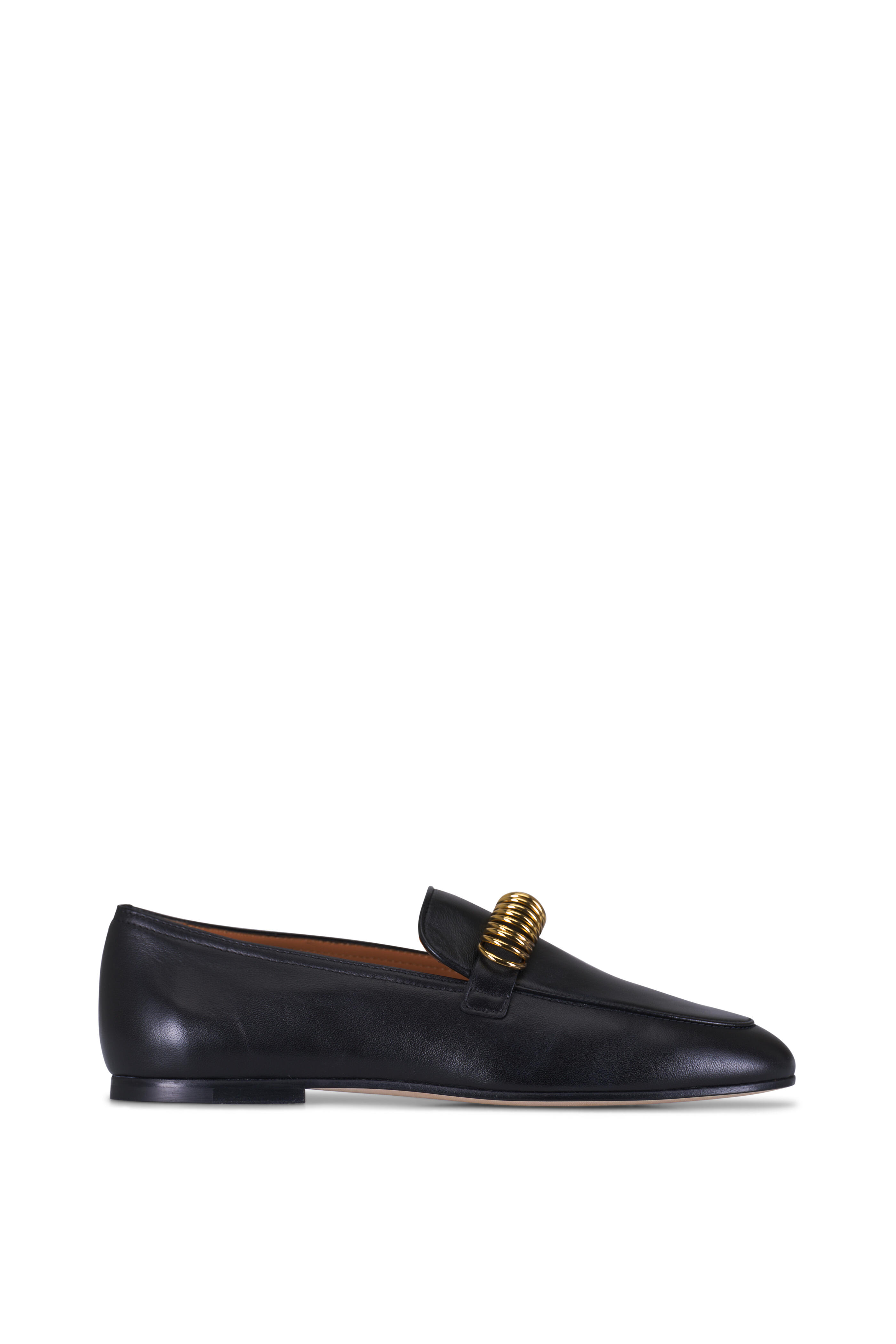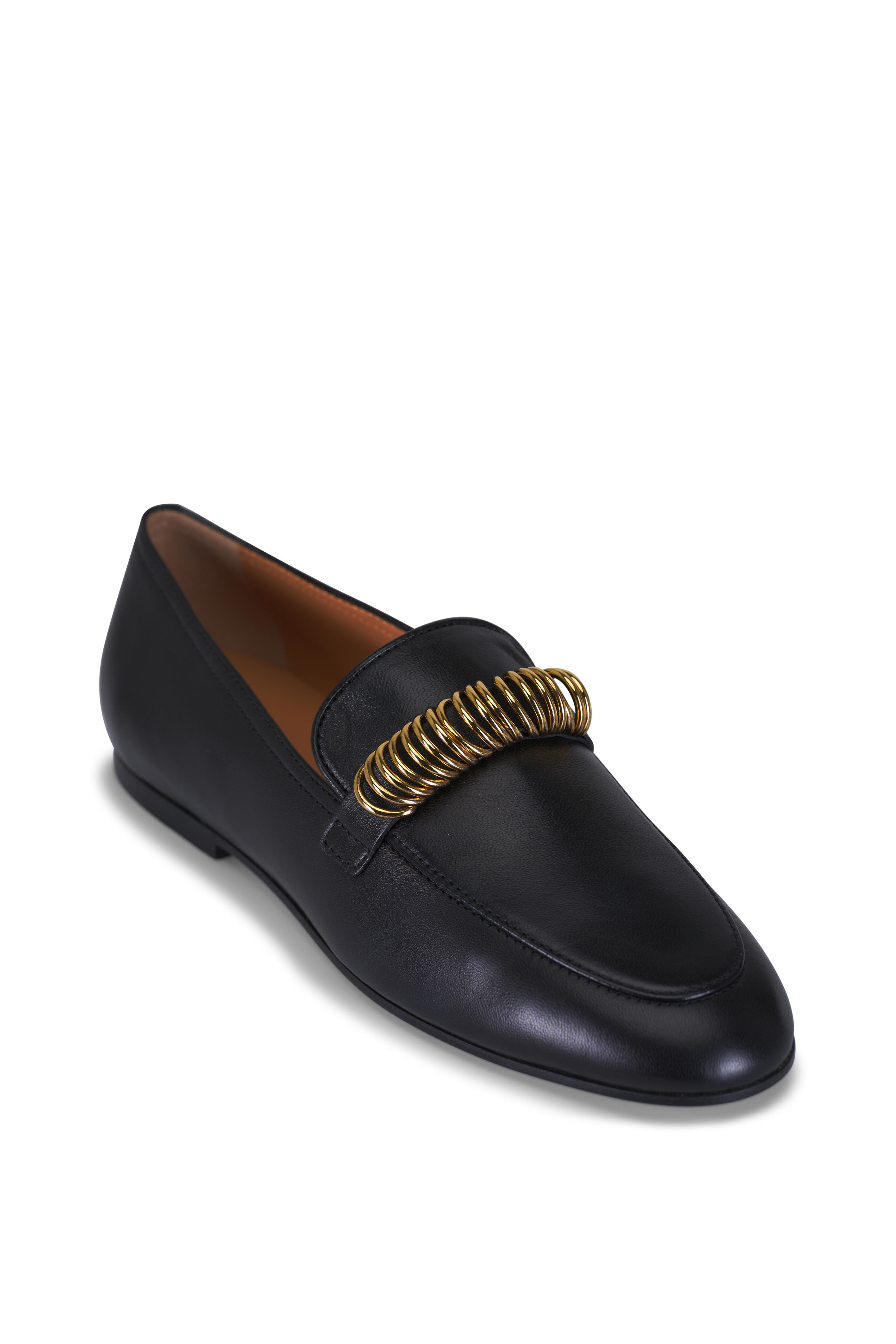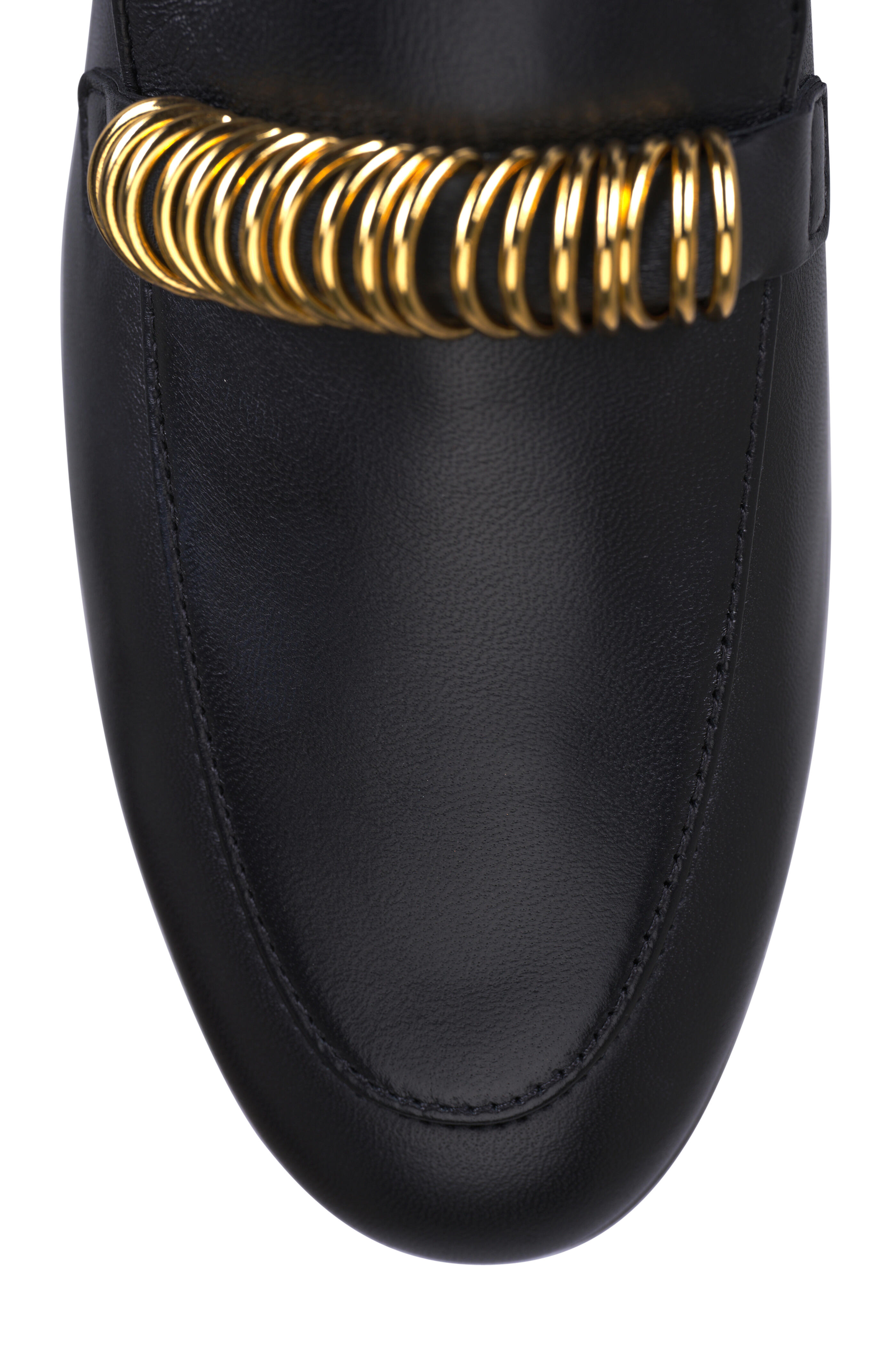 Leather upper. Round toe. Penny strap across vamp; decorative metal rings. Leather lining and insole. Leather sole. Made in Italy.