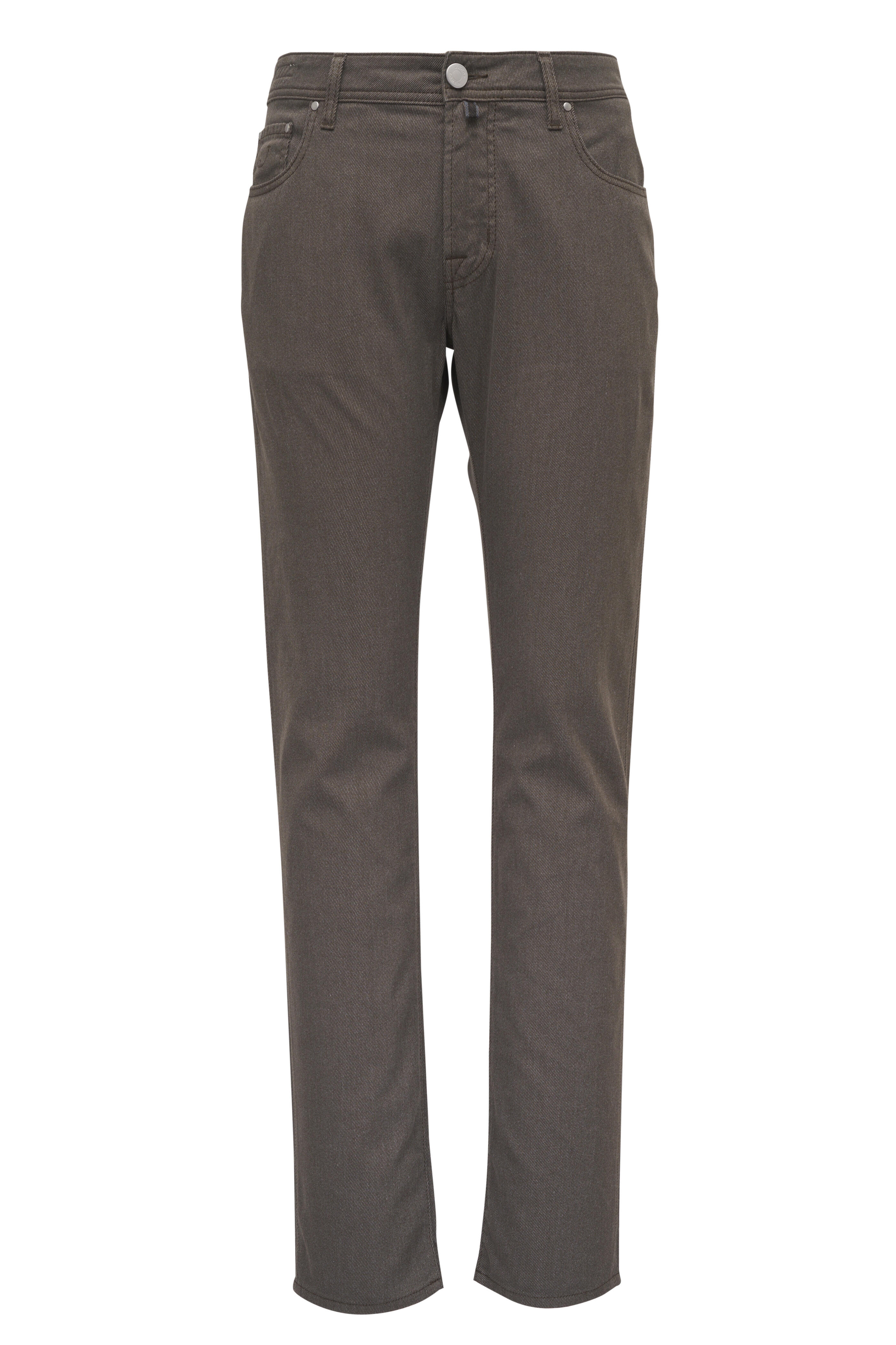 Zip fly with button closure. Banded waist; belt loops. Five pocket styling. Made in Italy. Inseam 34". 74% cotton, 24% polyester, 2% elastane. Machine wash.