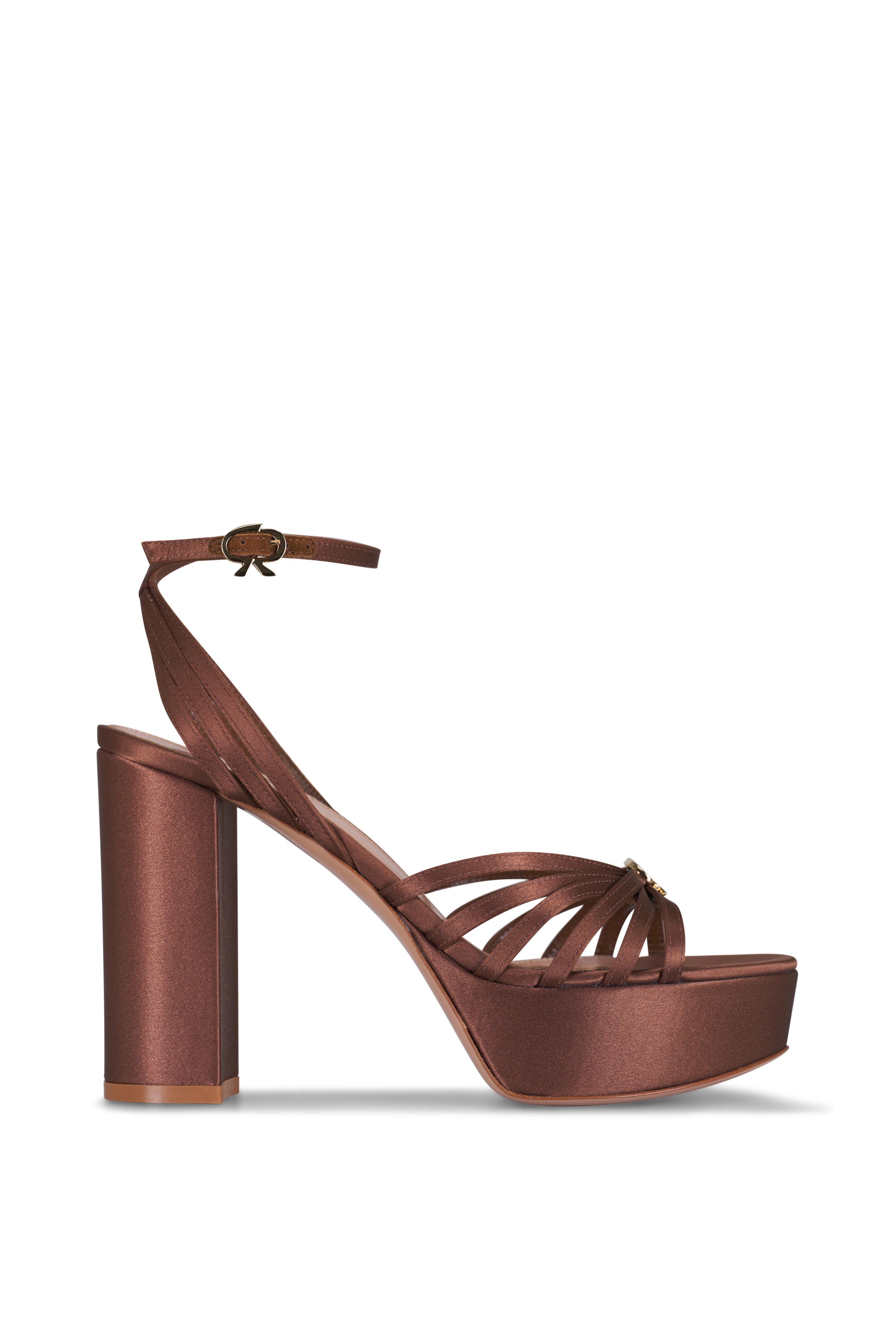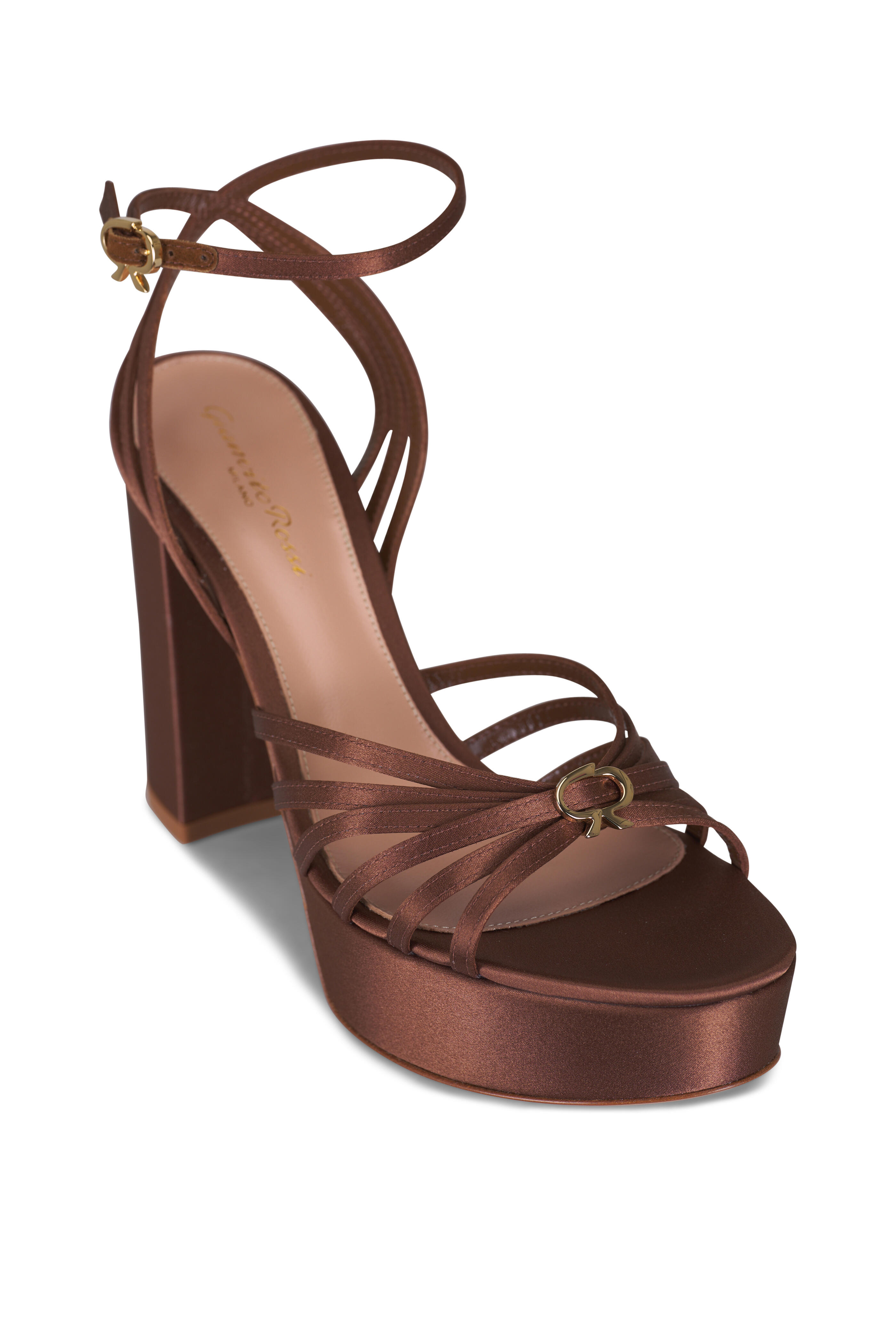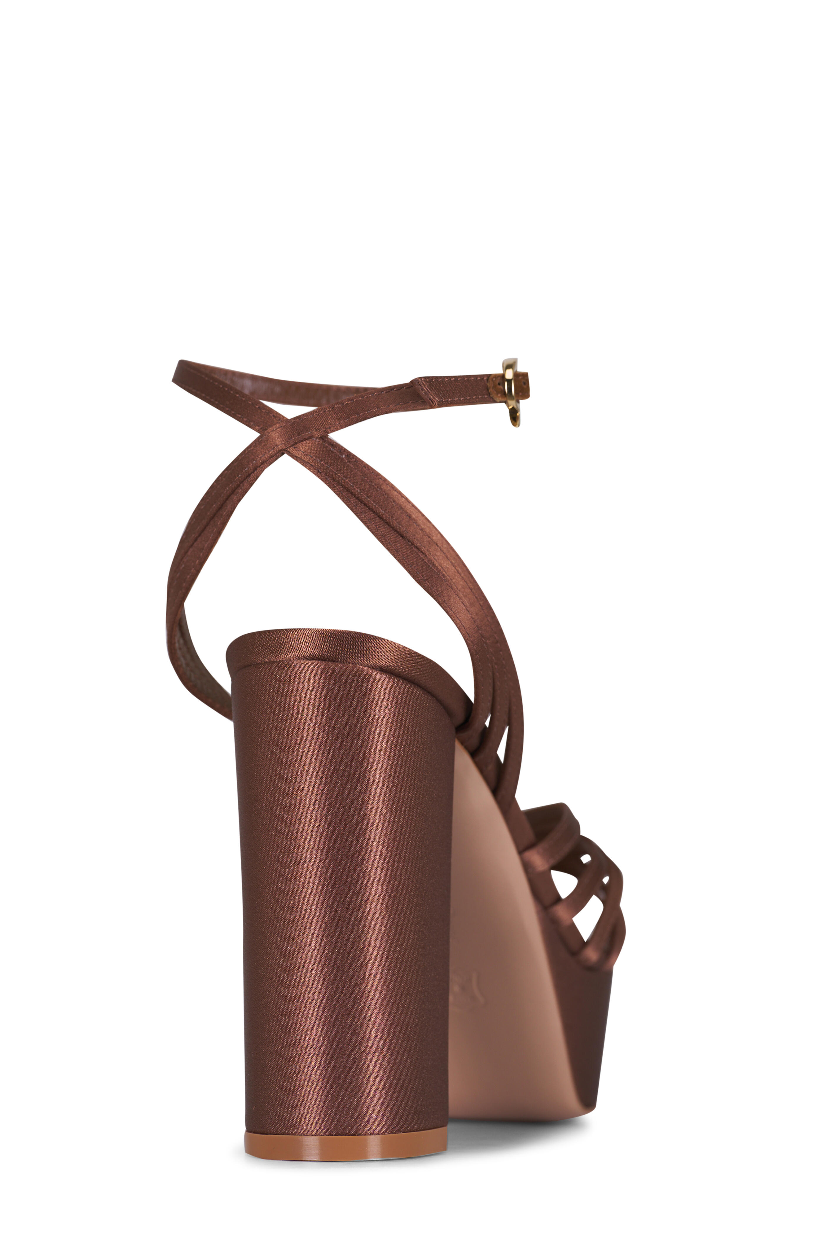 Mocha Texas Crepe Satin Strappy Sandal, 70mm