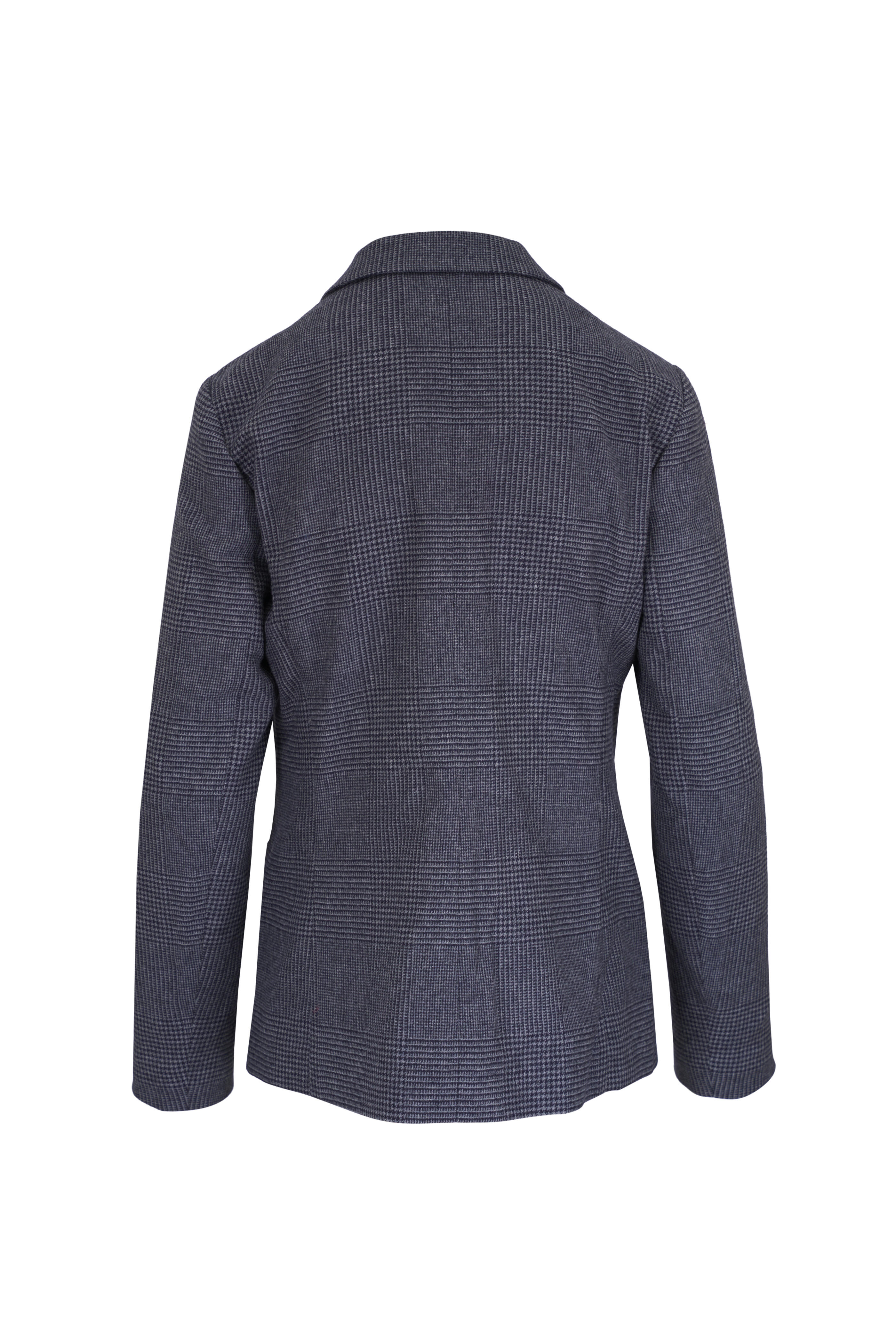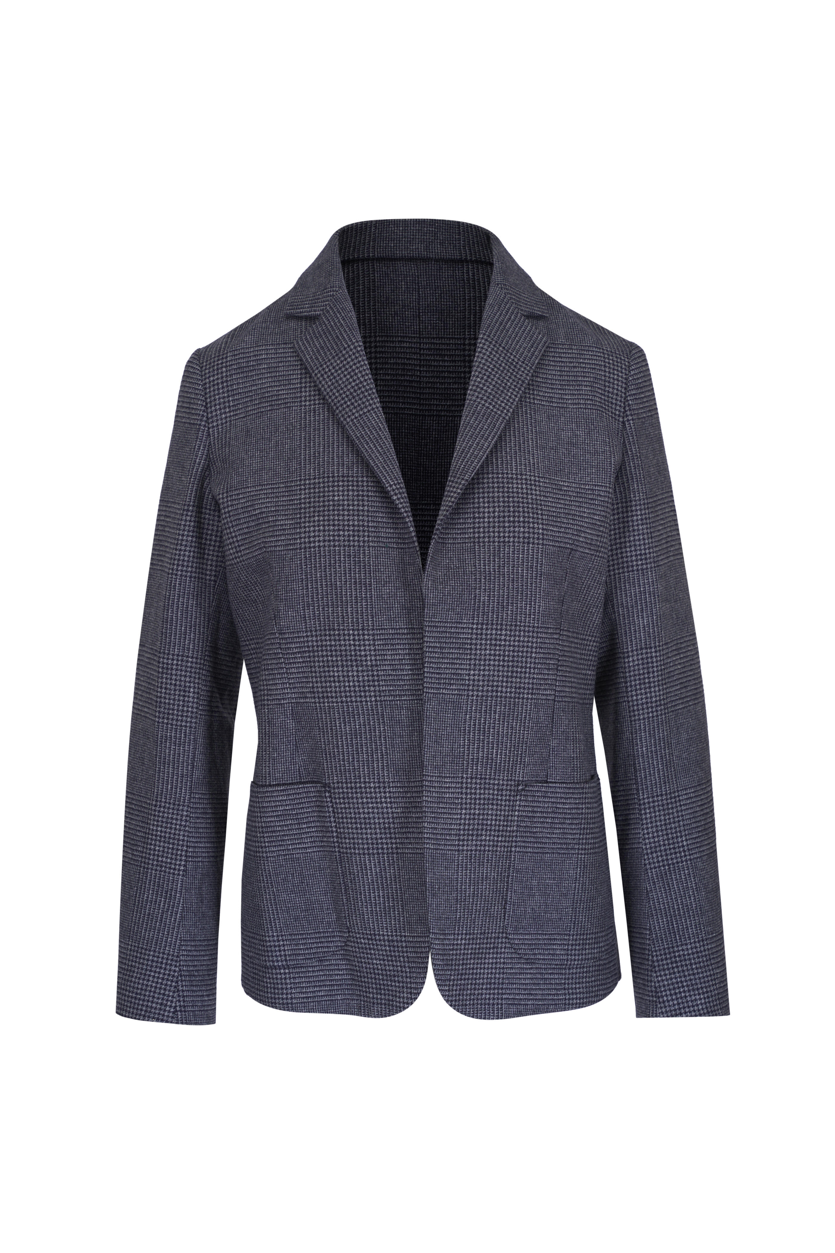Notched lapel collar. Open front. Lower patch pockets. Made in Italy. Approximately 26" shoulder to hem (measurements taken from size 0). 95% virgin wool, 5% cashmere. Dry clean.