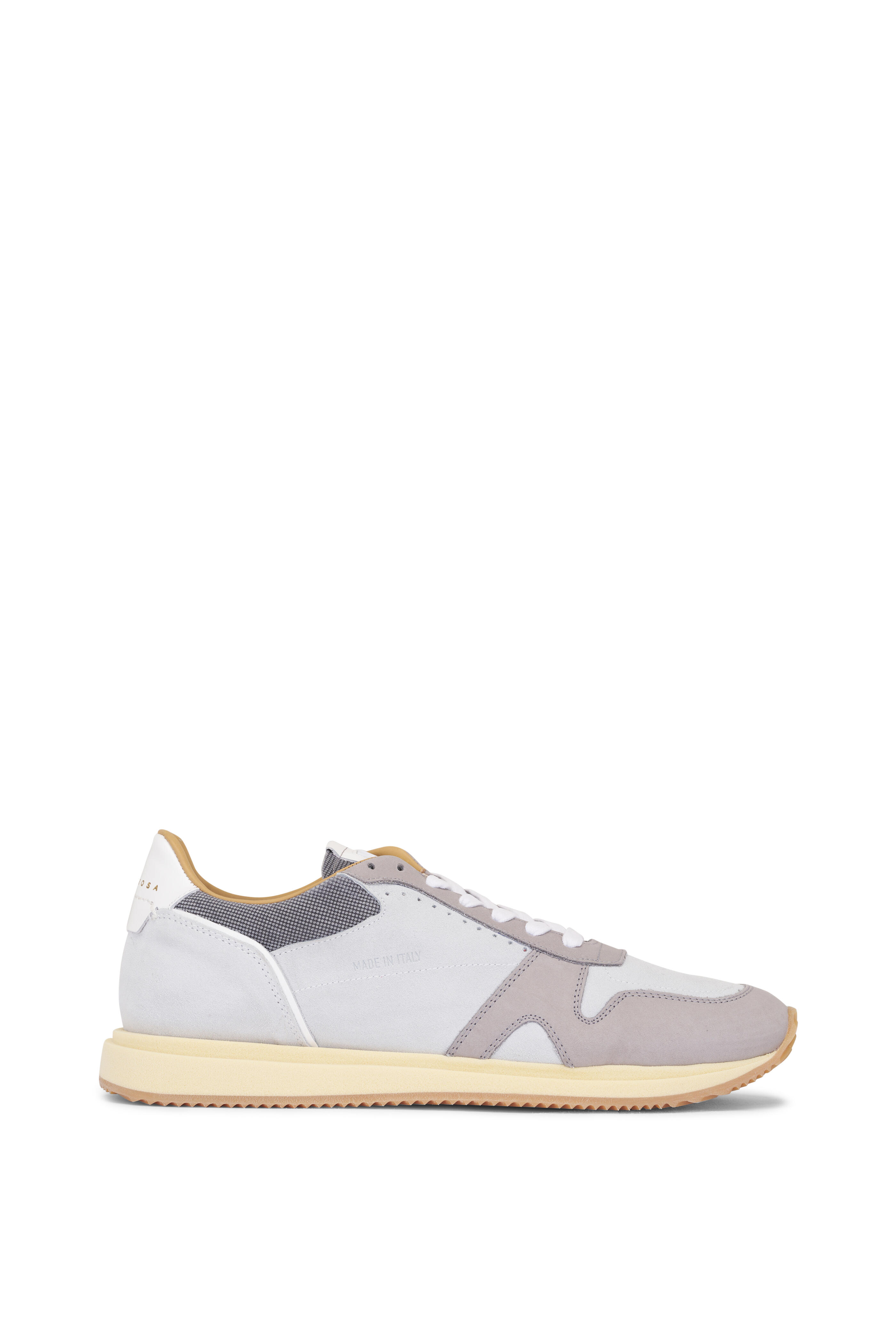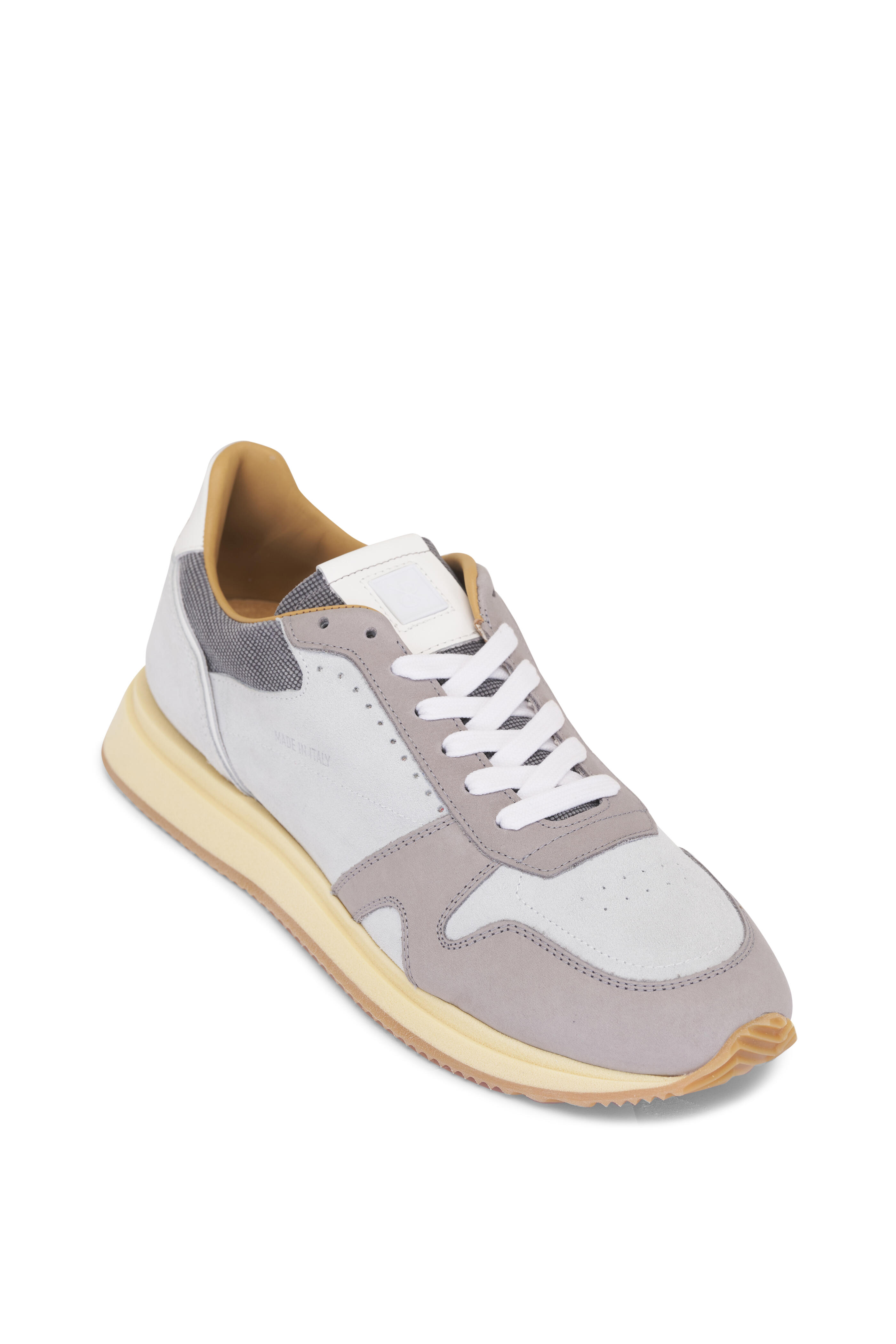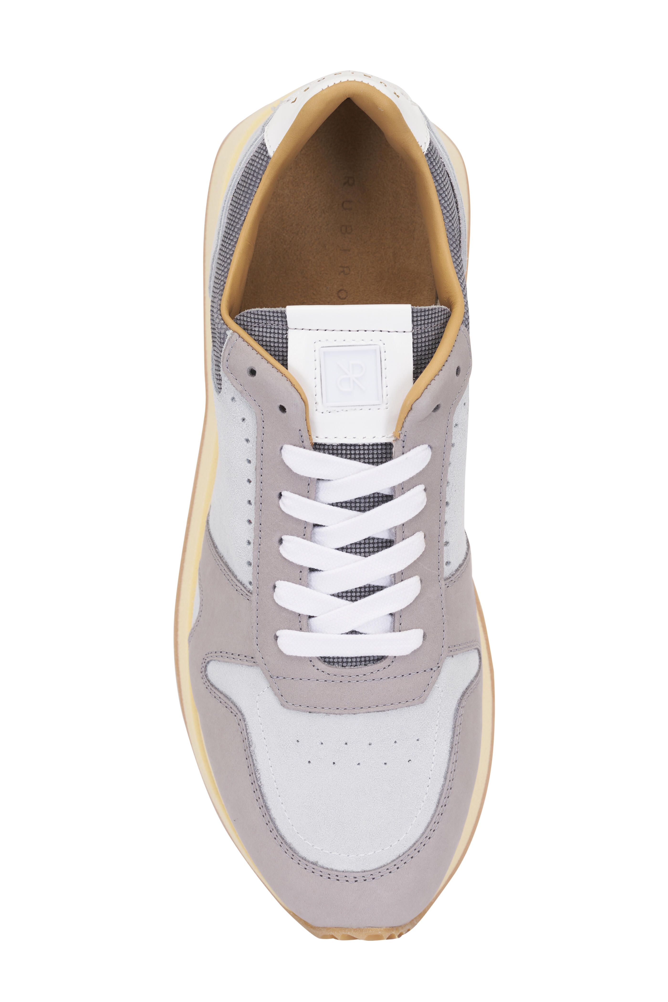 Leather and suede upper. Round toe. Lace up closure. Embossed logo on heel. Leather and cotton lining. Suede insole. Rubber sole. Made in Italy.