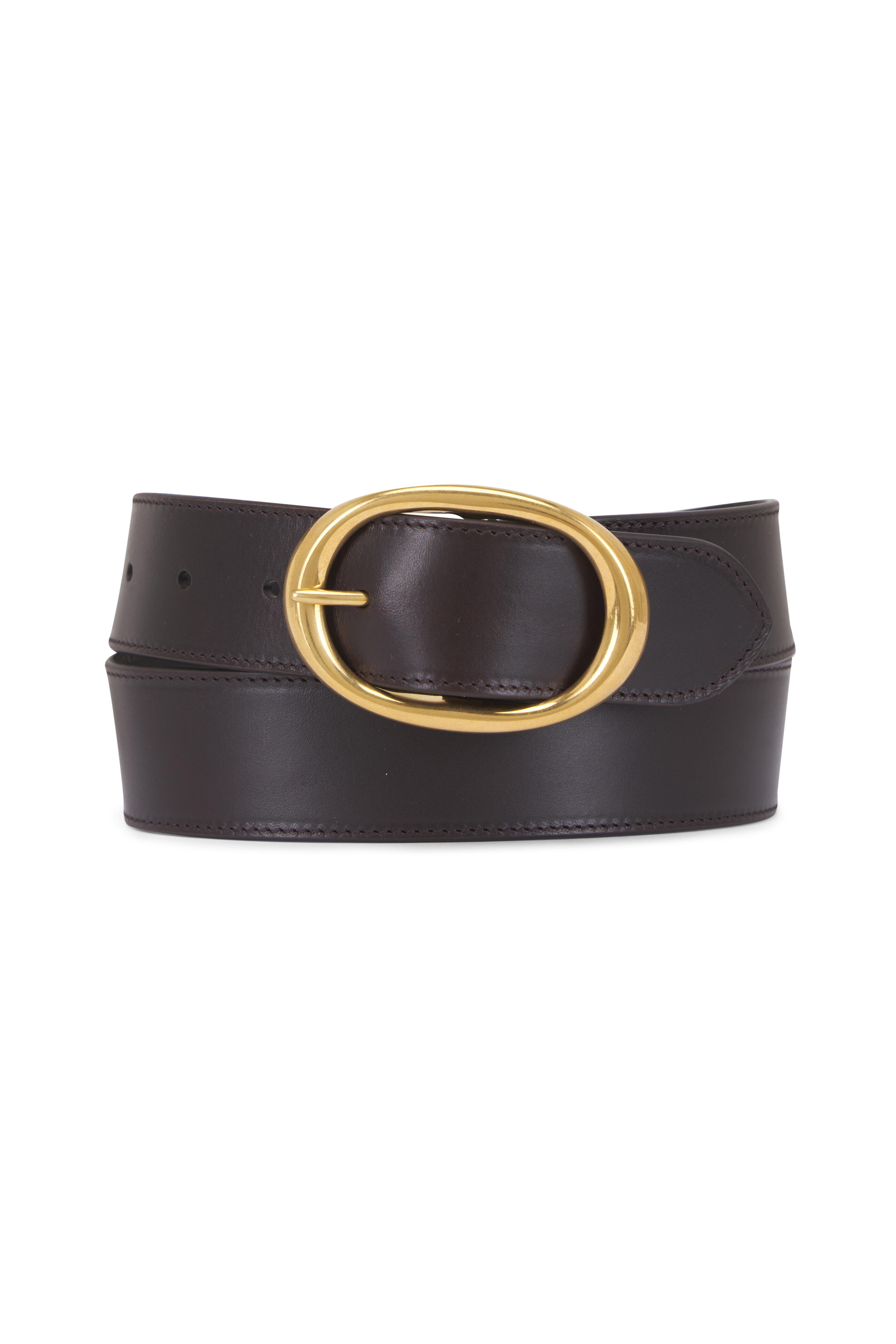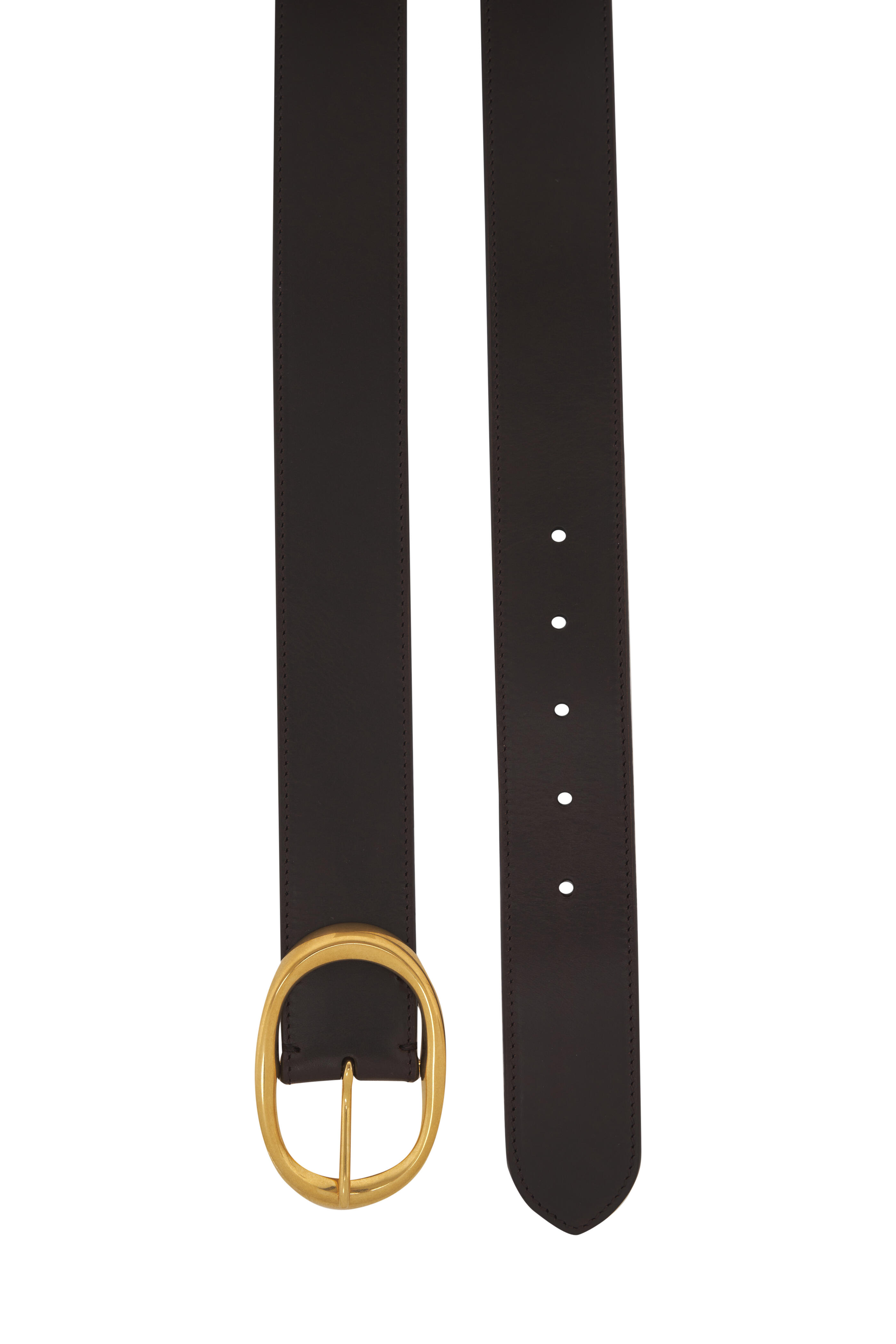 Leather. Gold round buckle. Tapered tip. Made in Italy. Width: 1.5''.