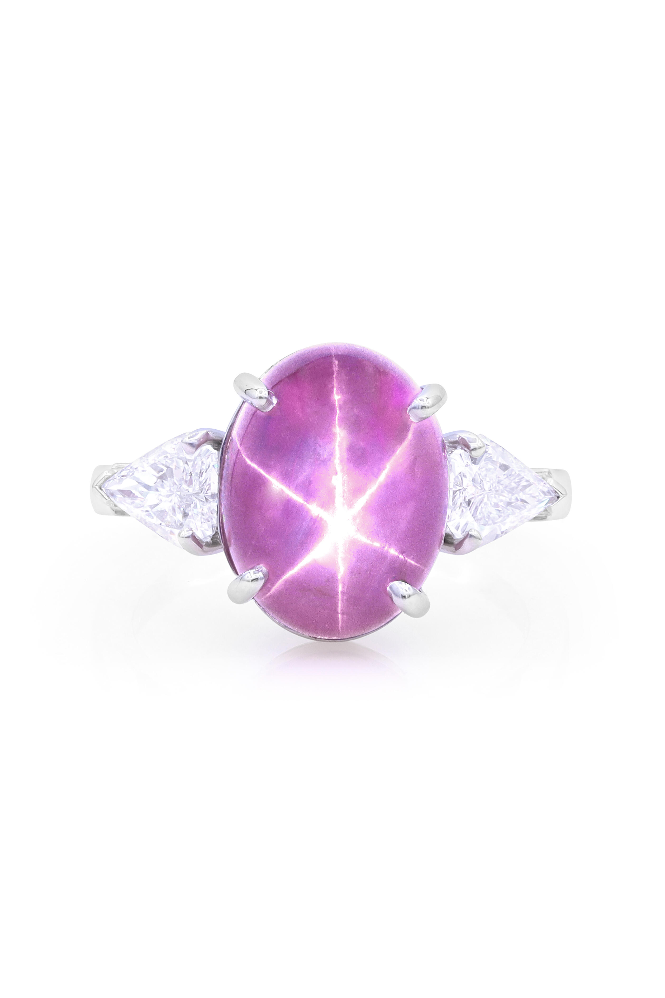 Platinum. 10.27 carat cabo star ruby. .80 carat diamond.