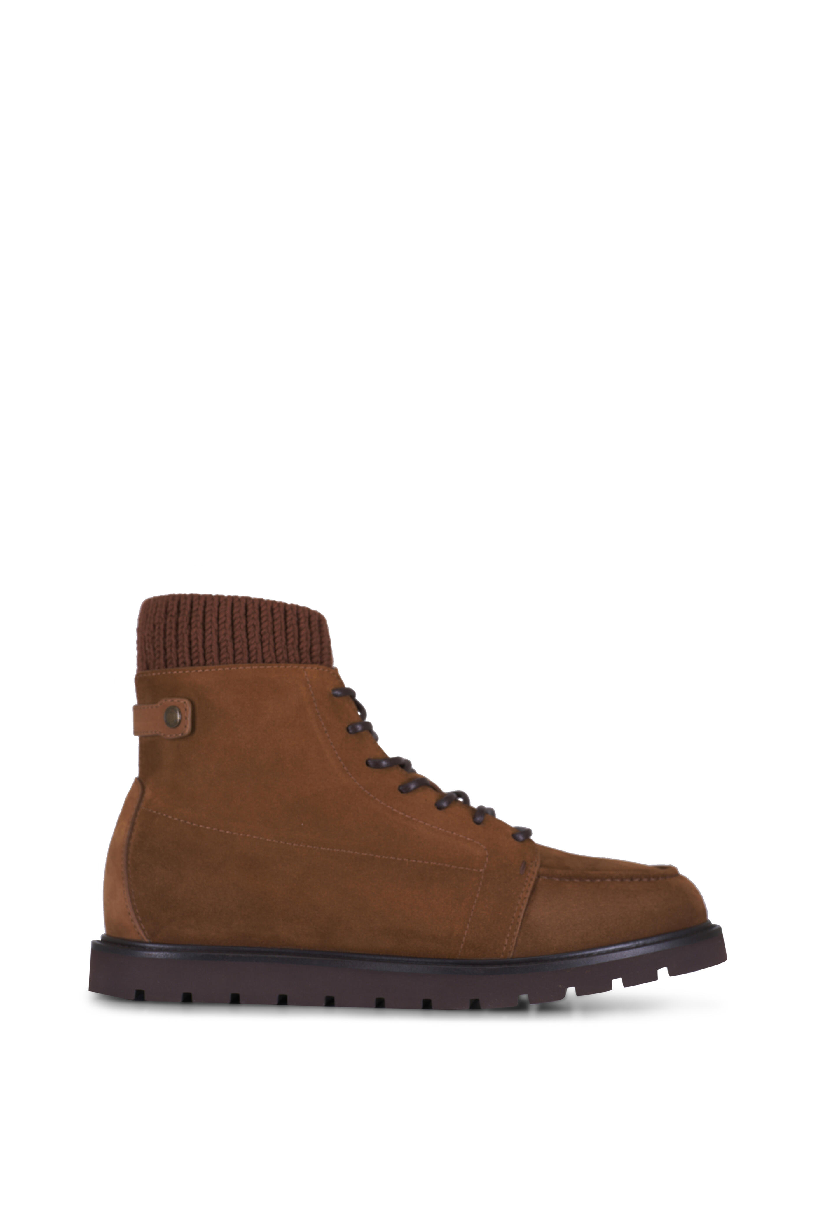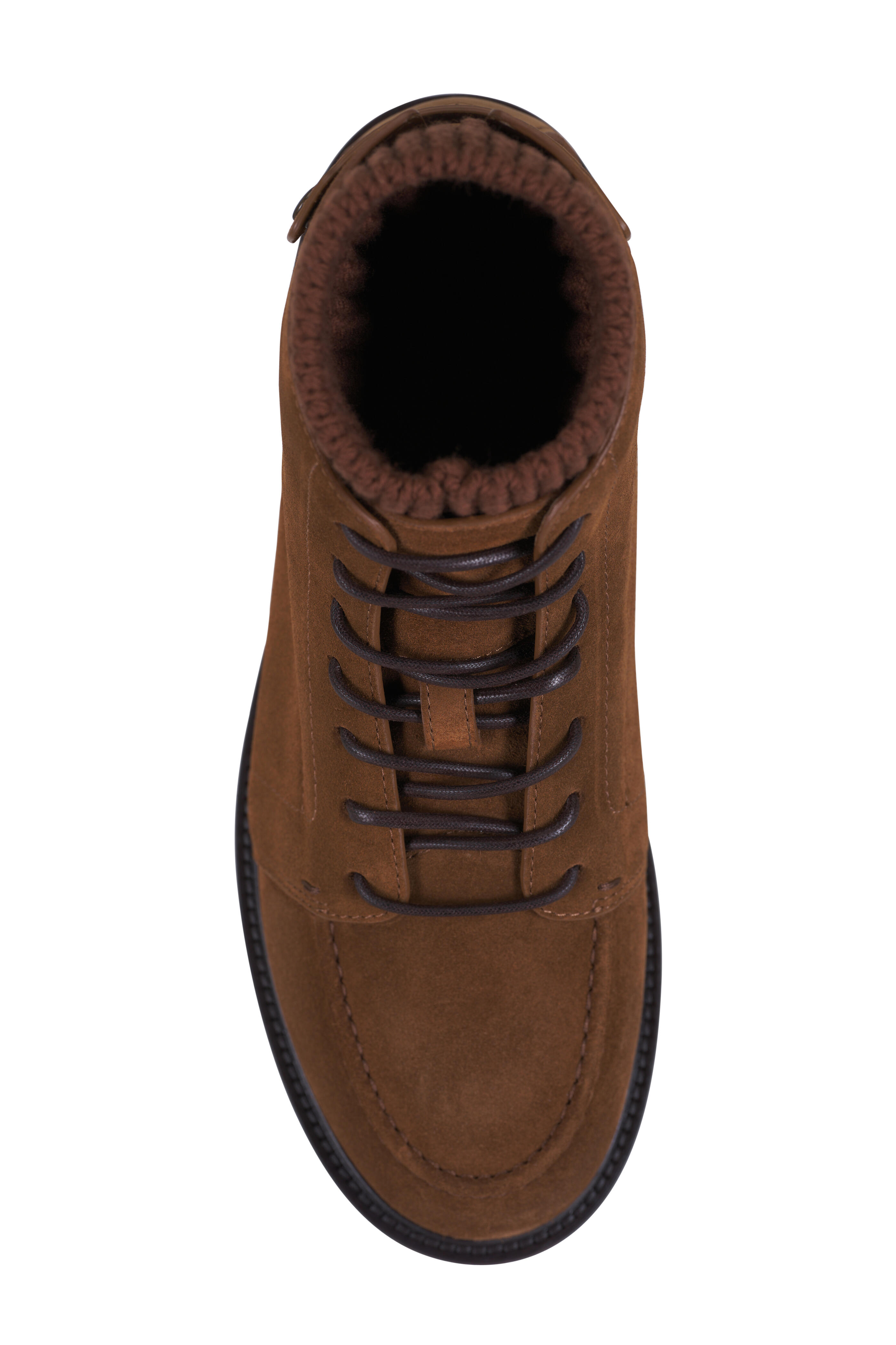 Suede upper. Round toe. Lace up closure; tonal waxed cotton laces. Nubuck heel and strap. Attached wool sock lining. Rubber sole. Made in Italy. Color : Light Cuir (H0N5).