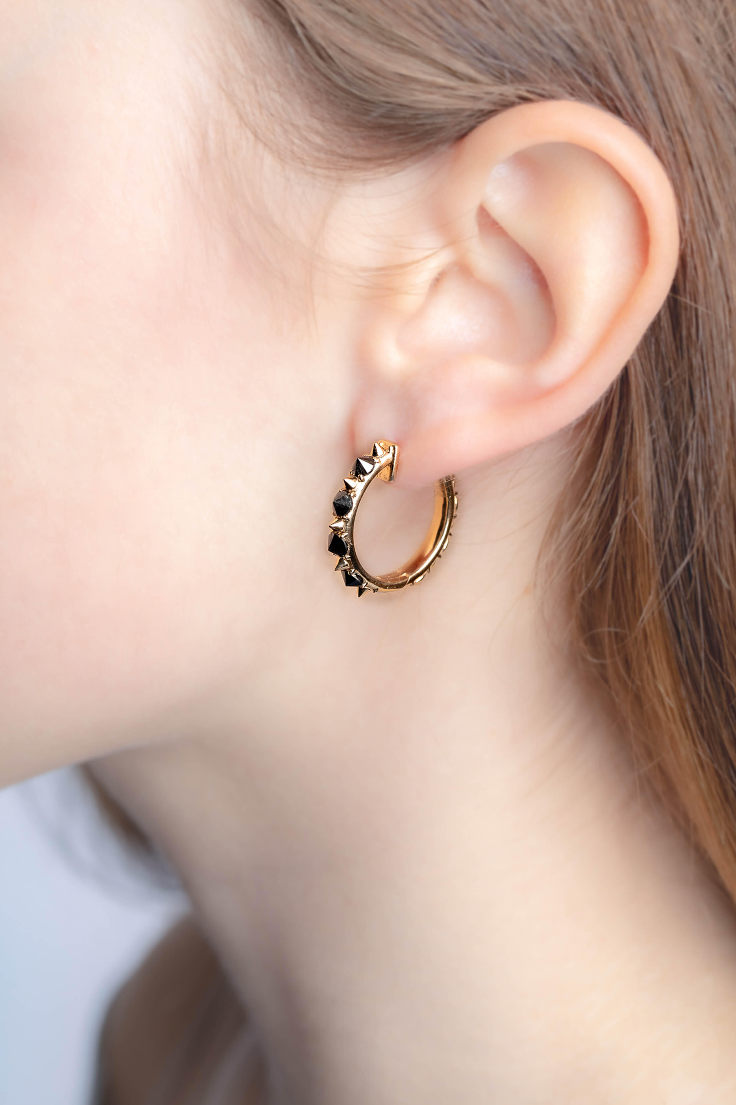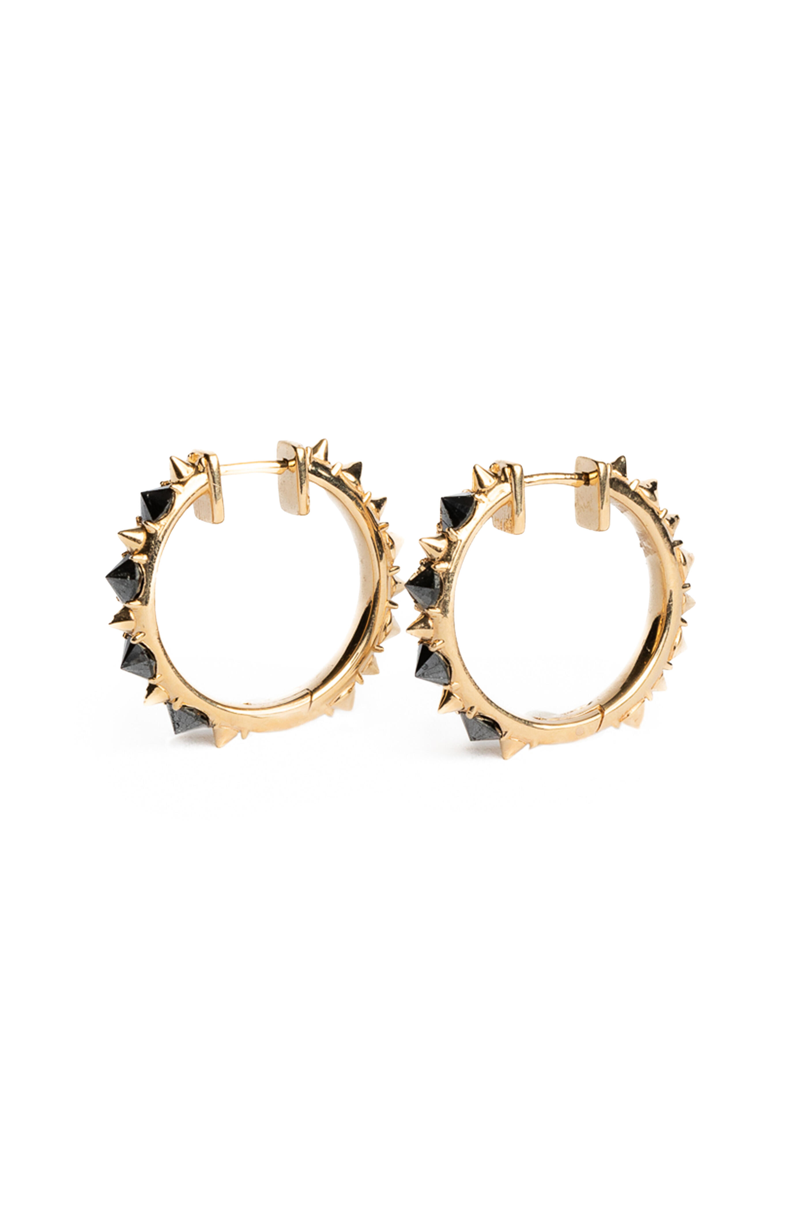 The Beverly Hills Earrings are so popular that we made them larger and edgier with the addition of black diamonds...these hoop earrings feature a spike detail that is always elevated, always statement-making.