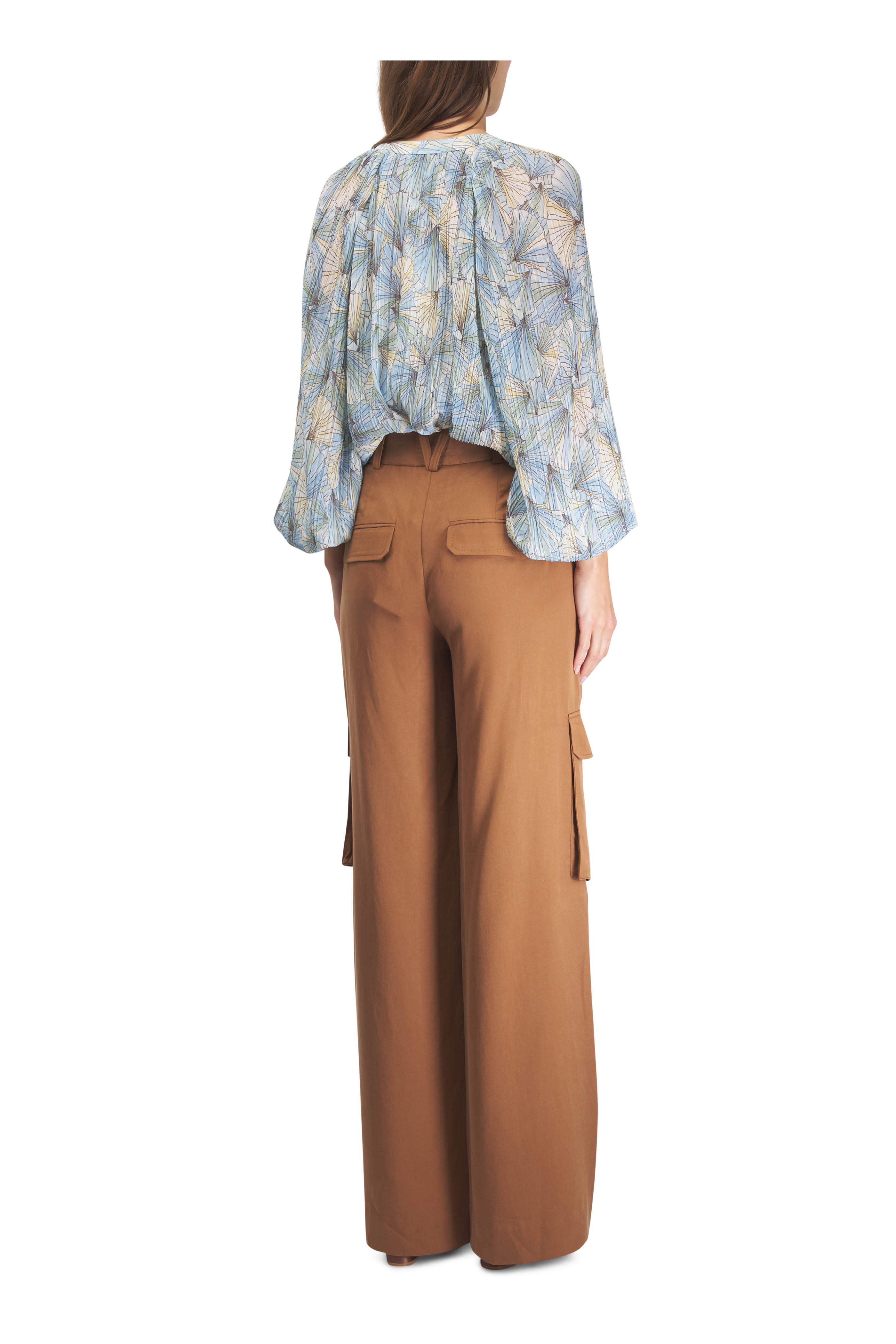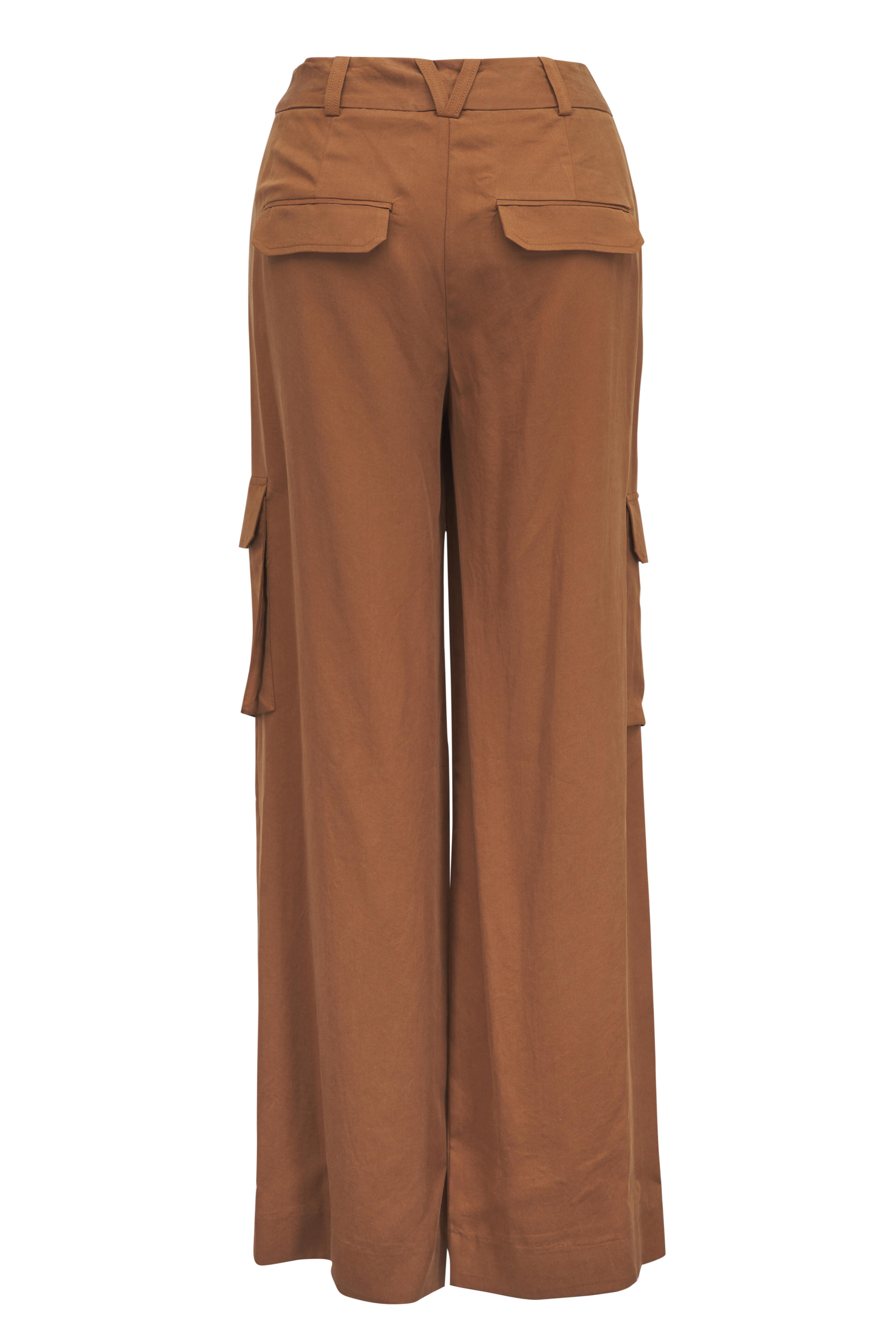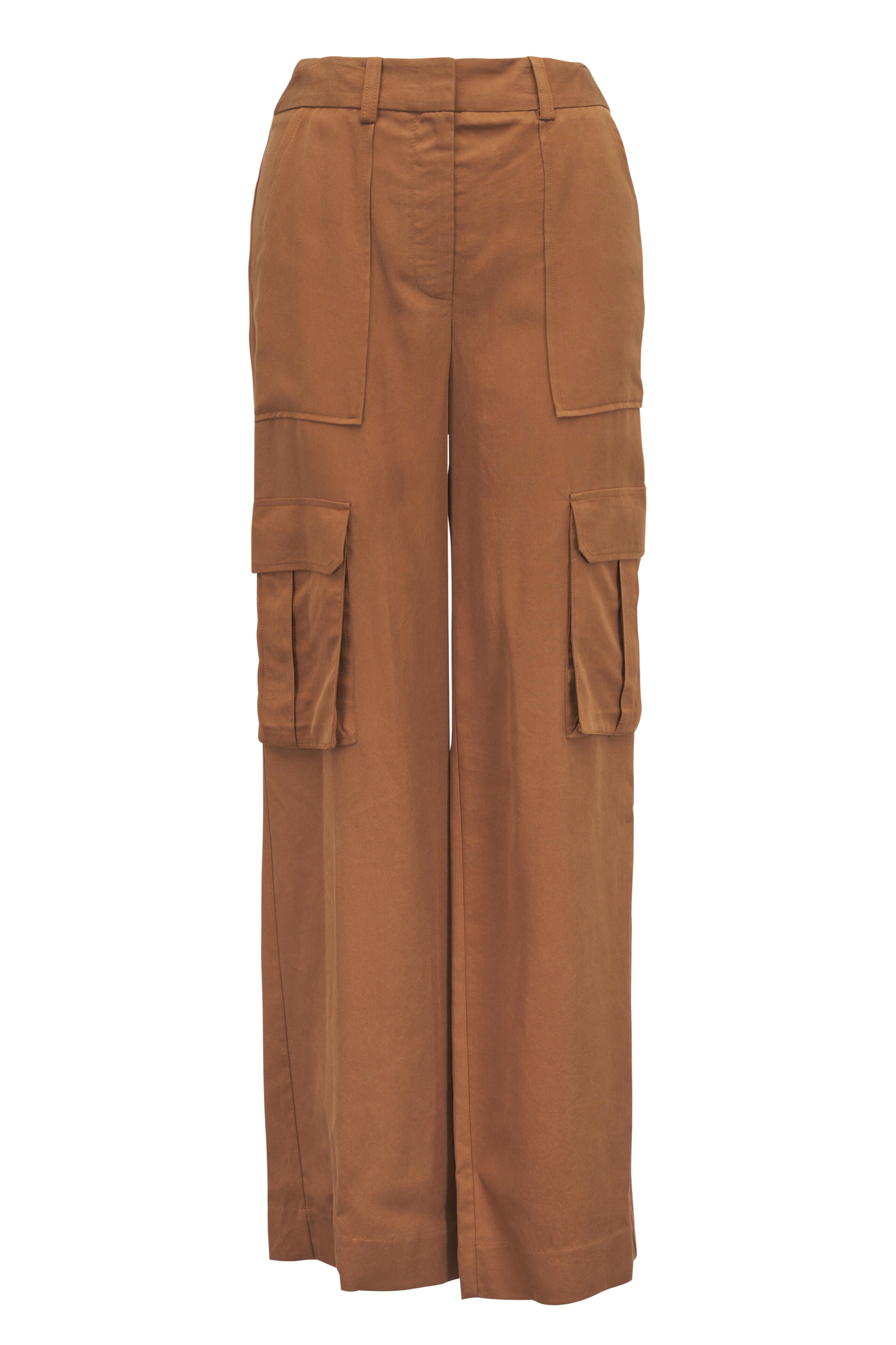 Zip fly; double hook closure. Front waist pockets; Lower cargo pockets; Back flap pockets. Straight hem. Made in USA. 35" Inseam (size 2). 100% Lyocell; lined. Dry clean.