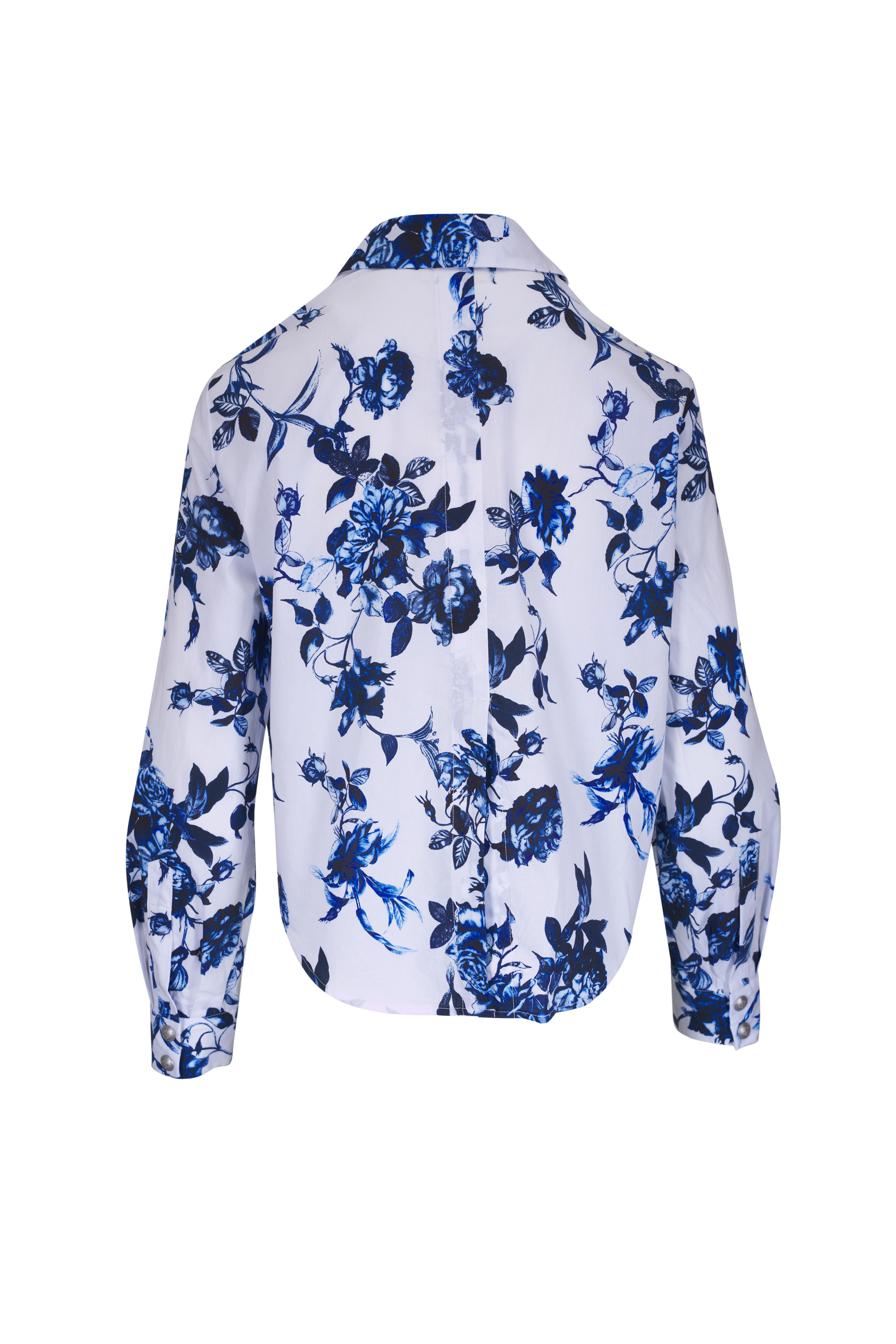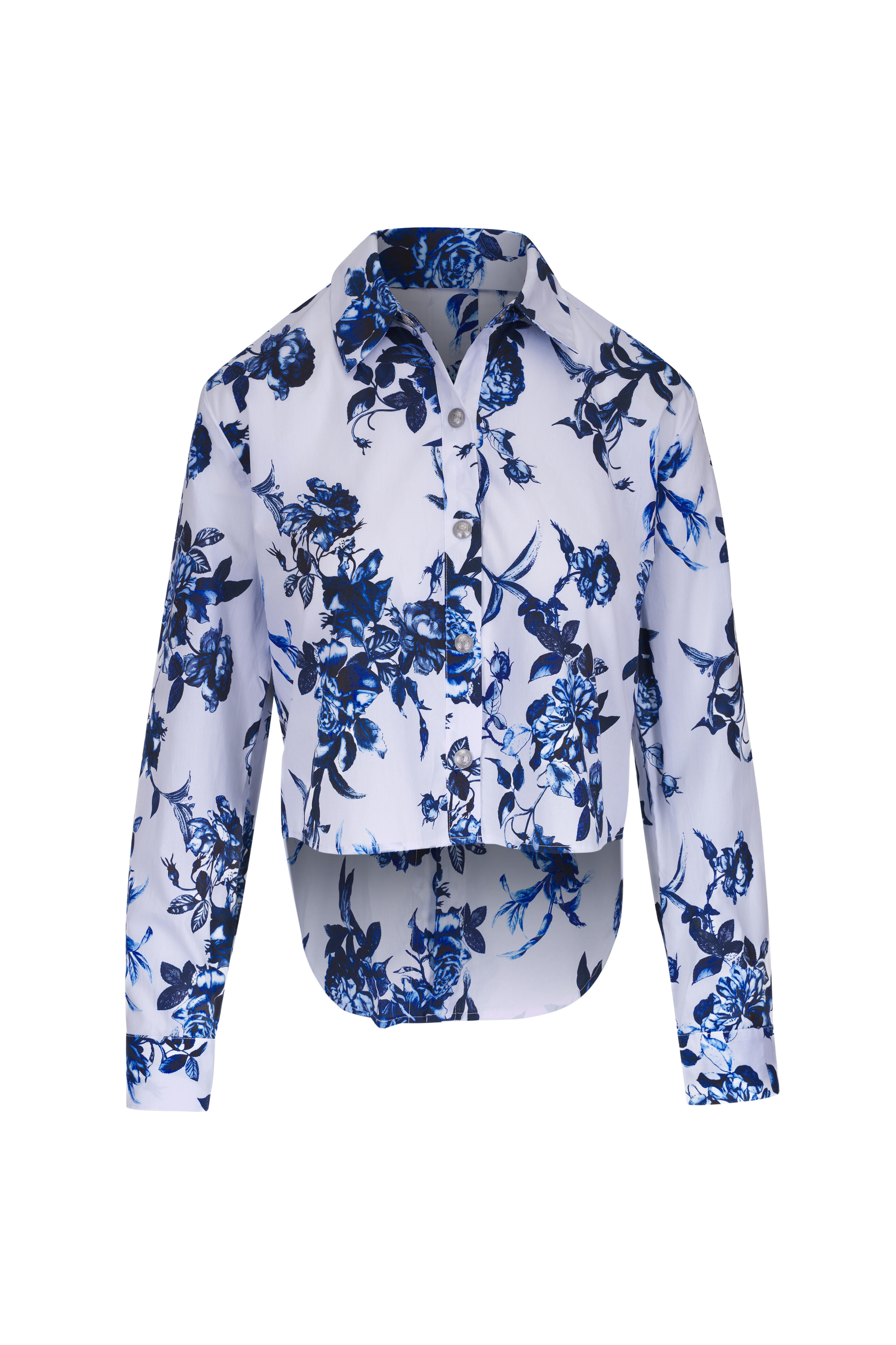 • L'Agence - Cosette Blue & White Print High Low Shirt
