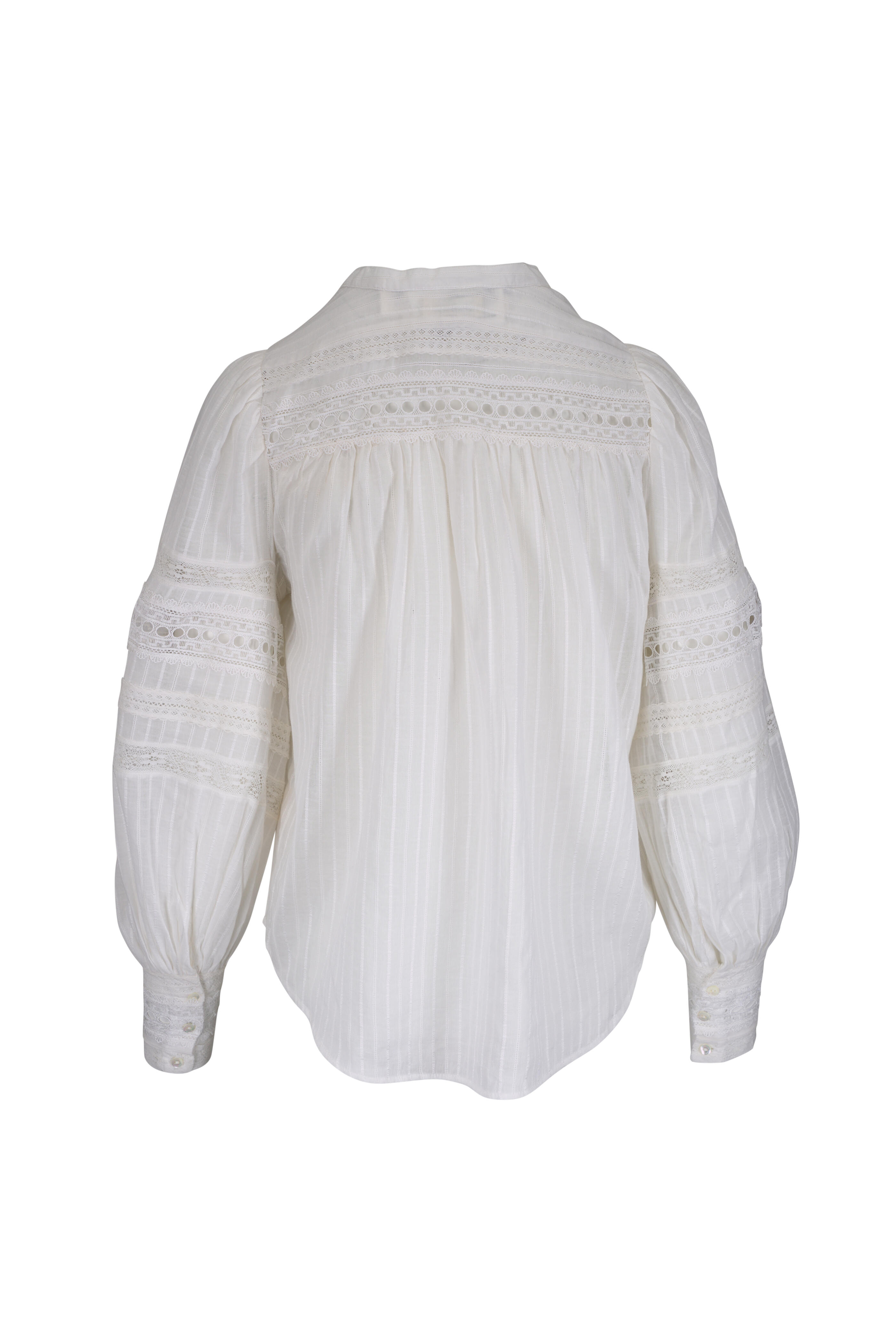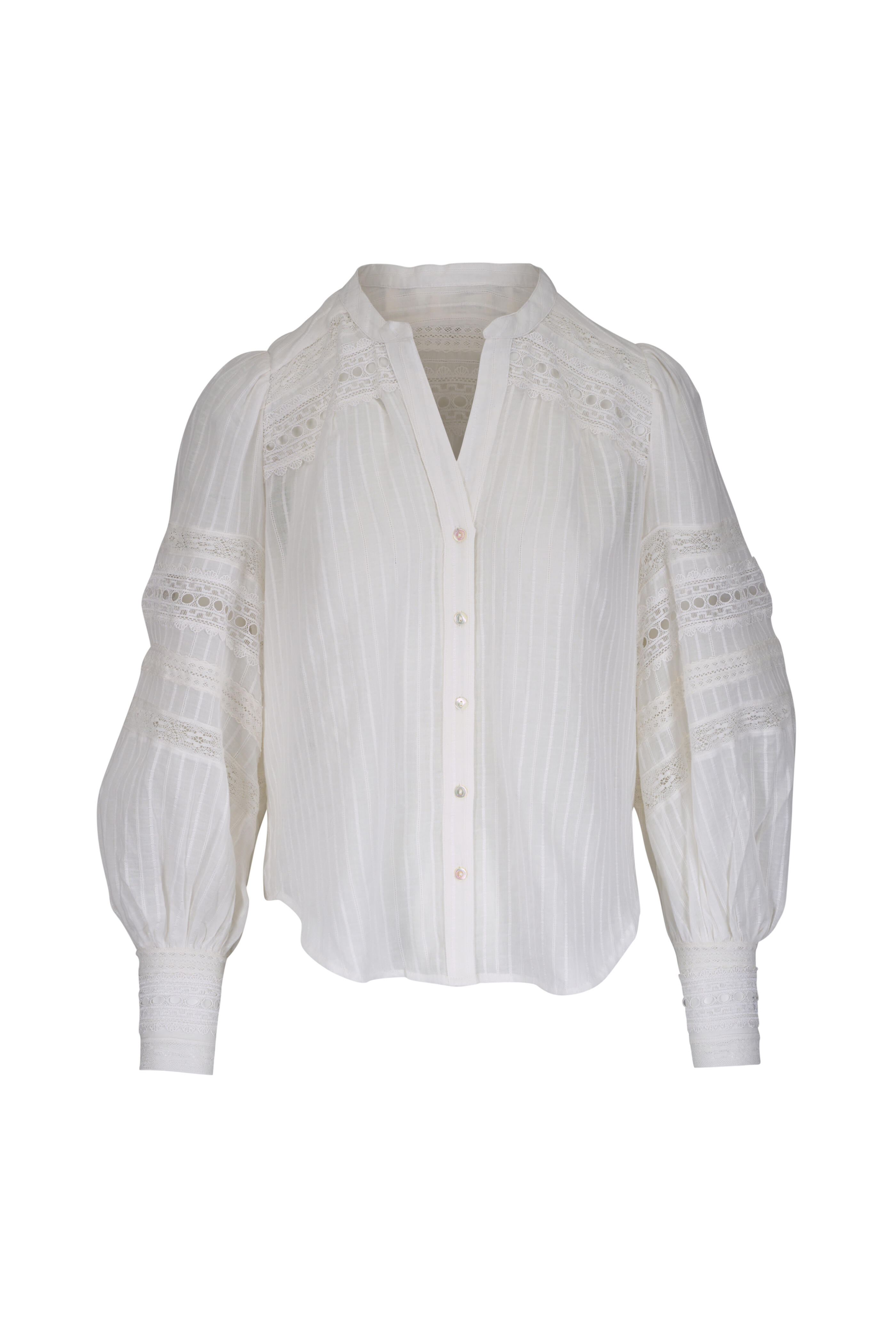 • L'Agence - Kiera Ivory Embroidered Trim Blouse
