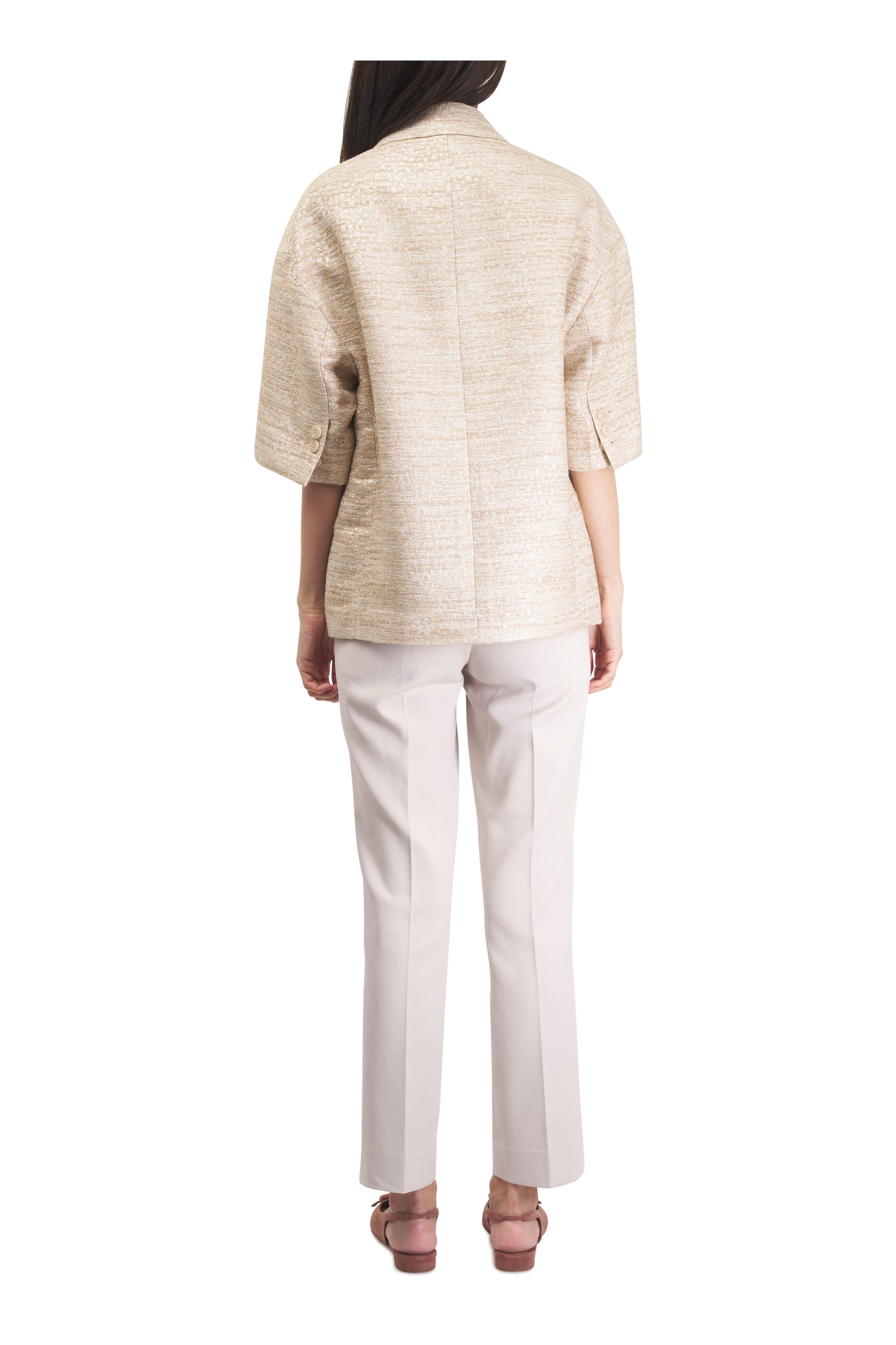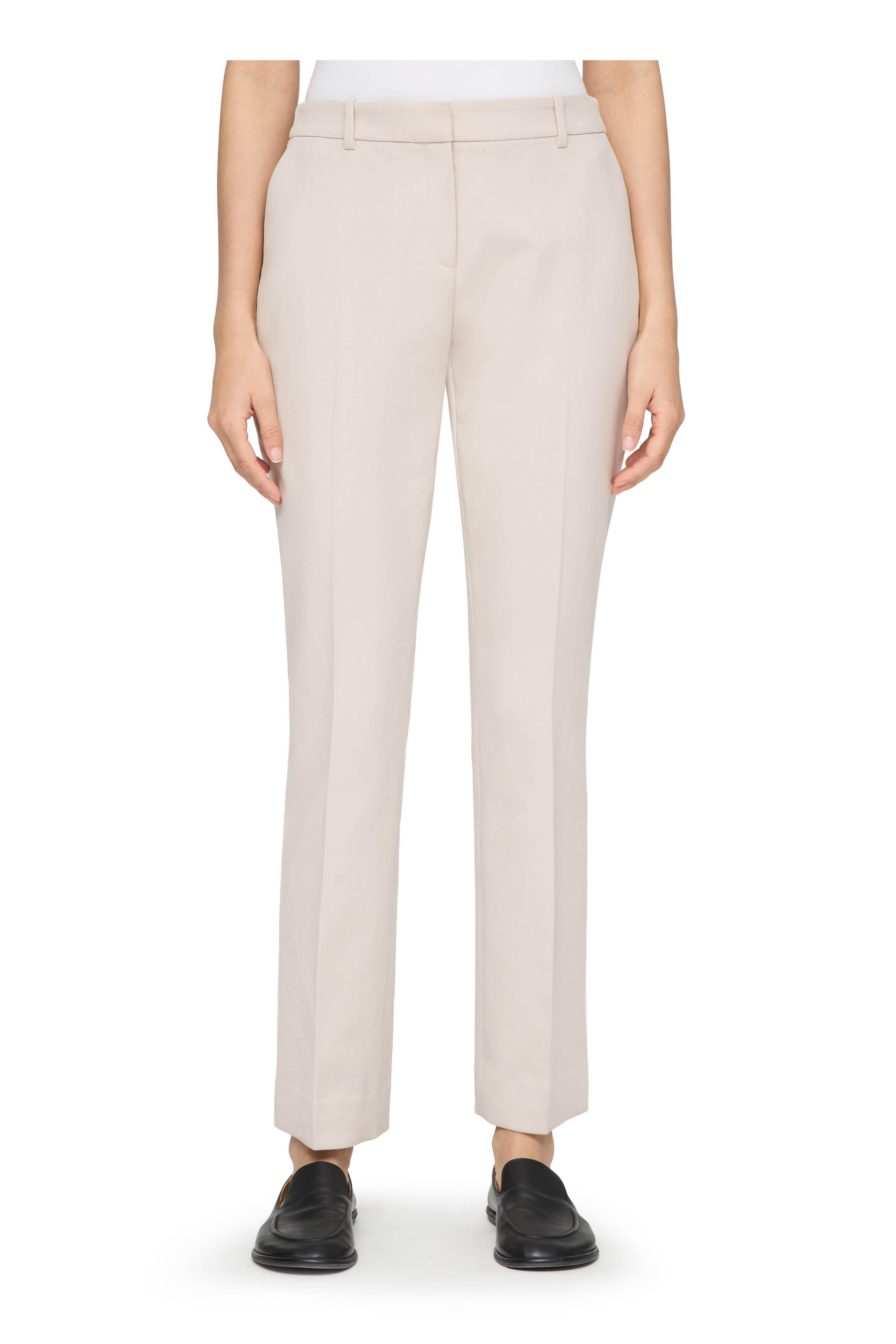 Zip fly; hook-and-bar closure. Banded waist; belt loops. Side slip pockets; back welt pocket. Vented hem. Imported. 29" Inseam (size 4). 100% cotton; unlined. Machine wash.