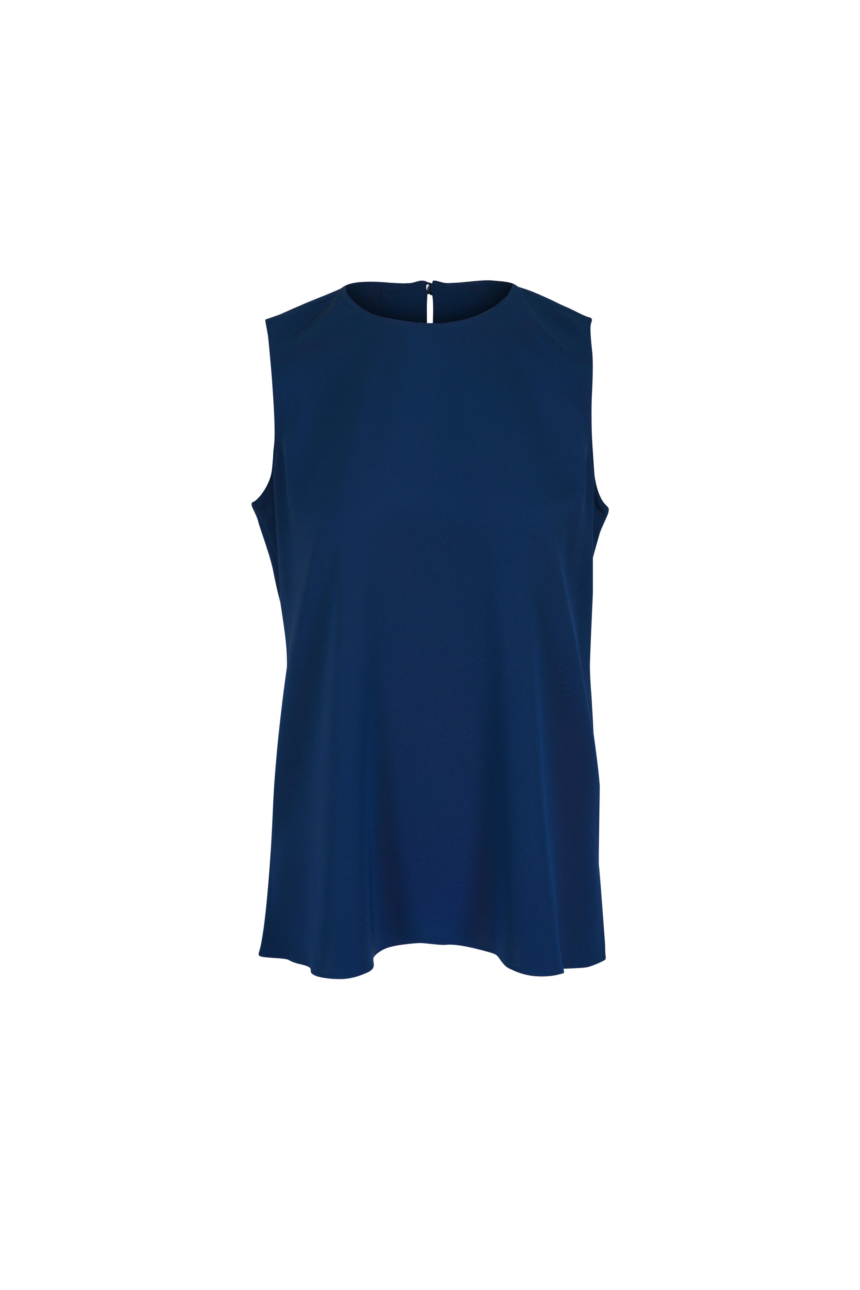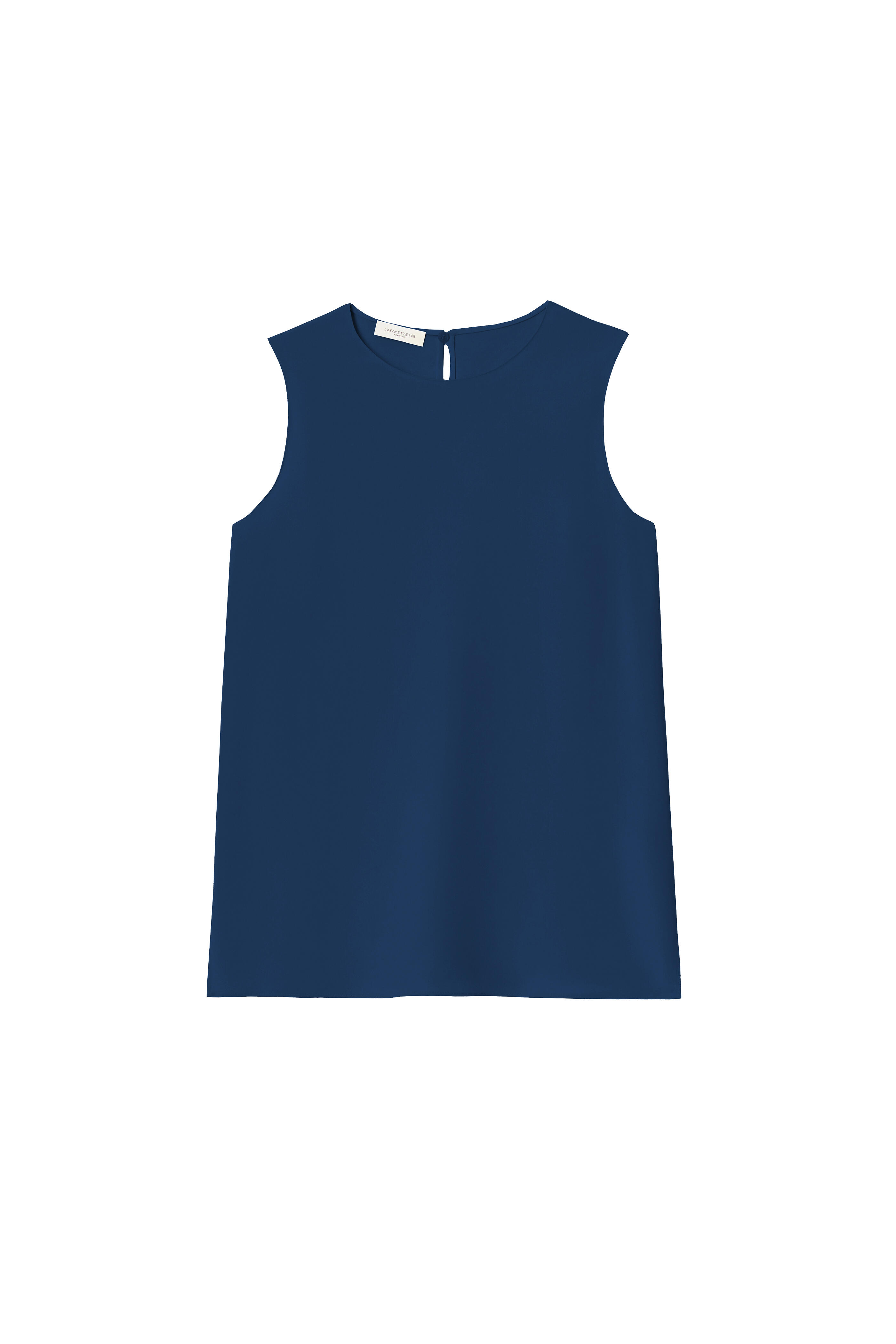 Round neckline. Keyhole back. Vented hem. Imported. 94% silk, 6% elastane. Dry clean.