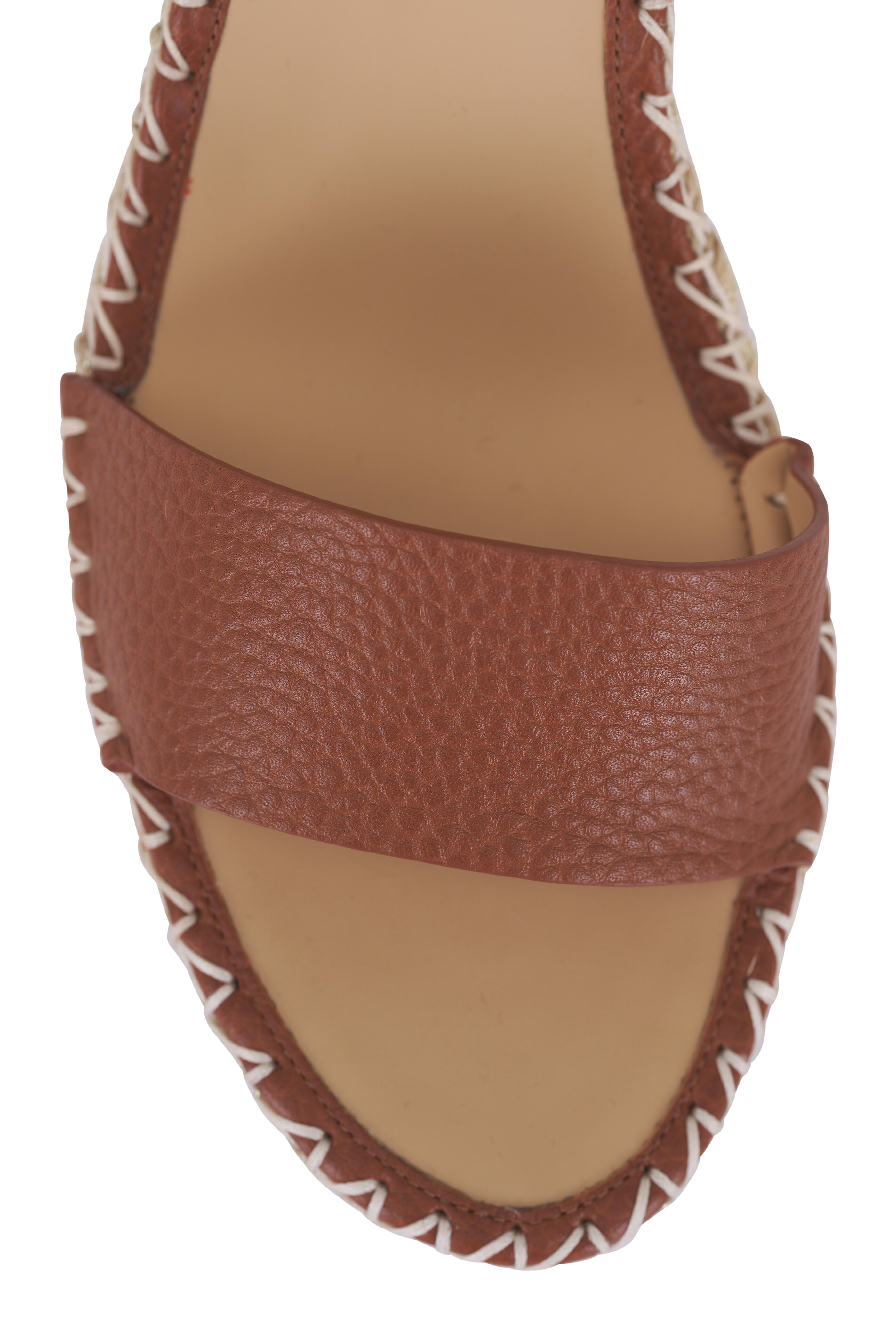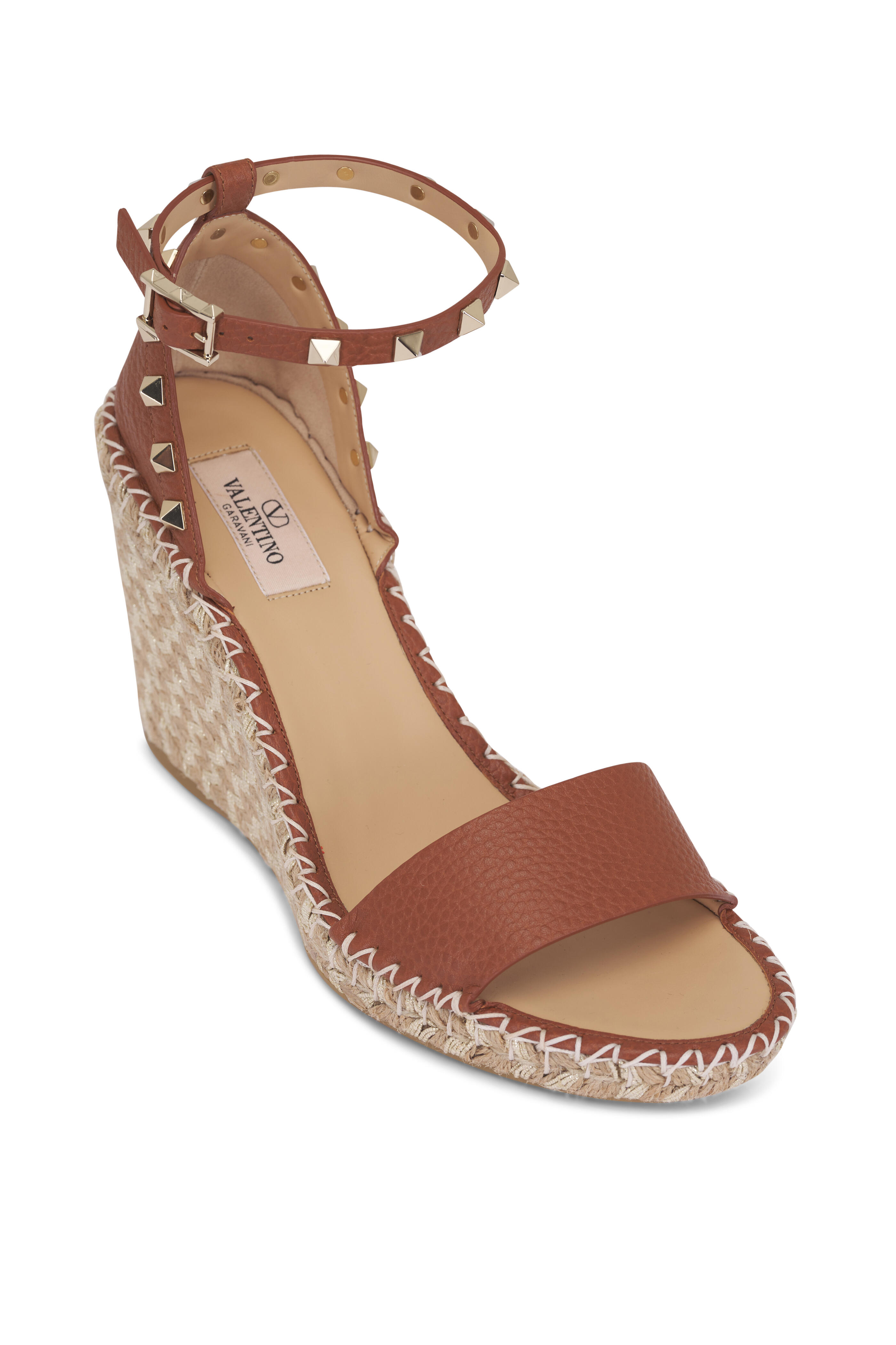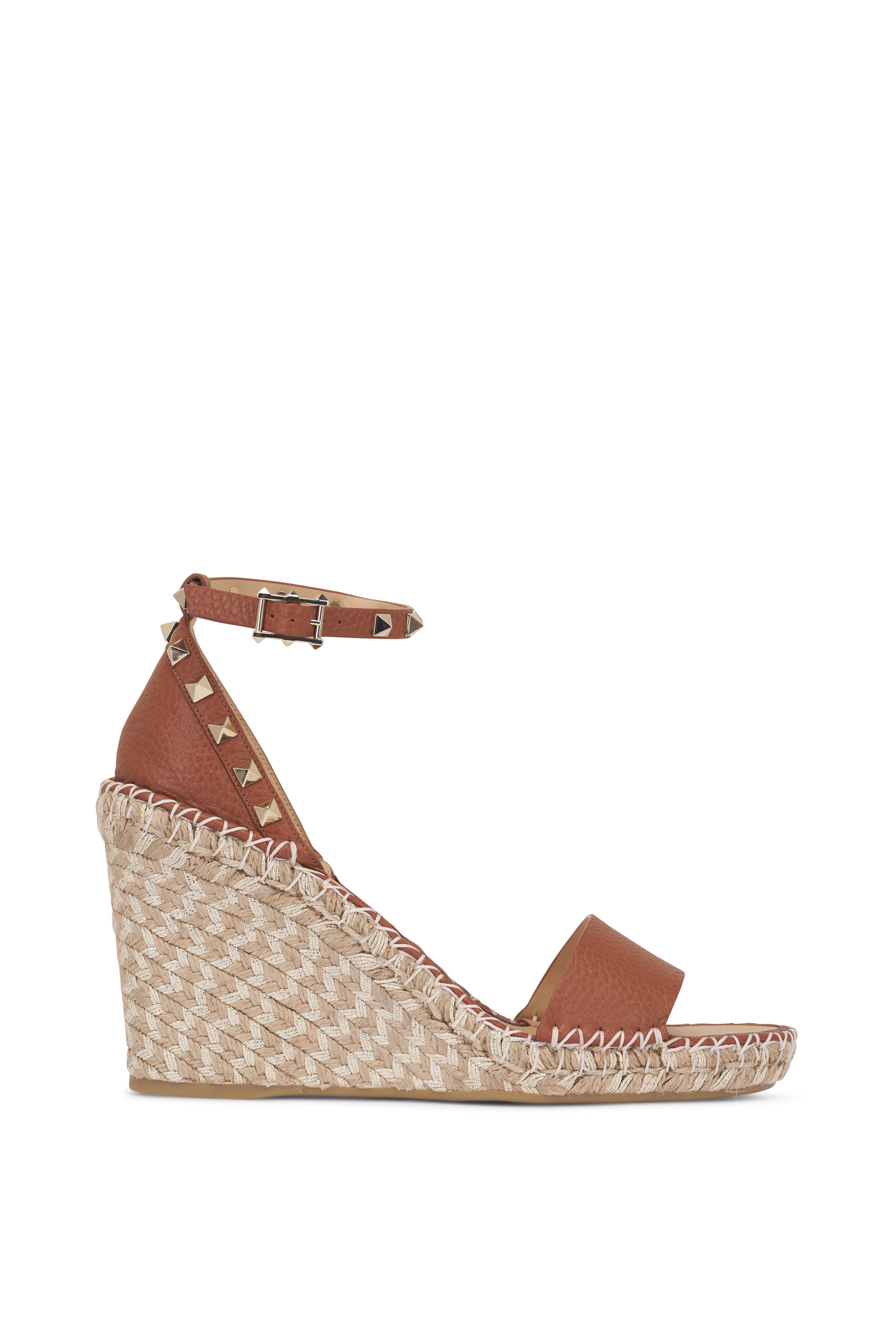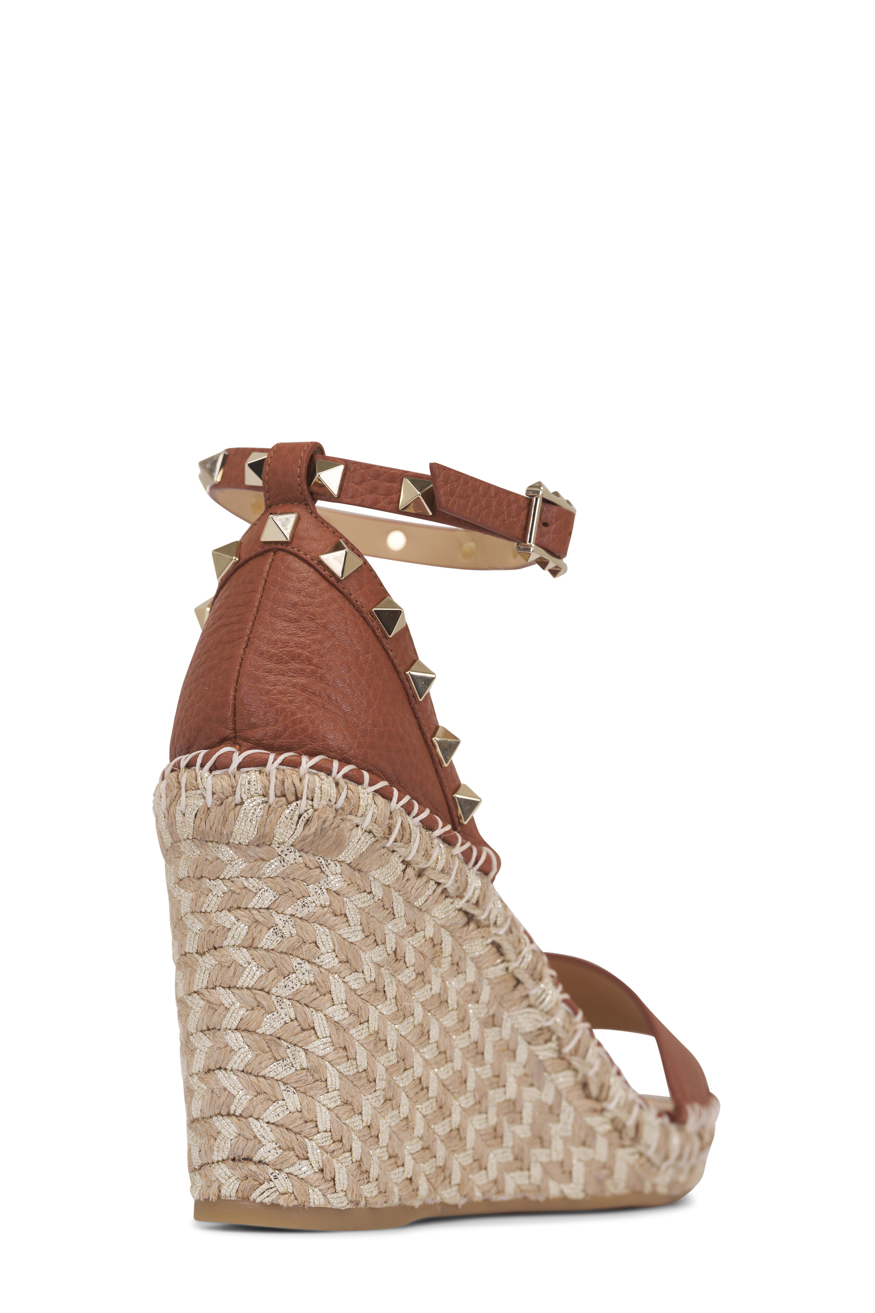 Tan Leather Rockstud Espadrille Wedge, 100mm