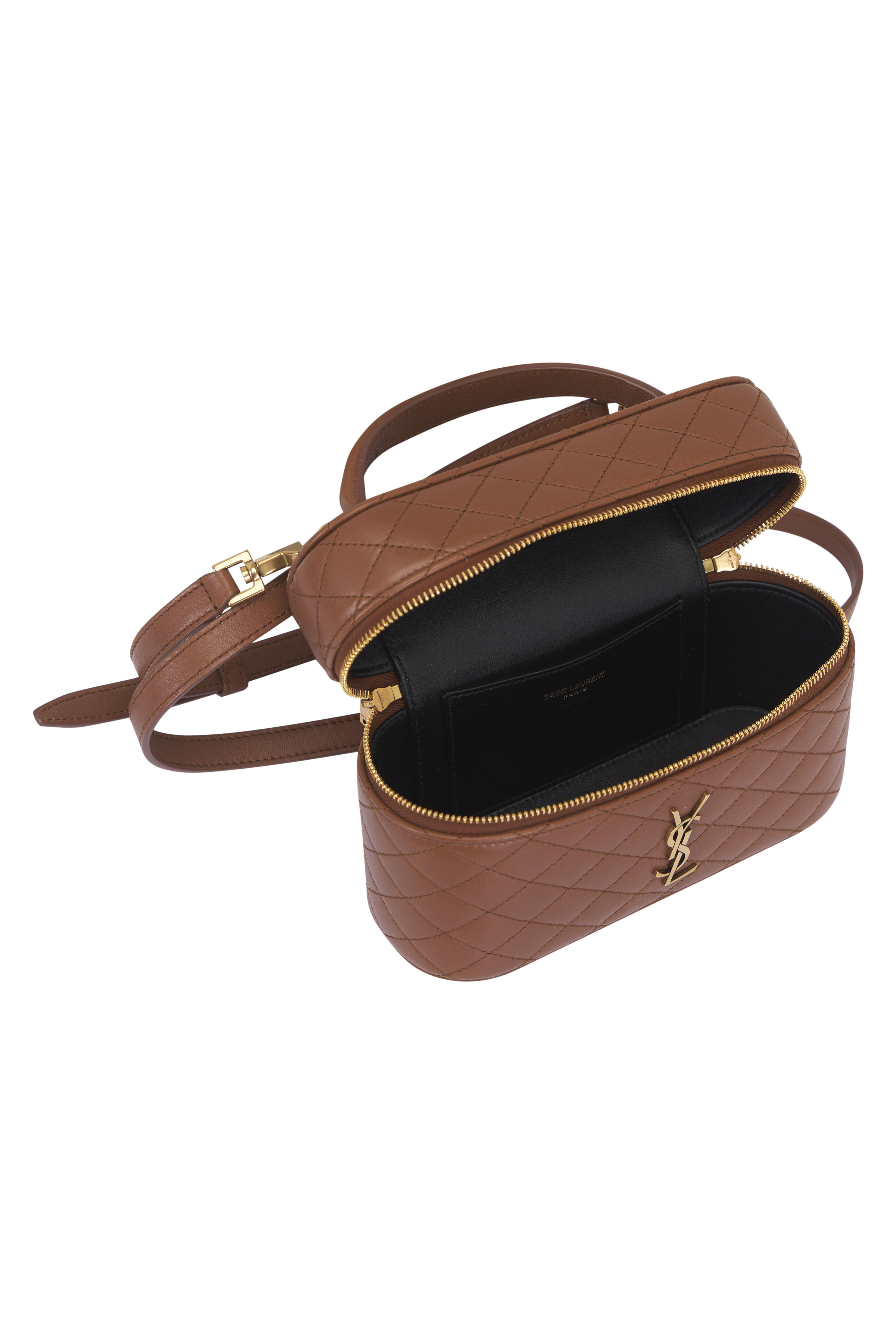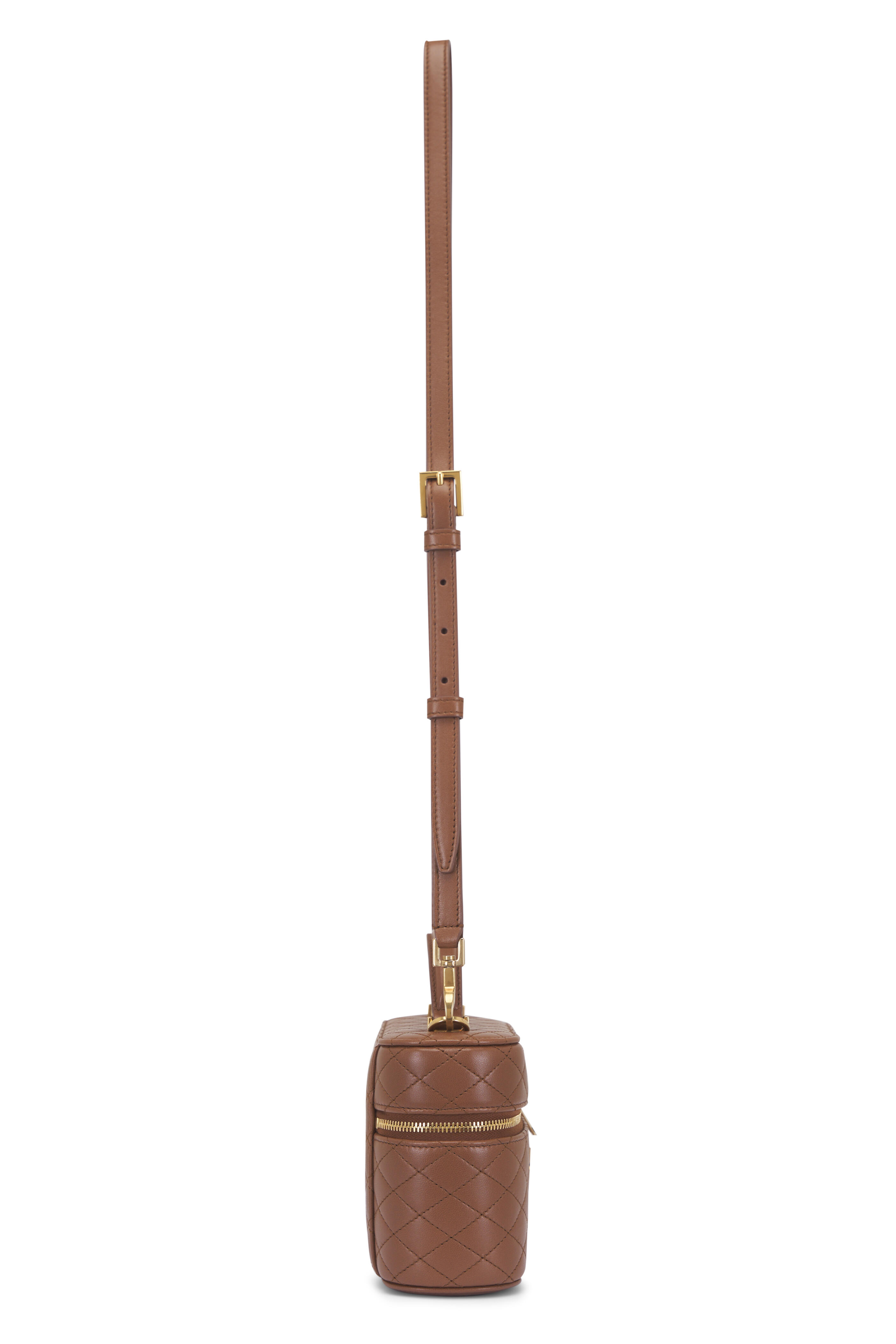 Lambskin. Top handle. Adjustable and detachable chain strap. Zip closure. One card slot. Bronze-toned hardware. Leather lining. Made in Italy. Color: Fox. Length: 7.1". Height: 4.3". Depth: 2.6". Handle drop: 1.8". Strap drop: 20.5".