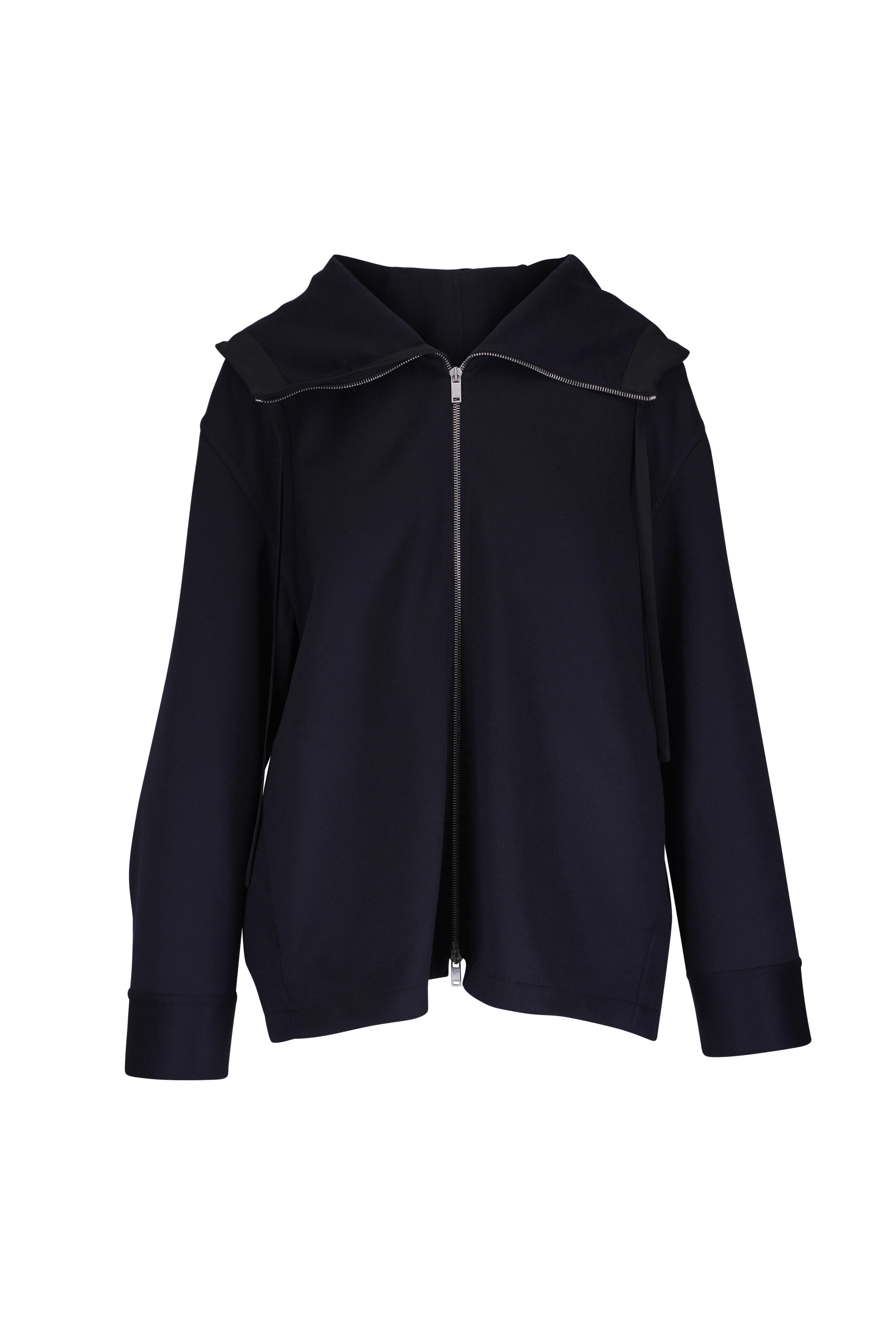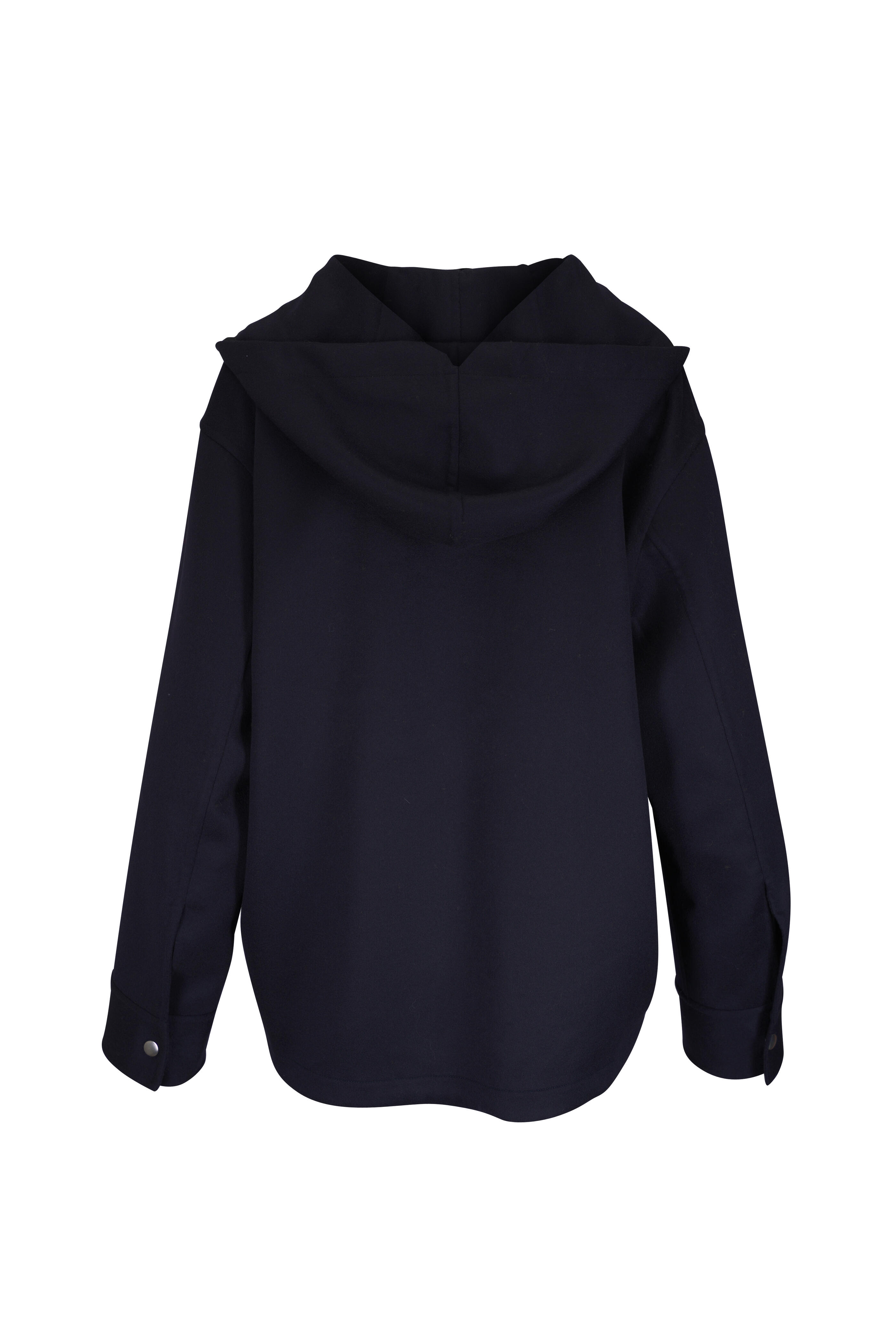 Attached hood with drawstring. Front two-way zip placket. Side slip pockets. Single snap button cuffs. Made in Italy. Approximately 28" shoulder to hem (measurements taken from size 4). 100% cashmere. Dry clean.
