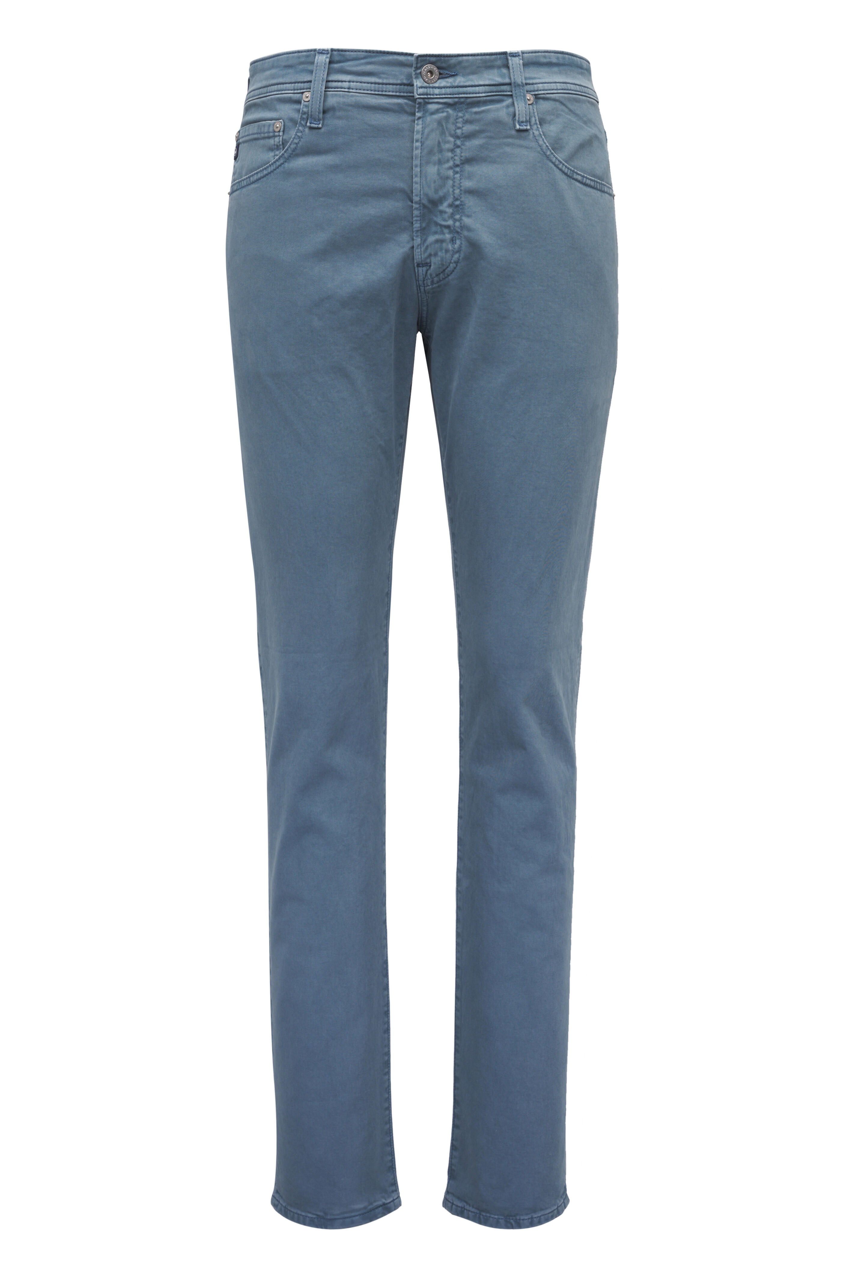 Zip fly; button closure. Banded waist; belt loops. Five pocket styling. Imported. 34" inseam. 97% cotton, 3% elastane. Machine wash.
