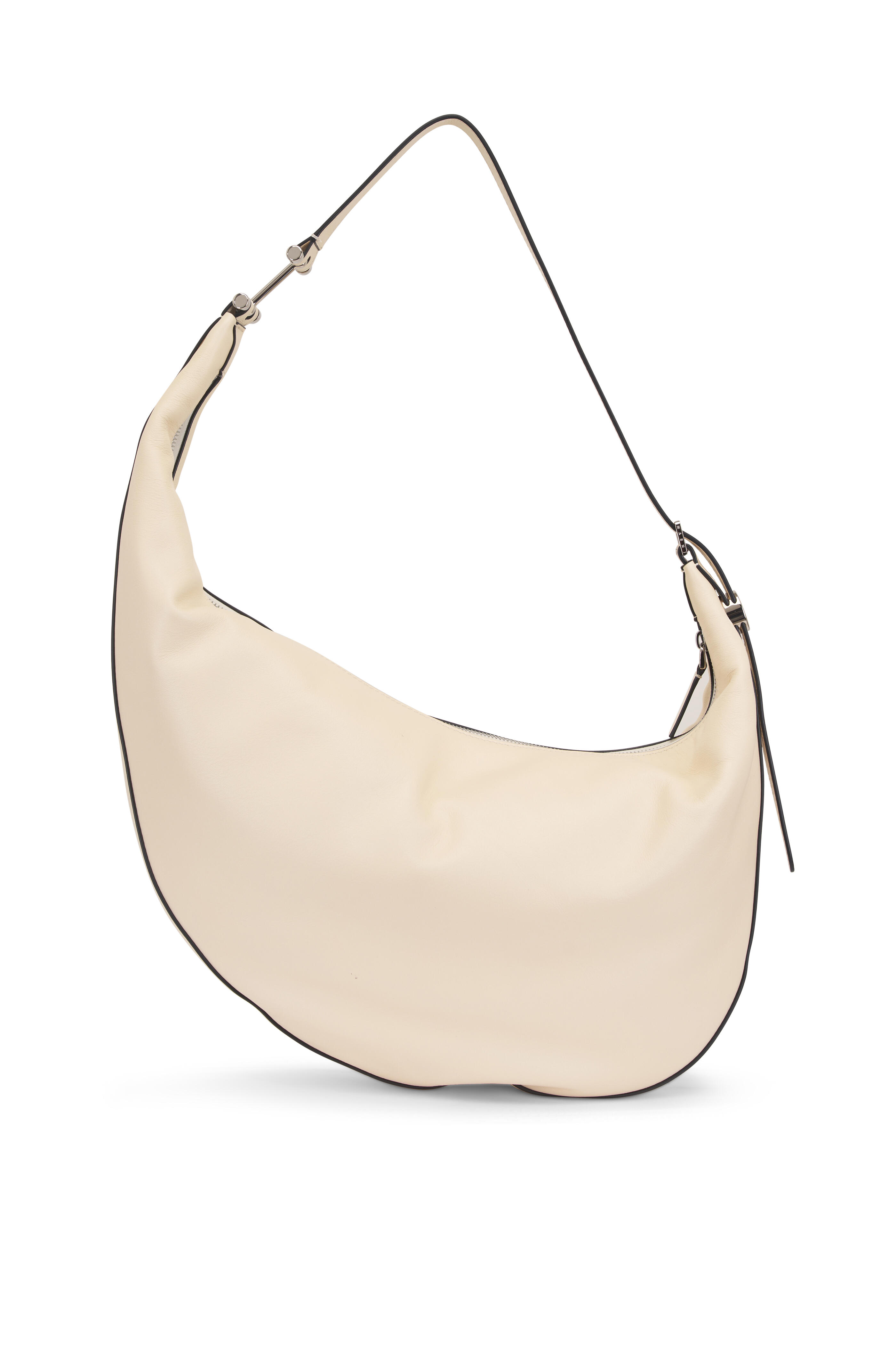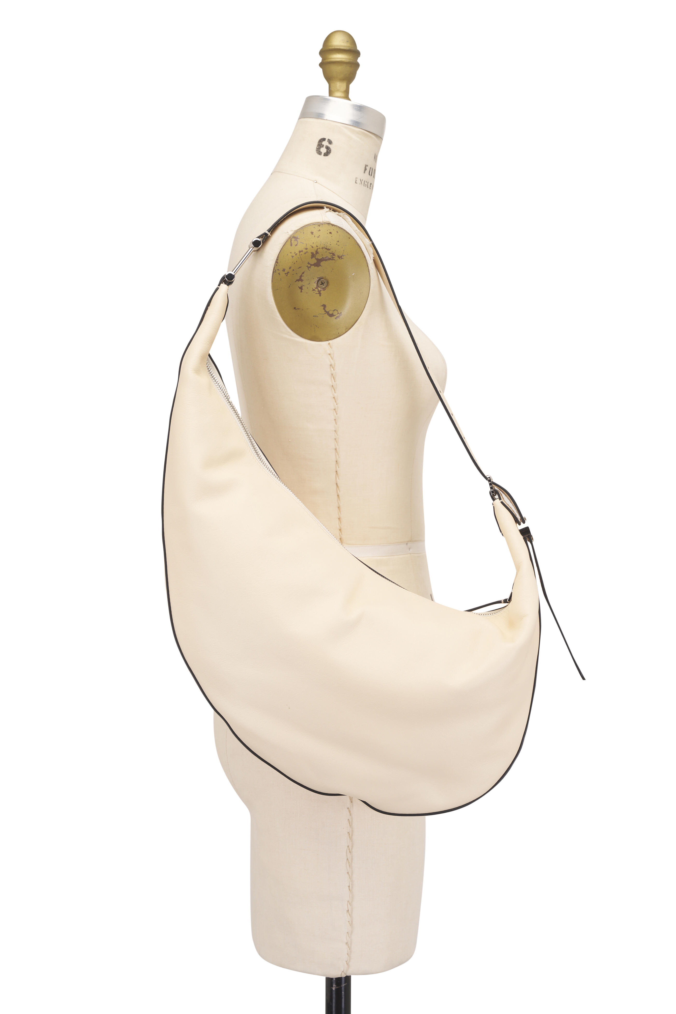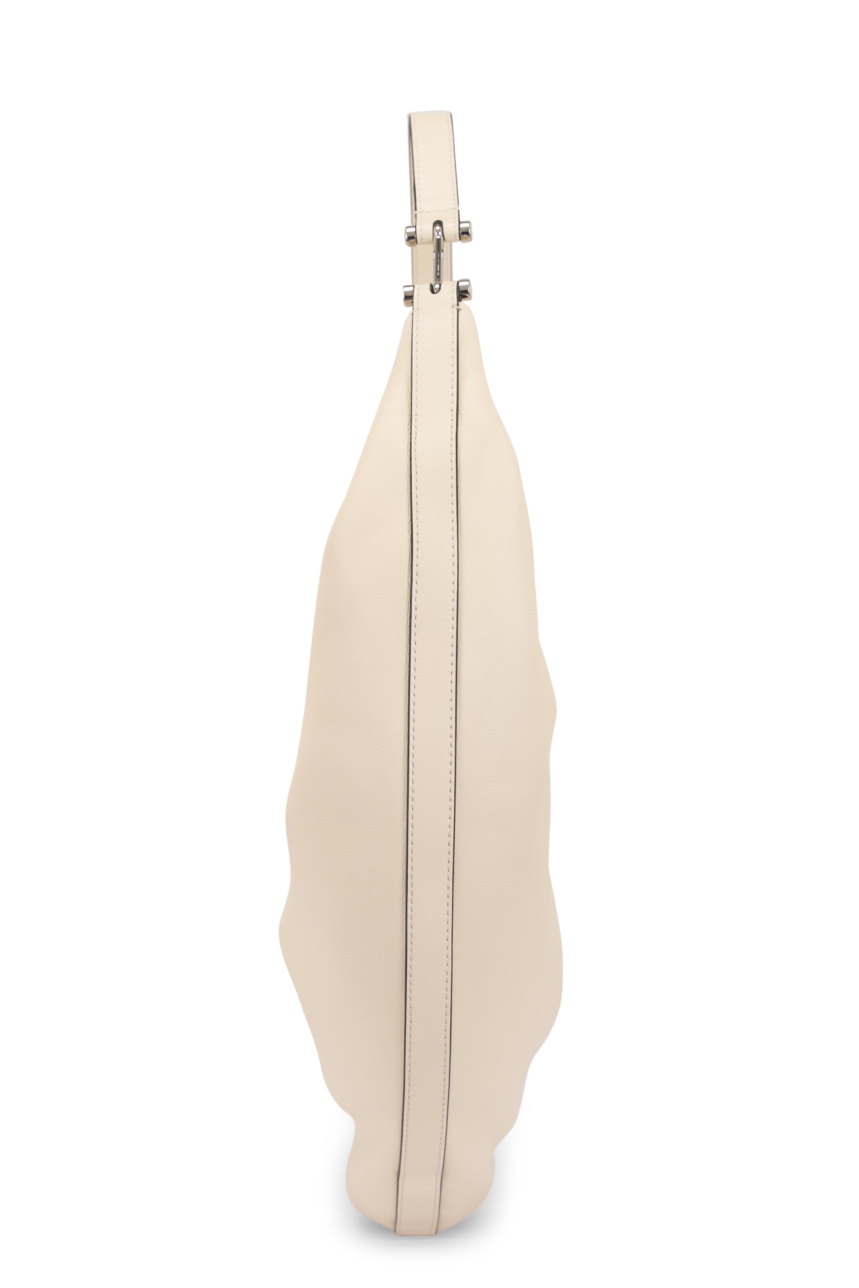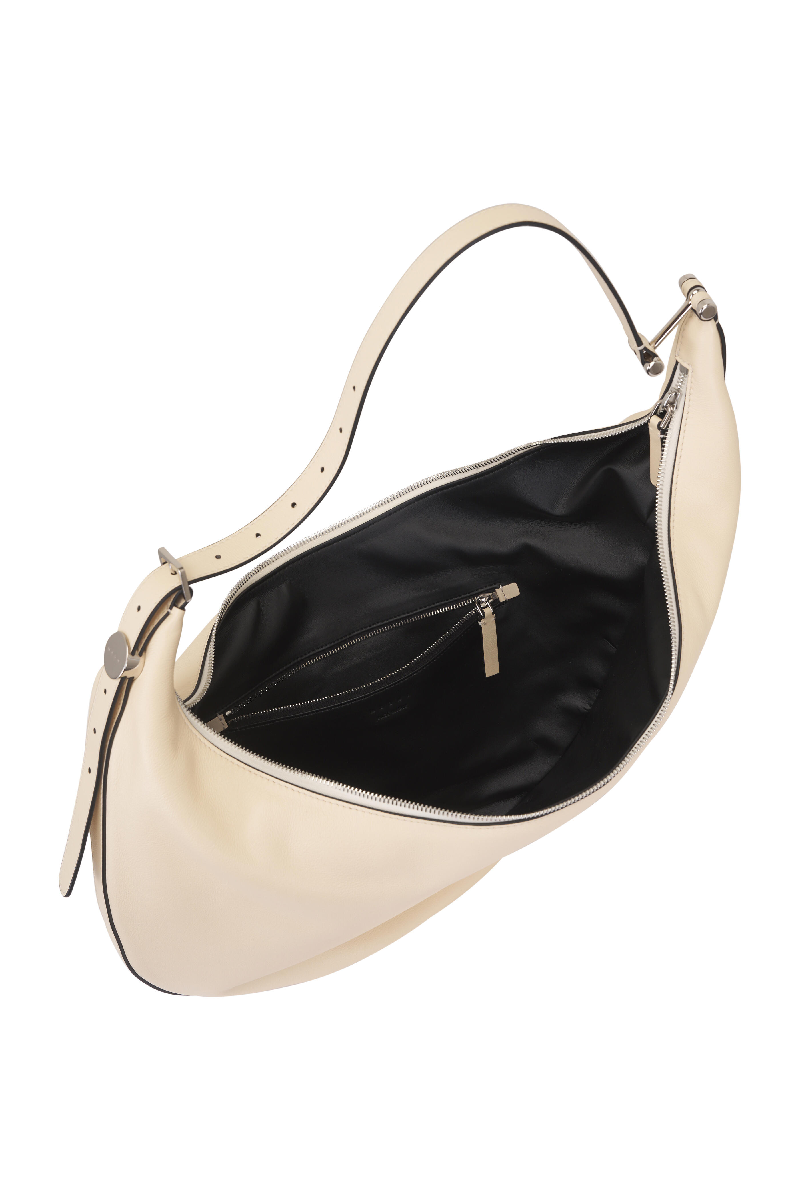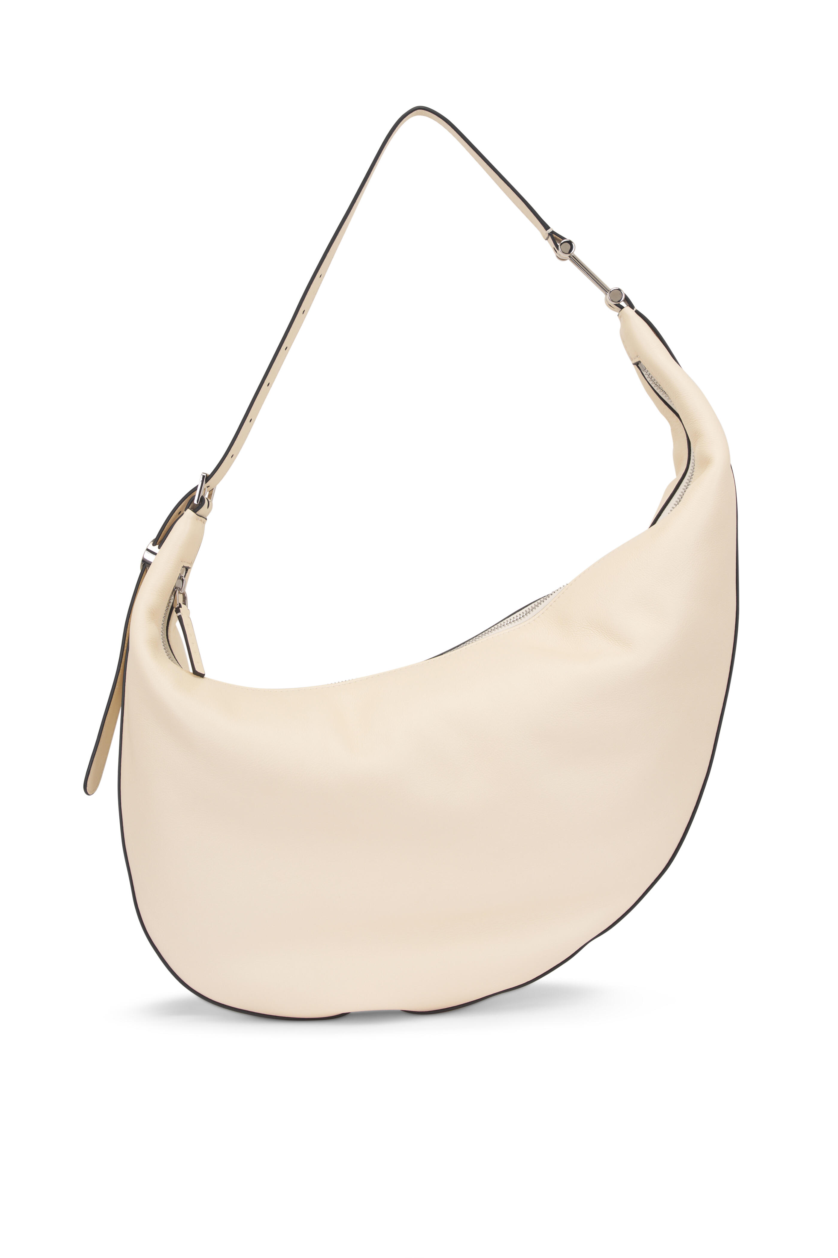 Calf leather. Adjustable shoulder strap. Zip closure. Single compartment. Interior wall pocket. Leather lining. Silver-tone hardware. Made in Italy. Height: 25 cm. Width: 2 cm. Length: 42 cm. Max strap drop: 40 cm.