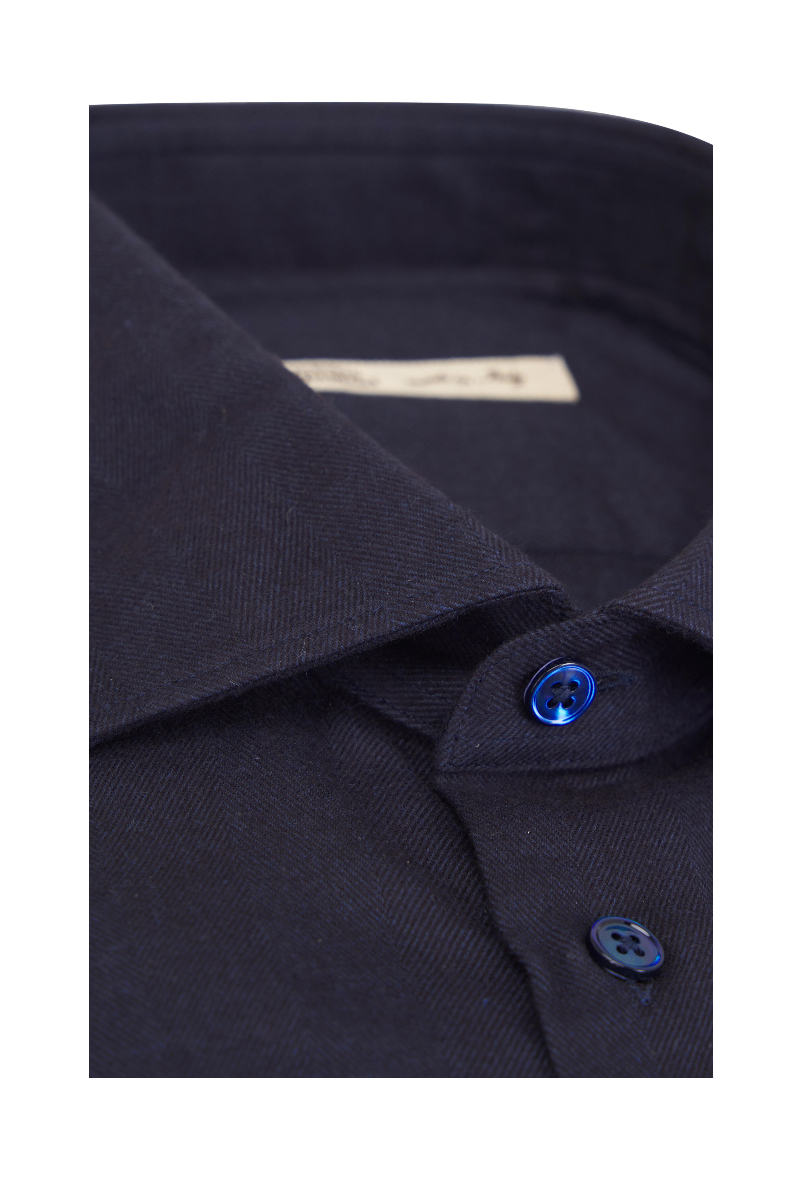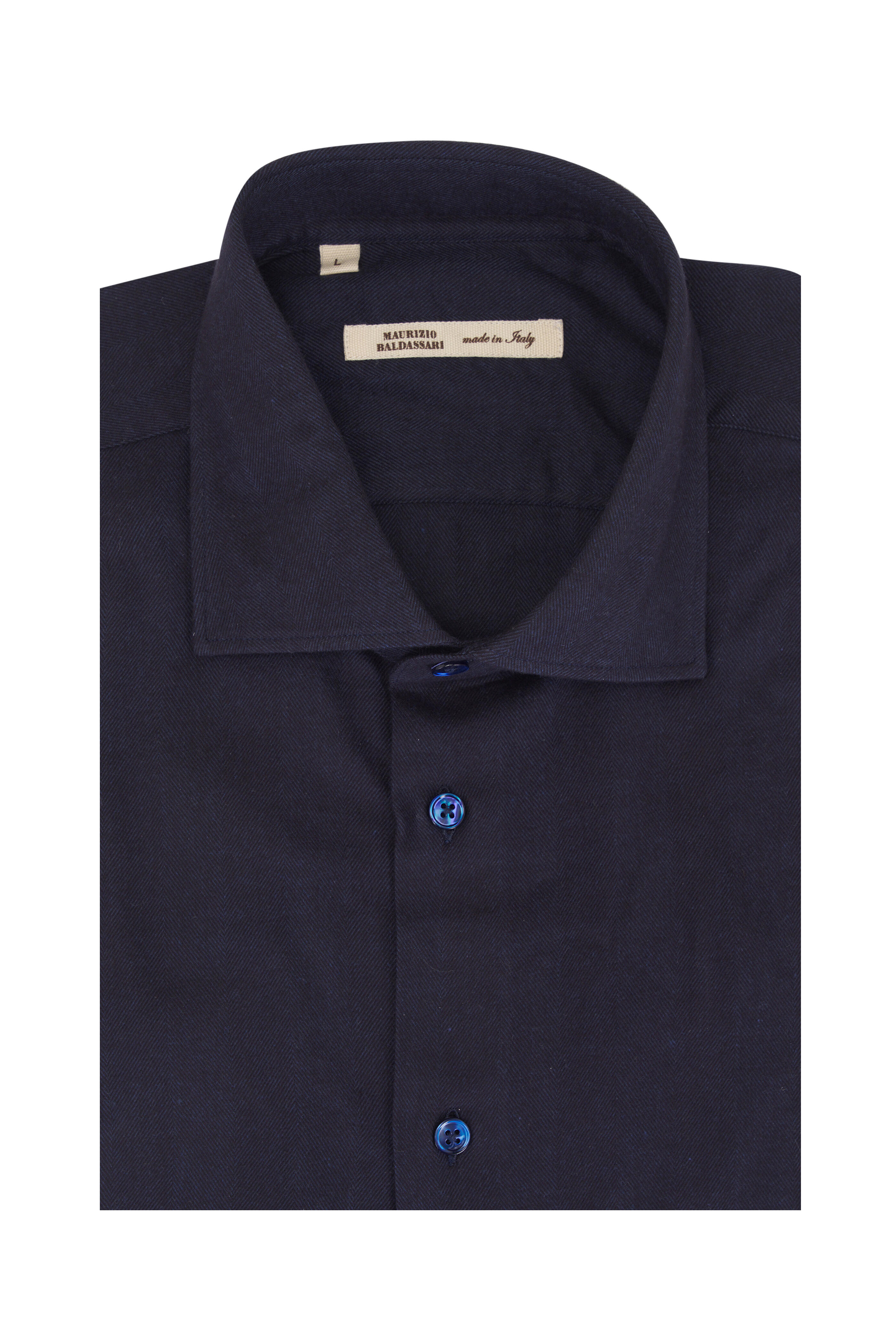 Spread collar. Front button placket. Single button mitered cuffs. Made in Italy. 59% cotton, 41% lyocell. Machine wash.