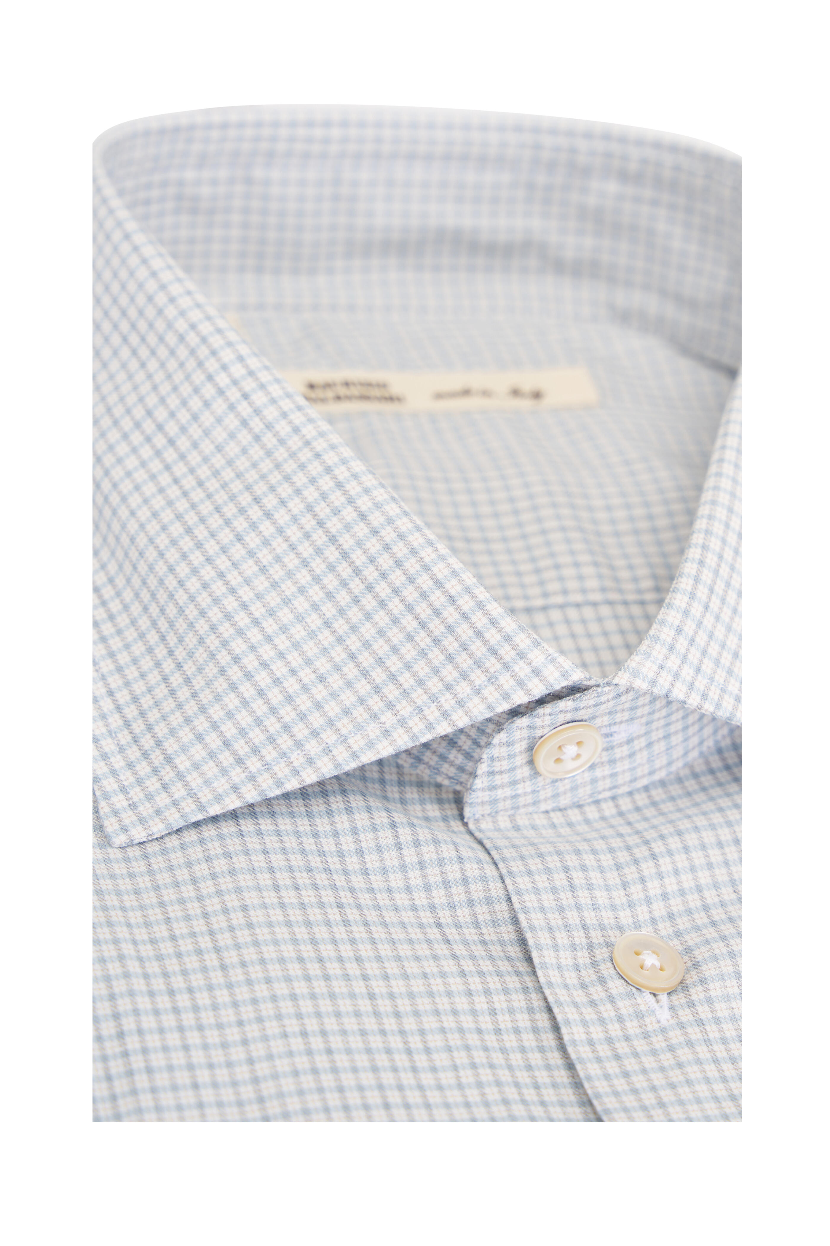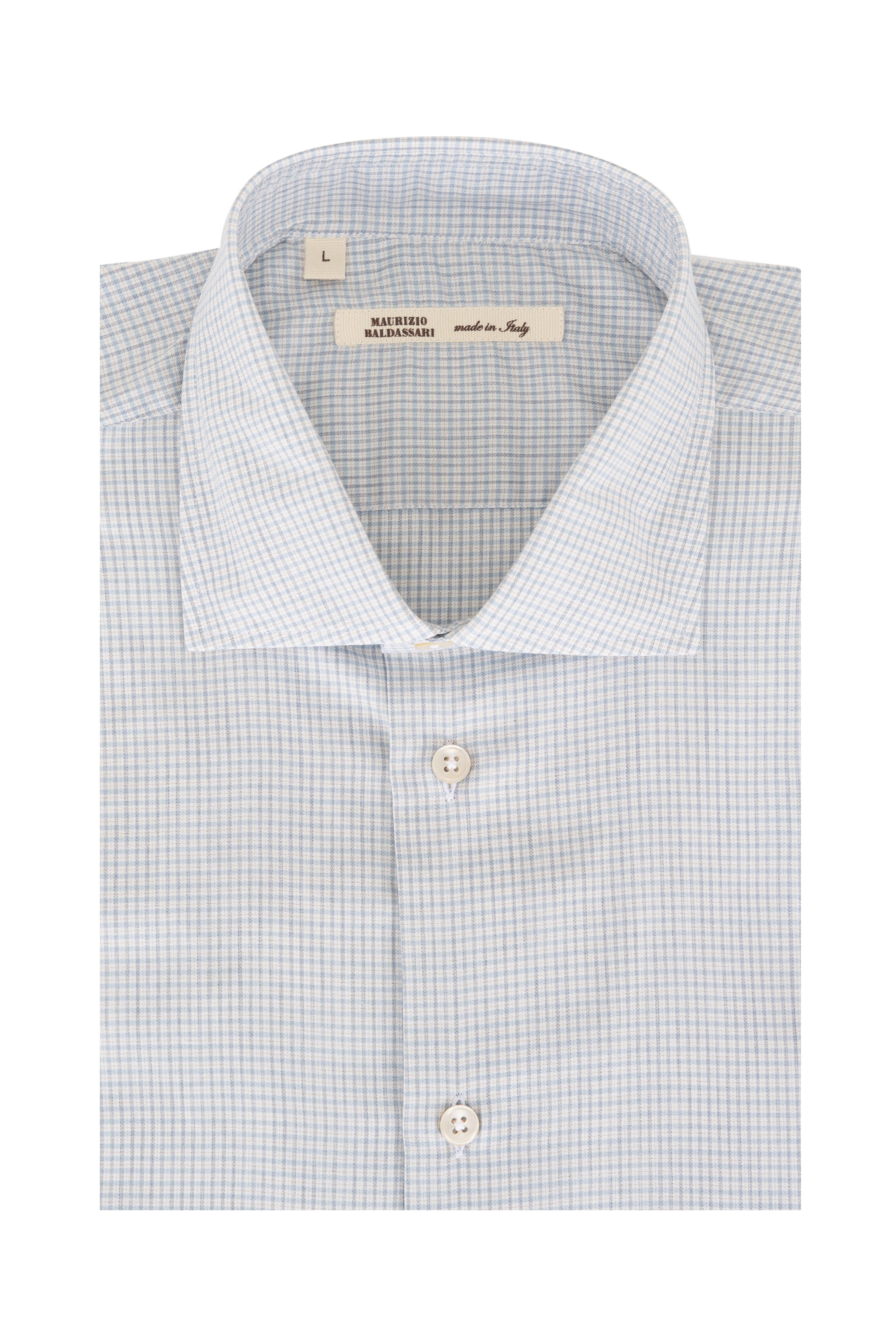 Spread collar. French front button placket. Single button mitered cuffs. Made in Italy. 100% cotton. Machine wash.