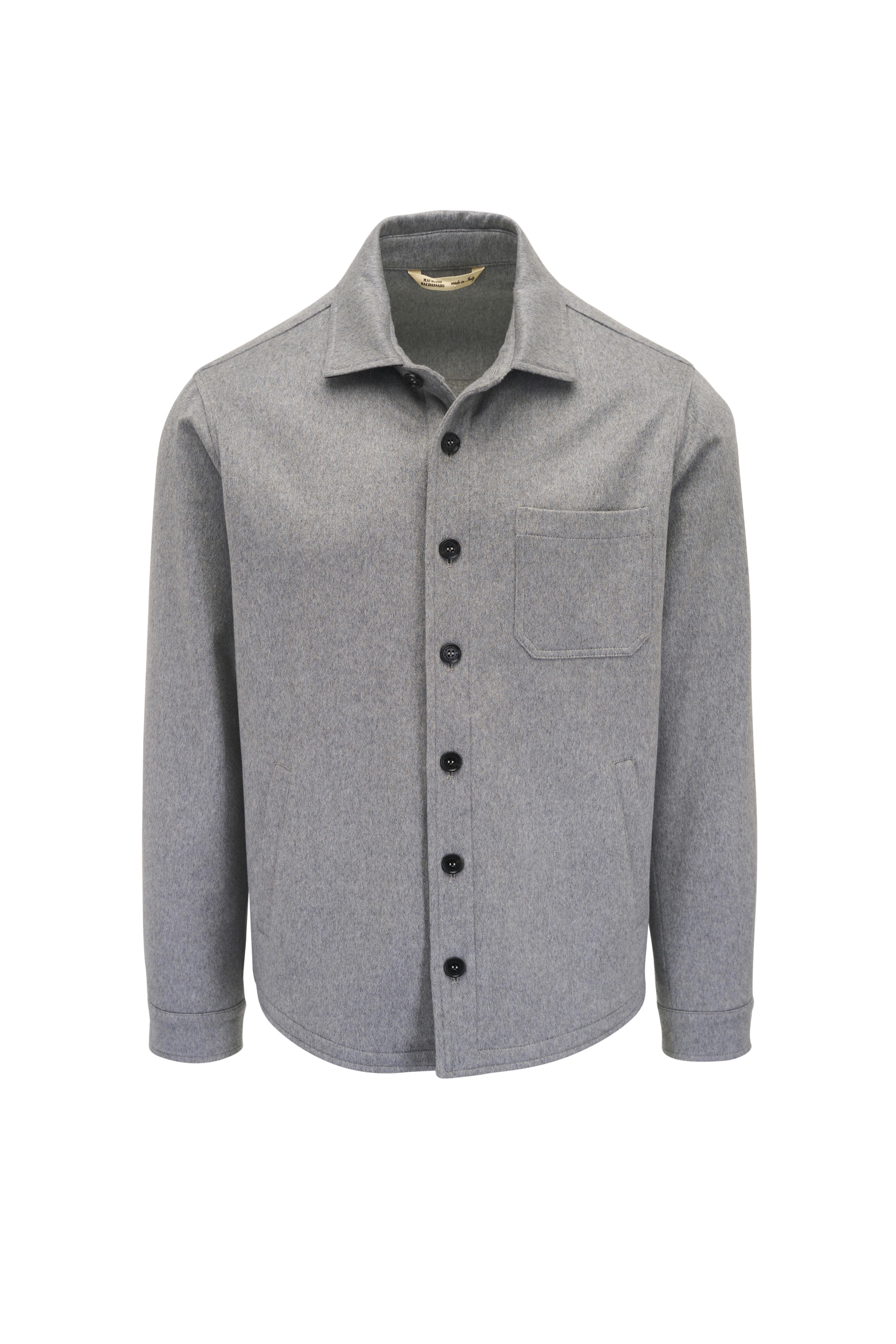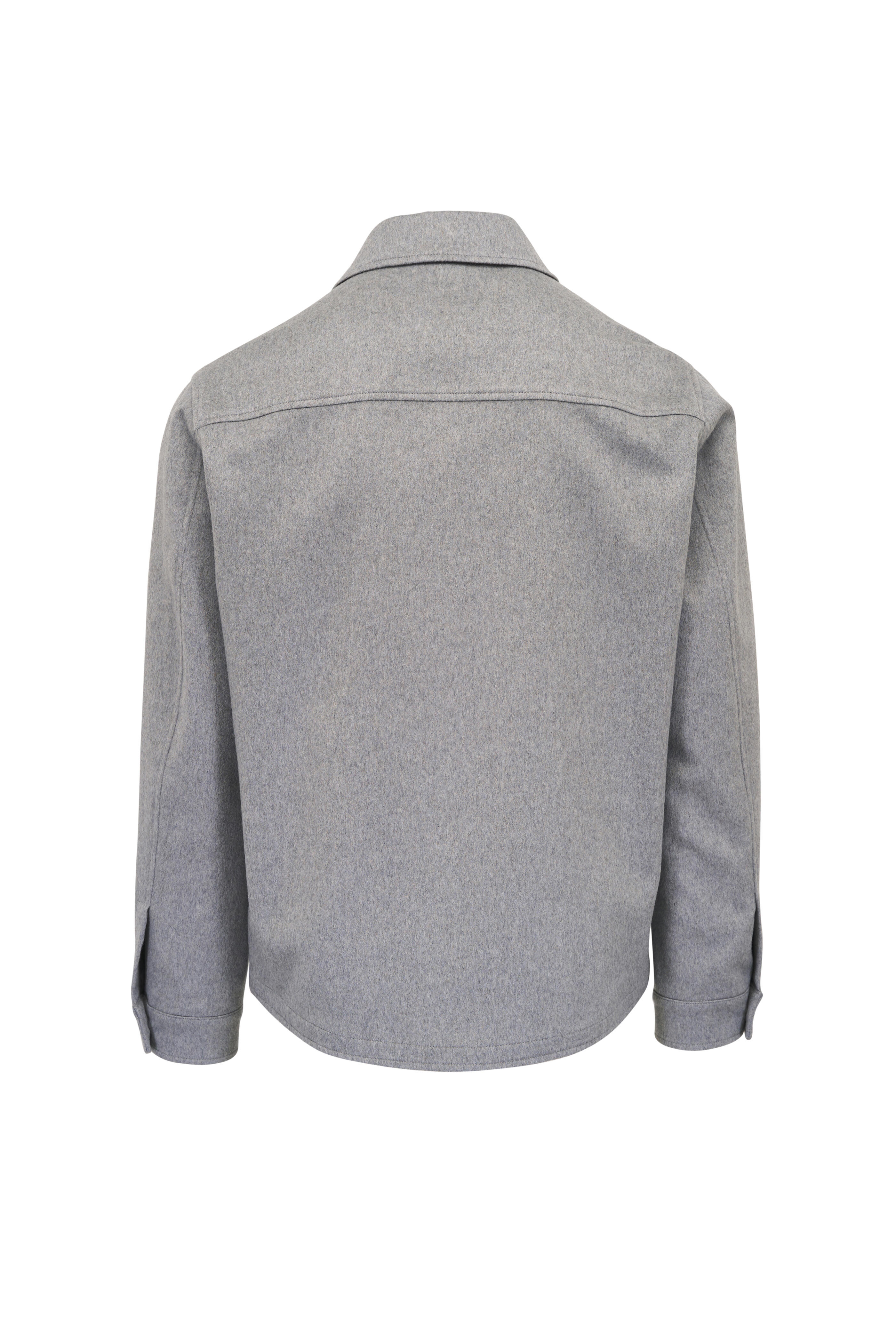 Spread collar. Front button placket. Chest patch pocket; lower waist slip pockets. Single button cuffs. Made in Italy. 100% cashmere. Dry clean.