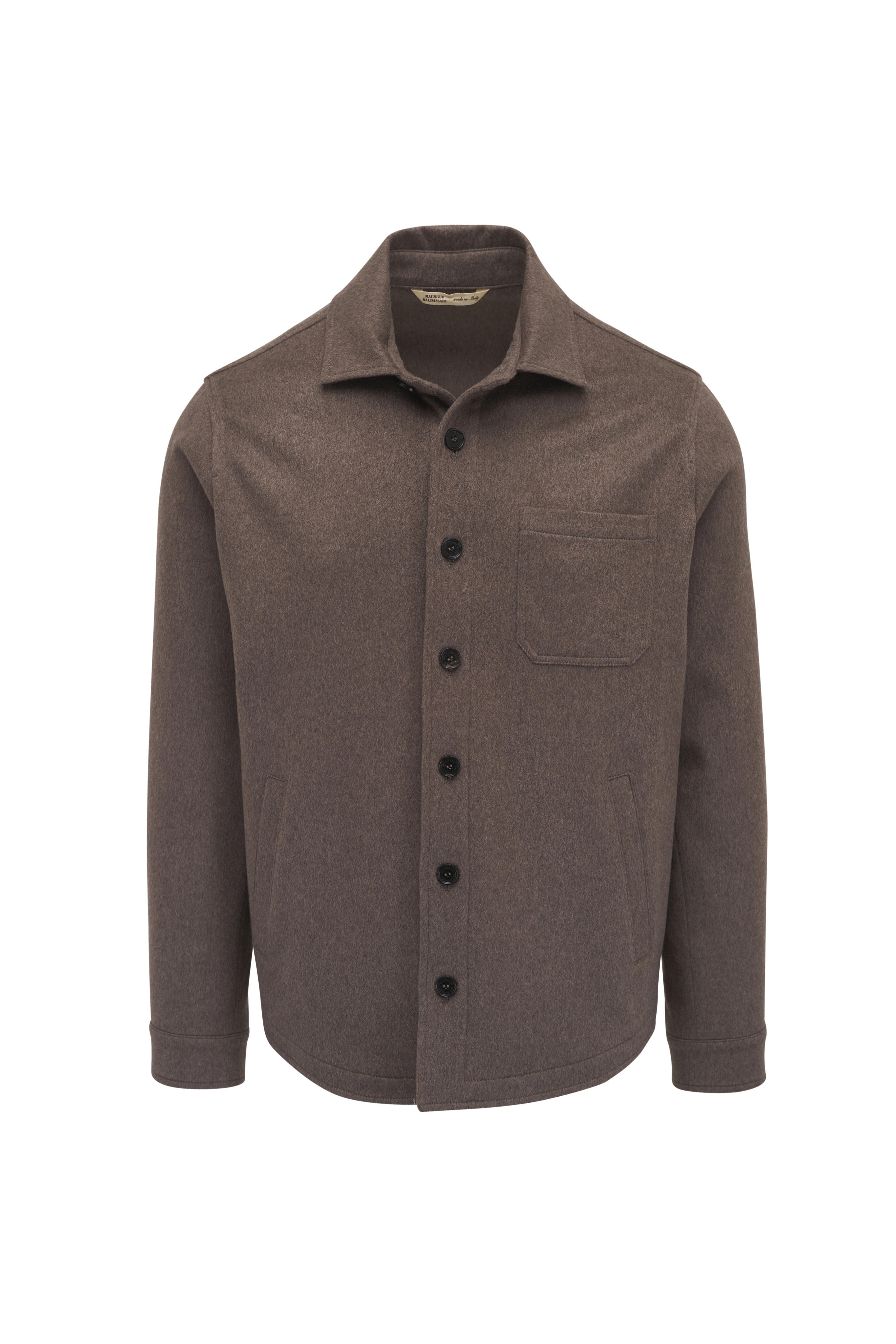 Spread collar. Front button placket. Lower slip pockets; chest patch pocket. Made in Italy. 100% cashmere. Dry clean.