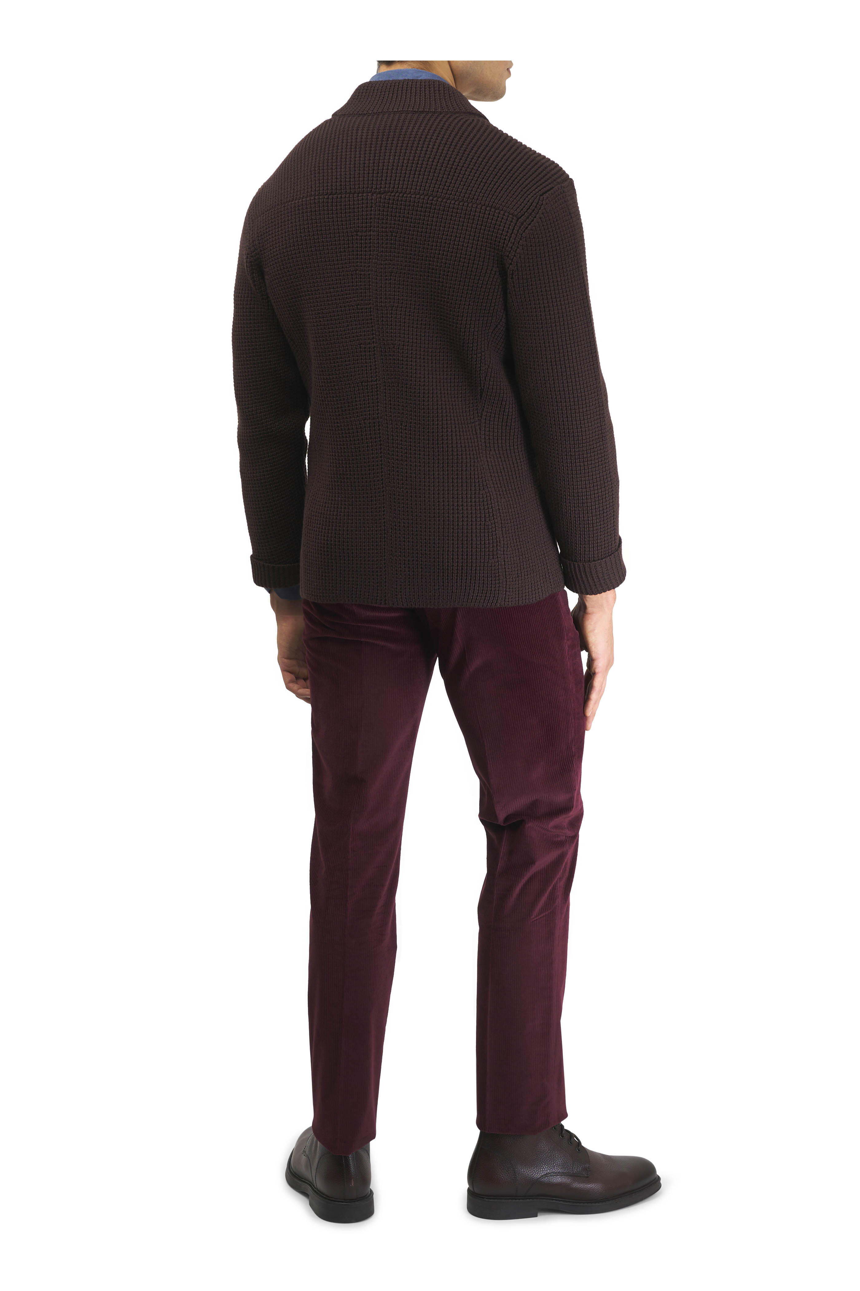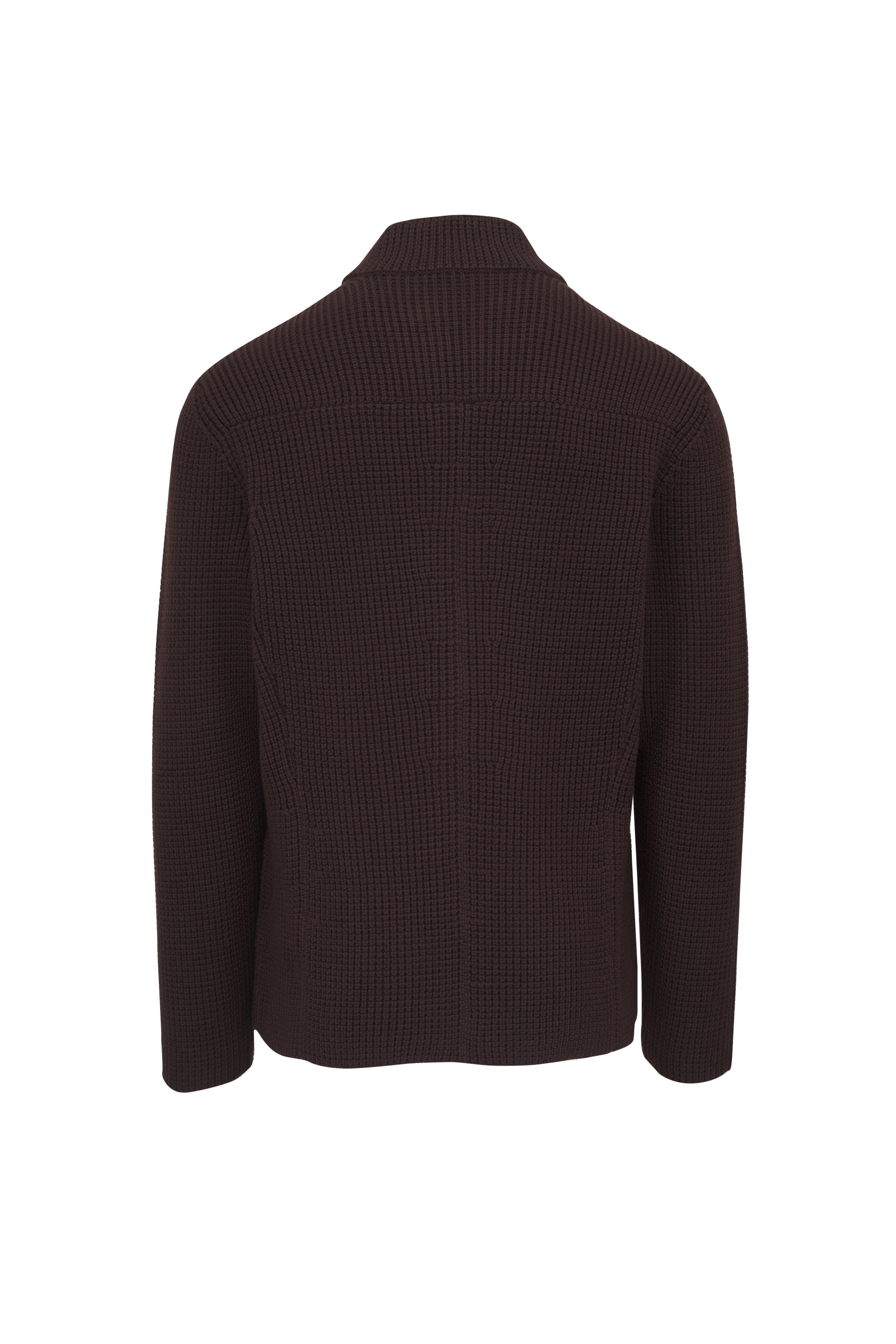 Stand collar. Front two-way zip placket. Ribbed throughout. Straight hem. Made in Italy. Shoulder to hem 30" (size L). 100% Virgin wool. Hand wash.