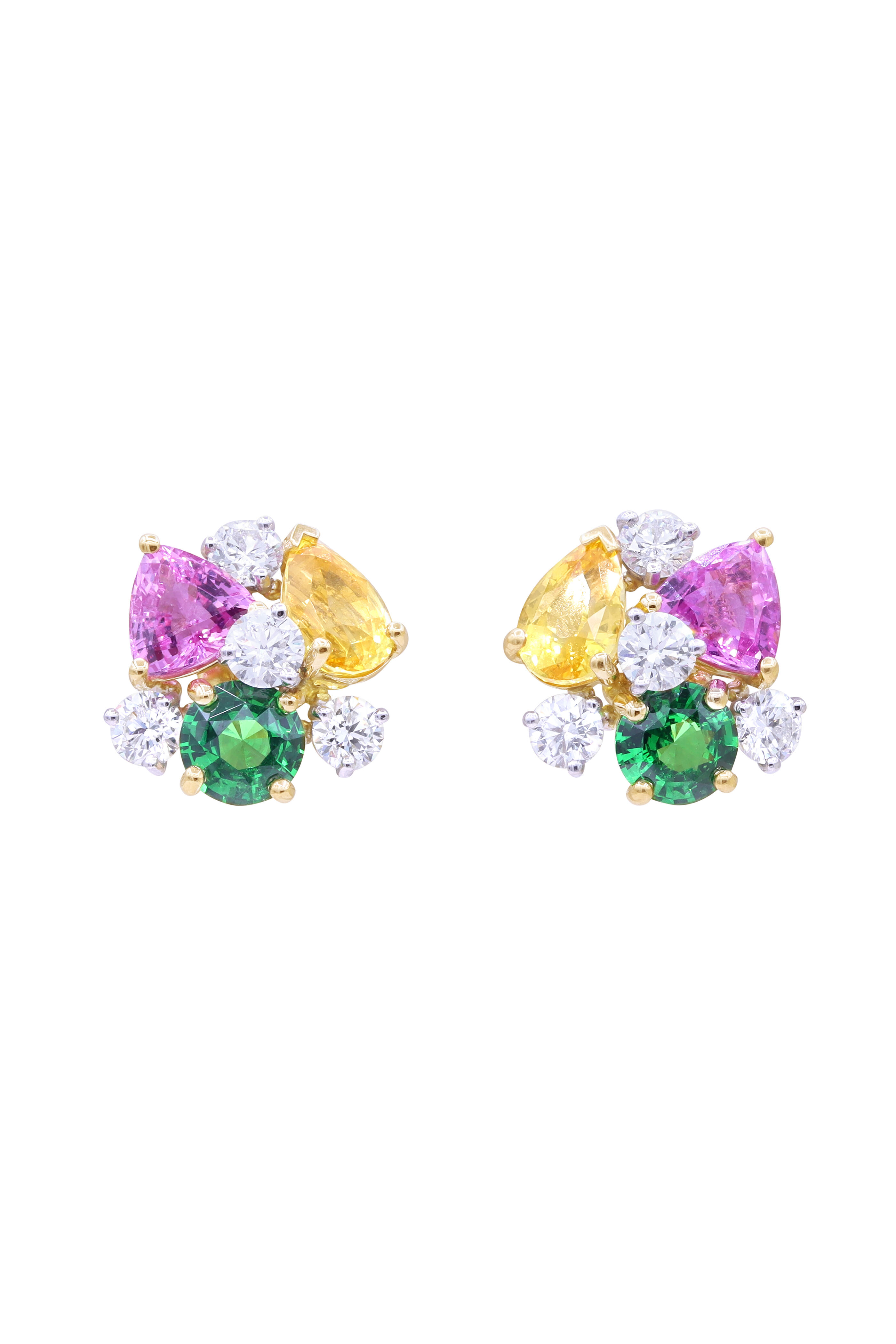 Gold Plated. 2.04 ct Tsavorite. 3.20 ct Pink Sapphire. 3.24 ct Yellow Sapphire. 1.80 ct Diamond.