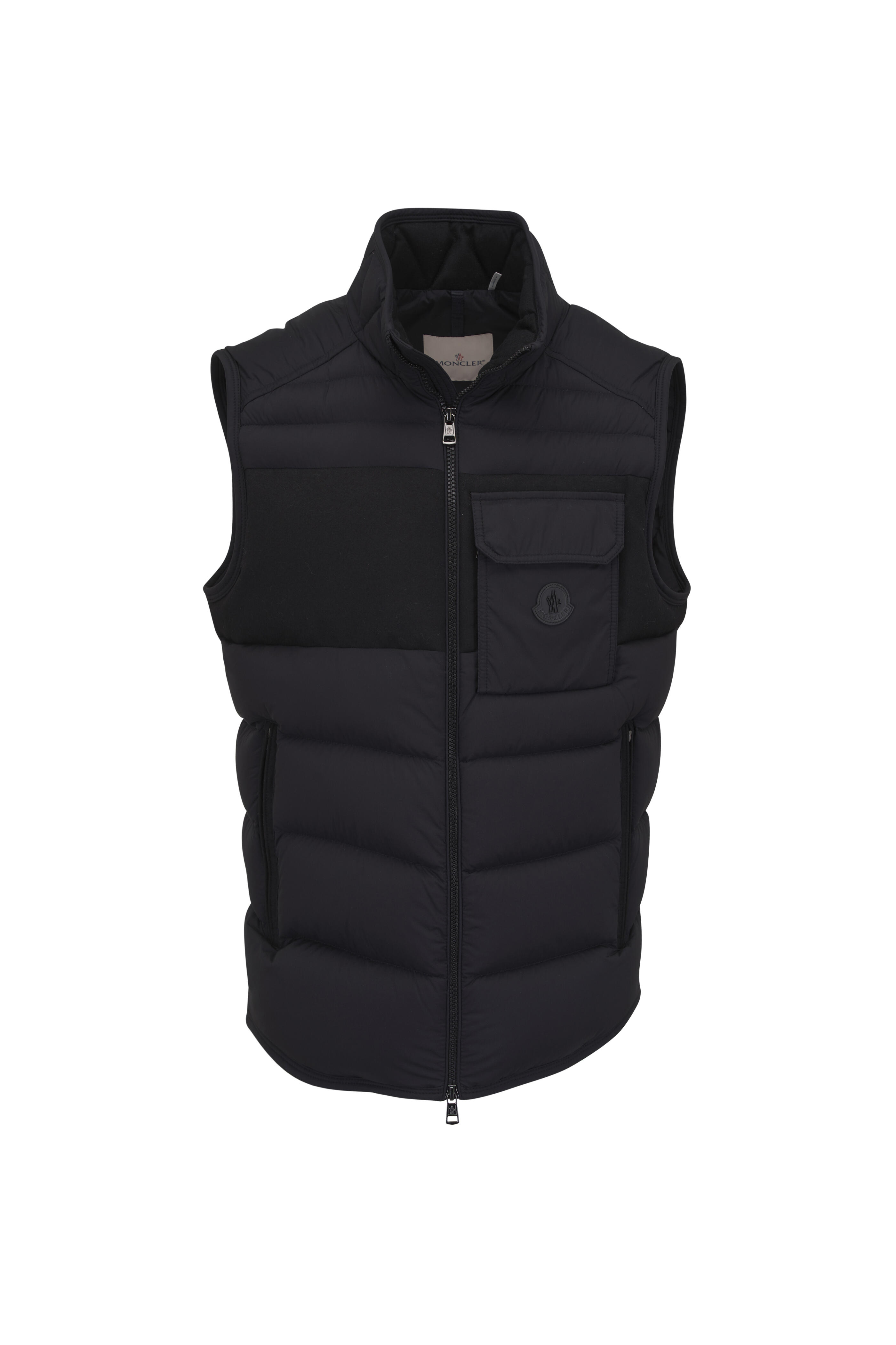 Stand collar. Front zip placket. Side zip pockets; chest pocket with zipper and snap button closure; inner patch pocket with snap button closure. Leather logo patch. Imported. Regular fit. 100% polyamide; fill: 90% down, 10% feather. Dry clean.