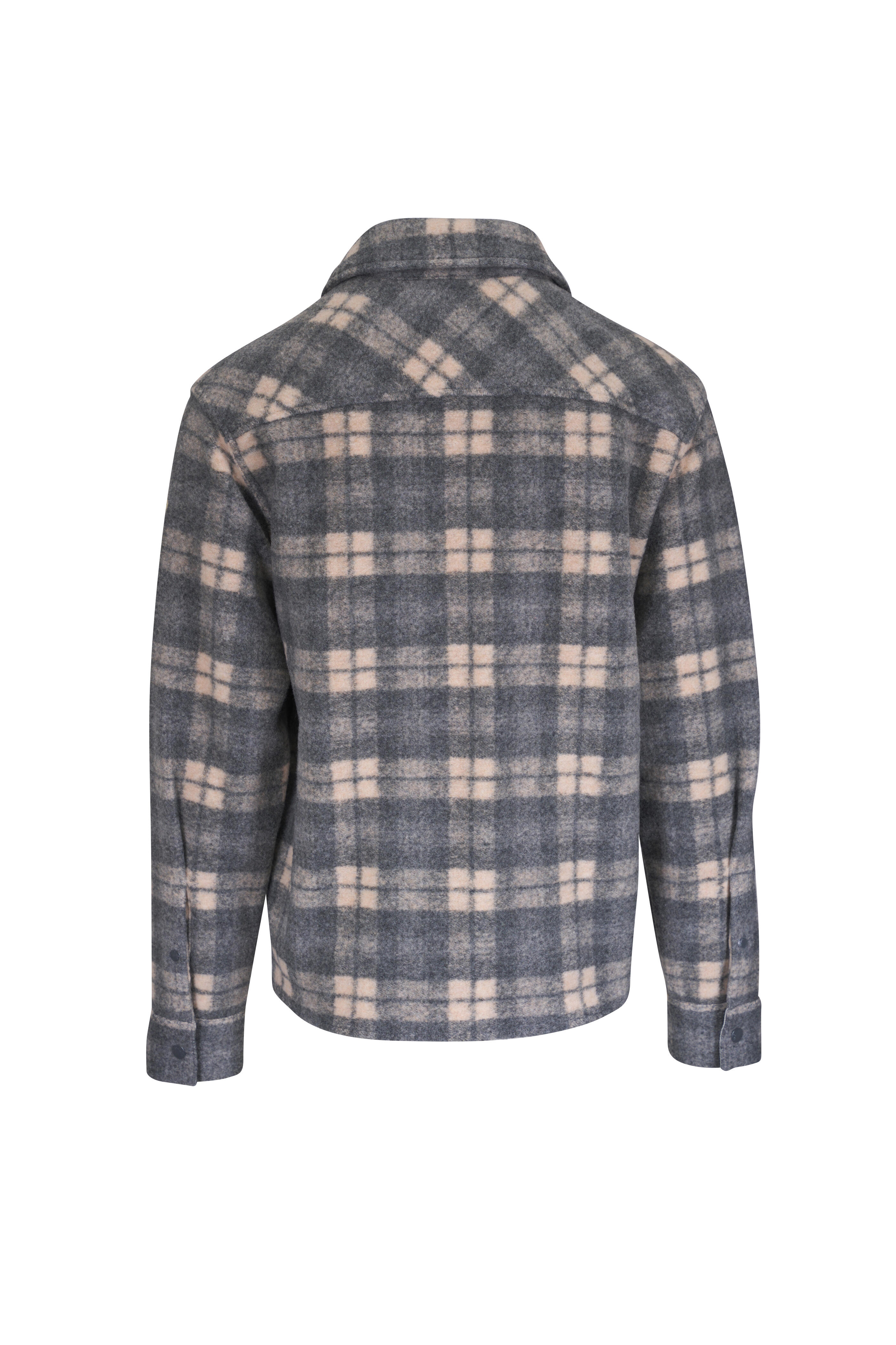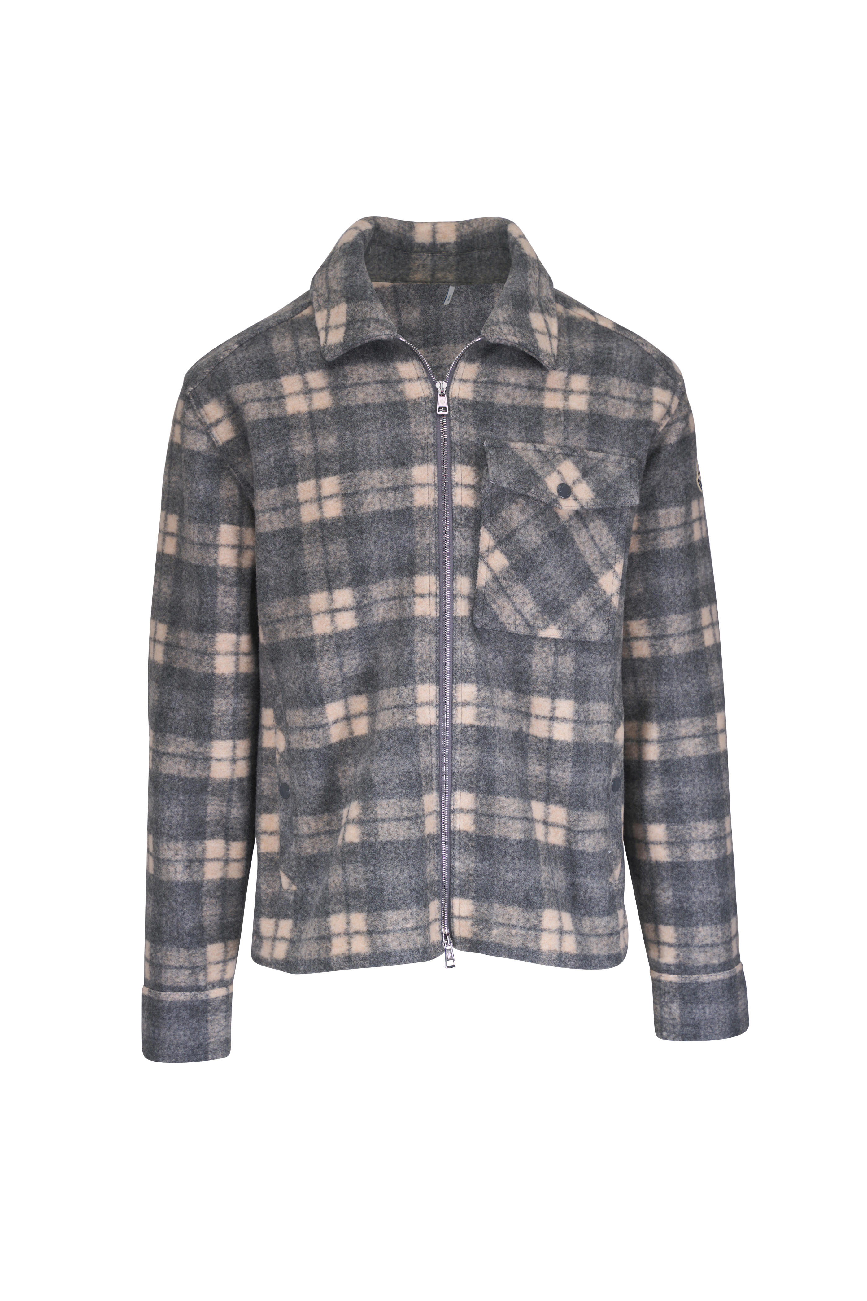 Spread collar. Two-way zip placket. Chest patch pockets; lower snap pockets. Single button cuffs. Imported. 82% polyester, 13% wool, 5% acrylic. Dry clean.