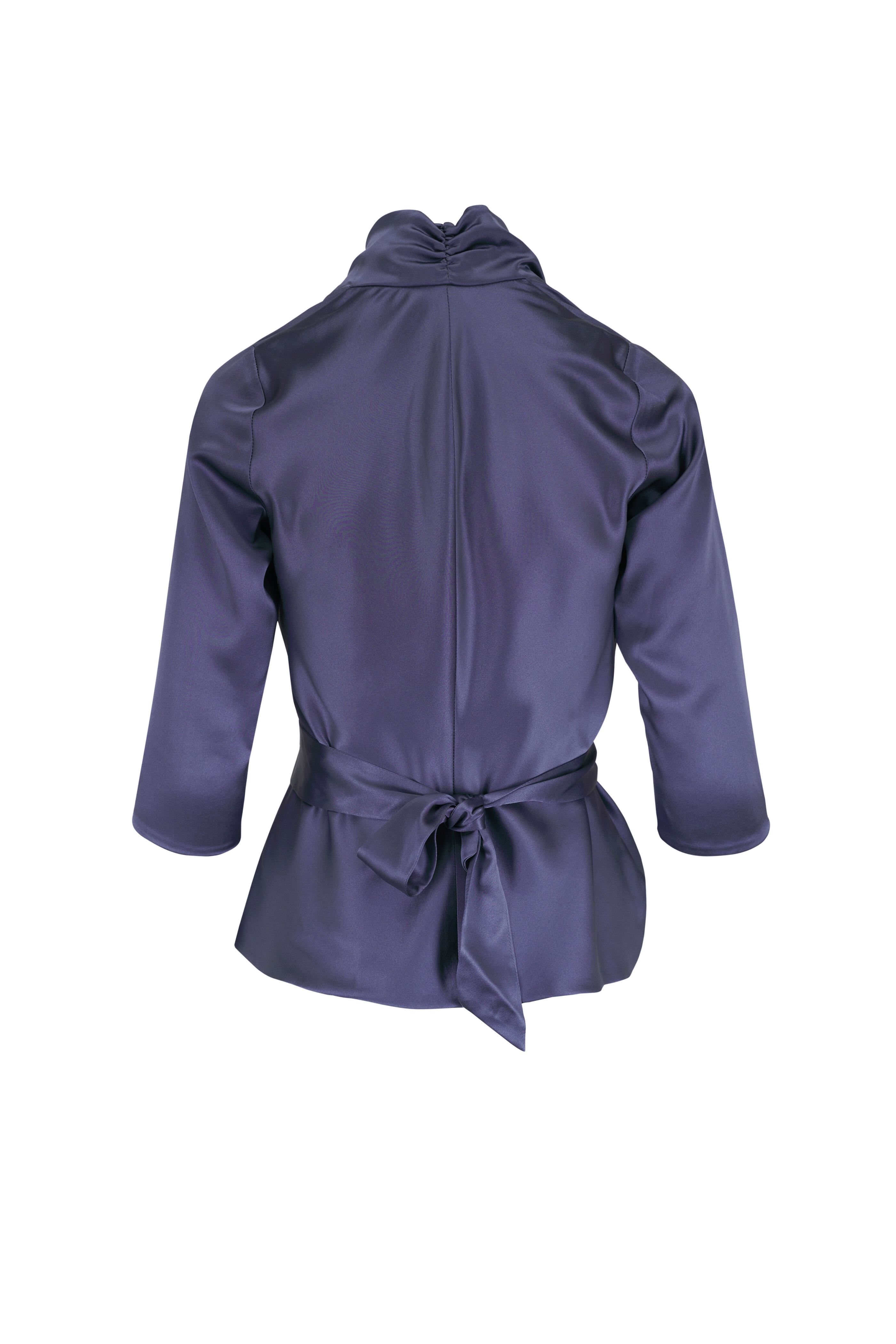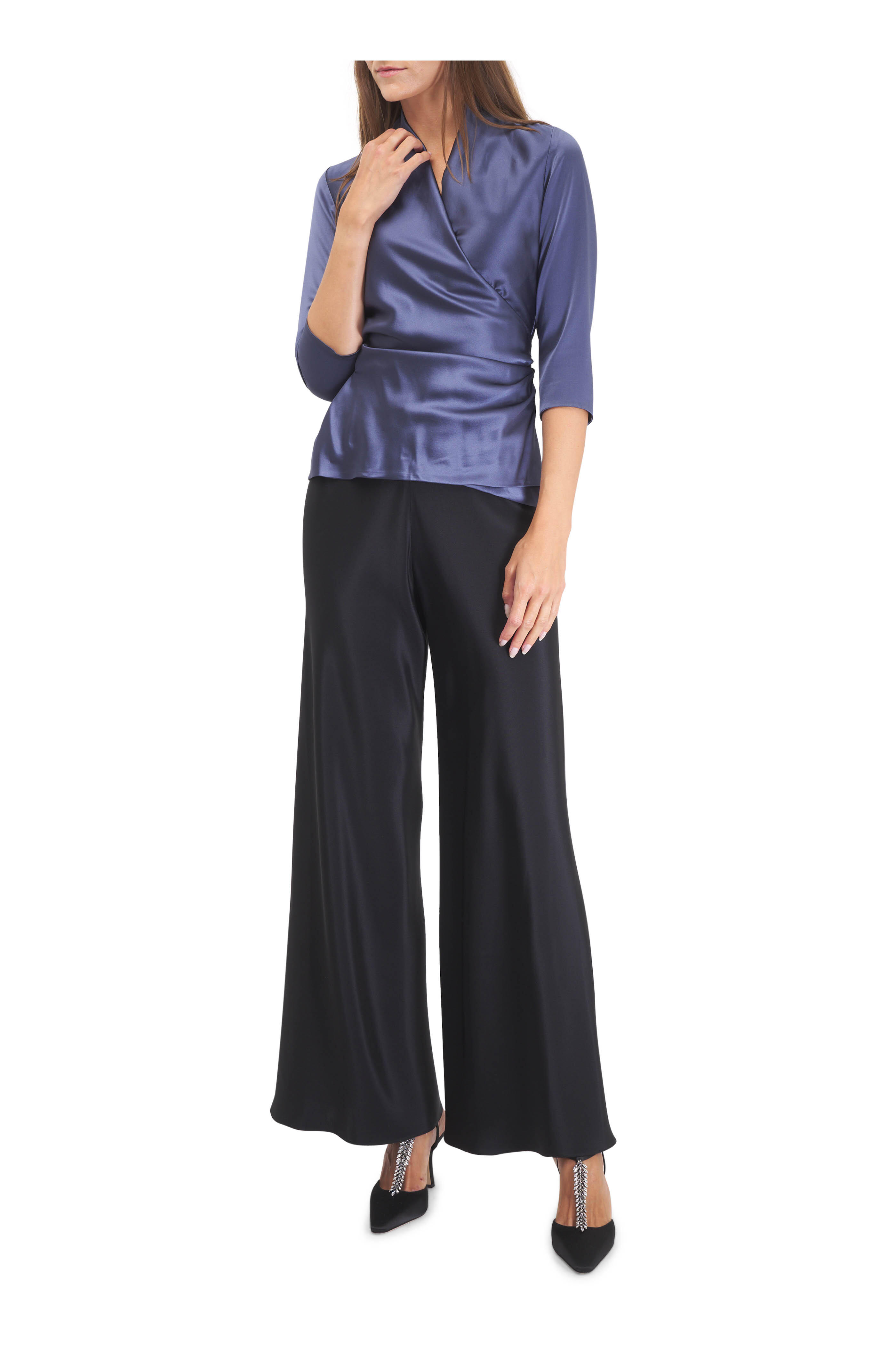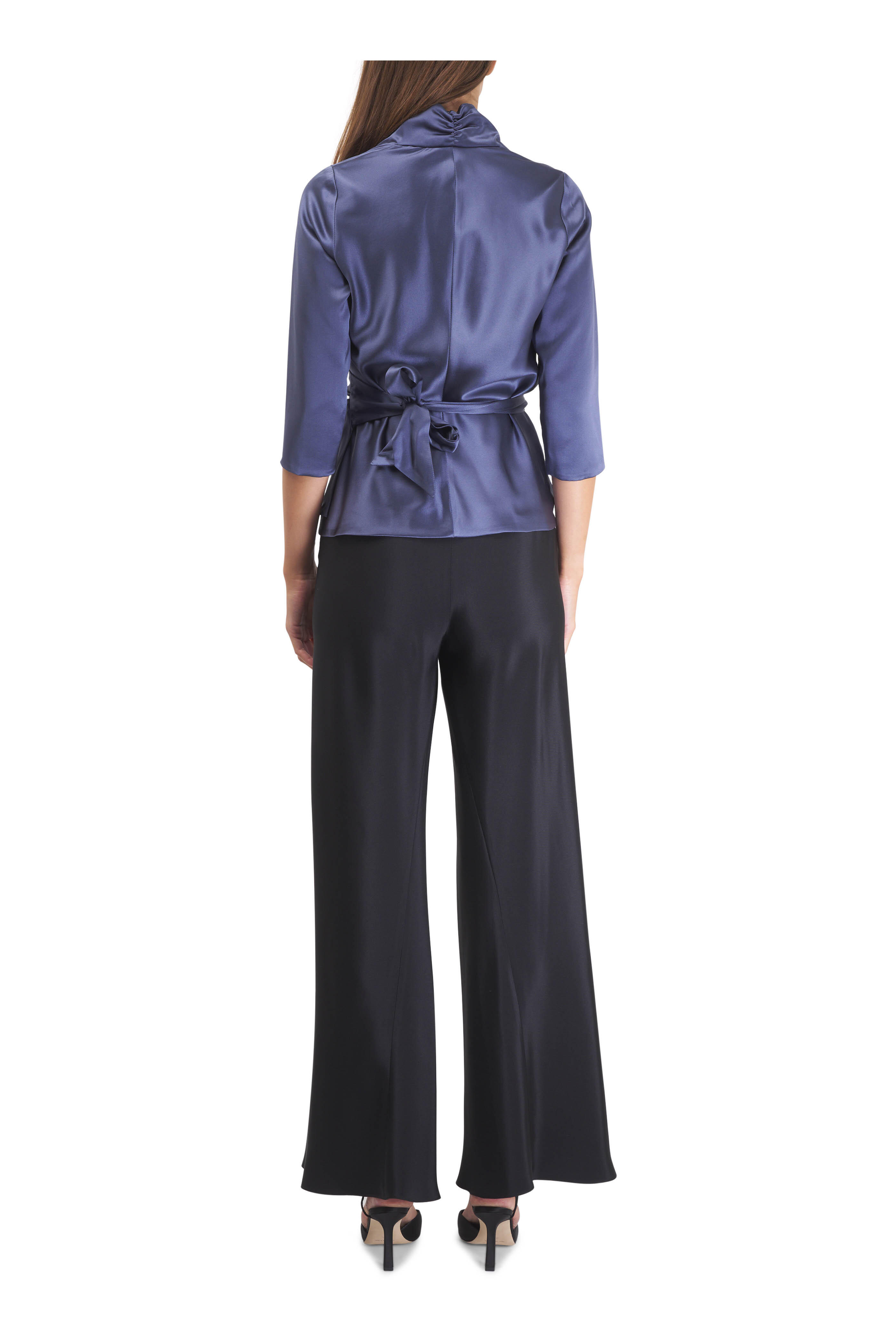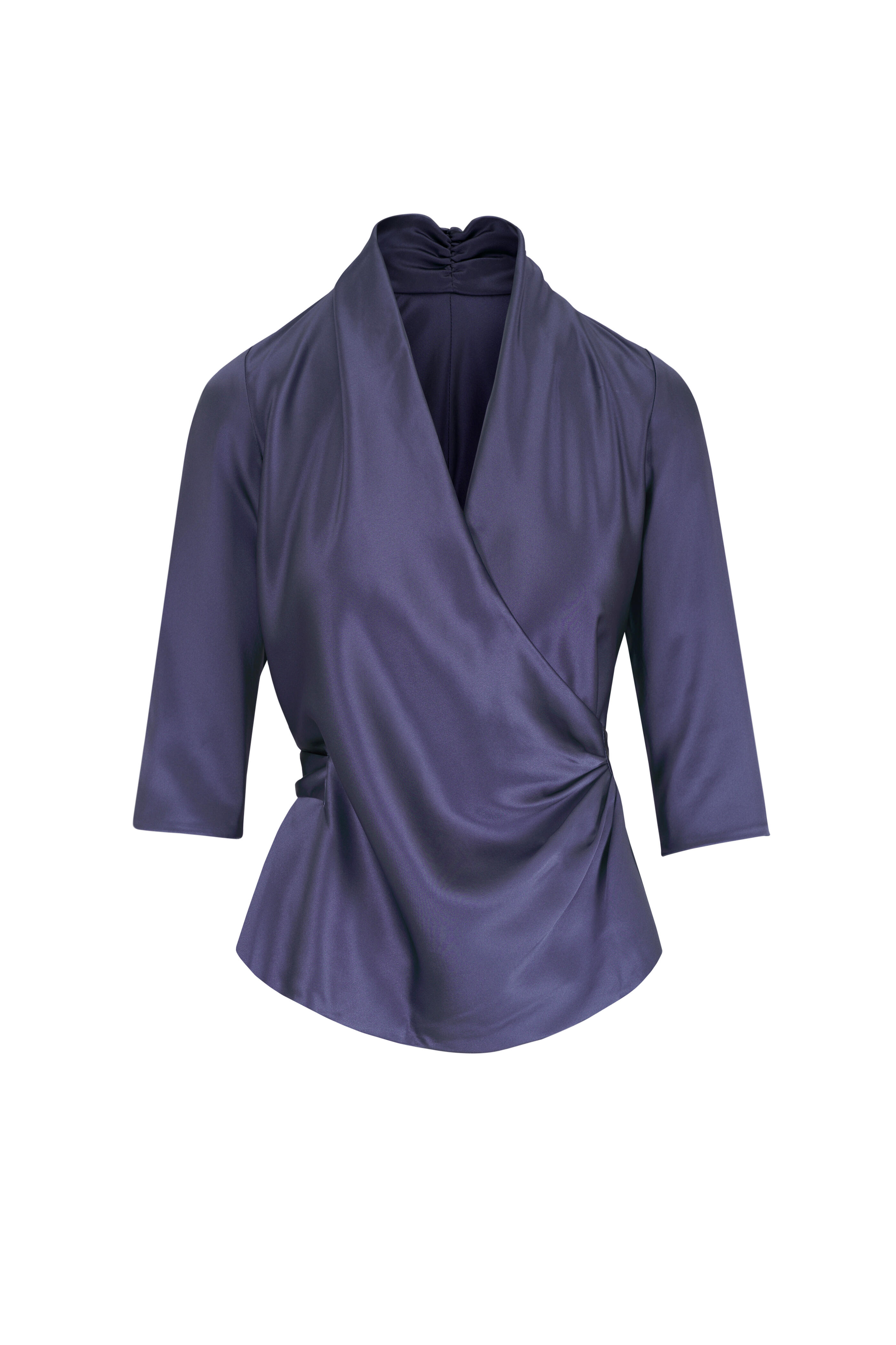 • Peter Cohen - 3/4 Sleeve Denim Heavy Satin Wrap Top