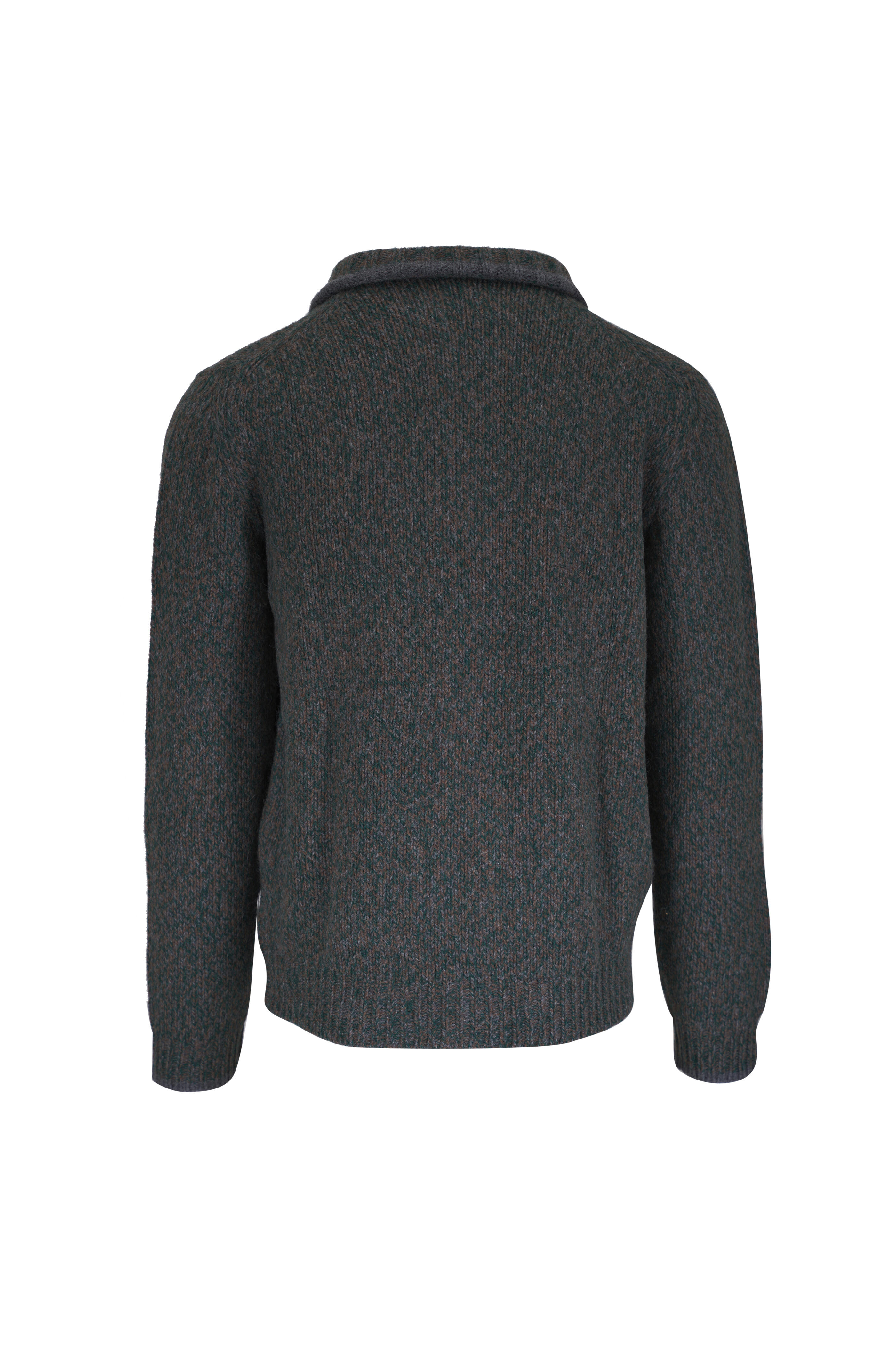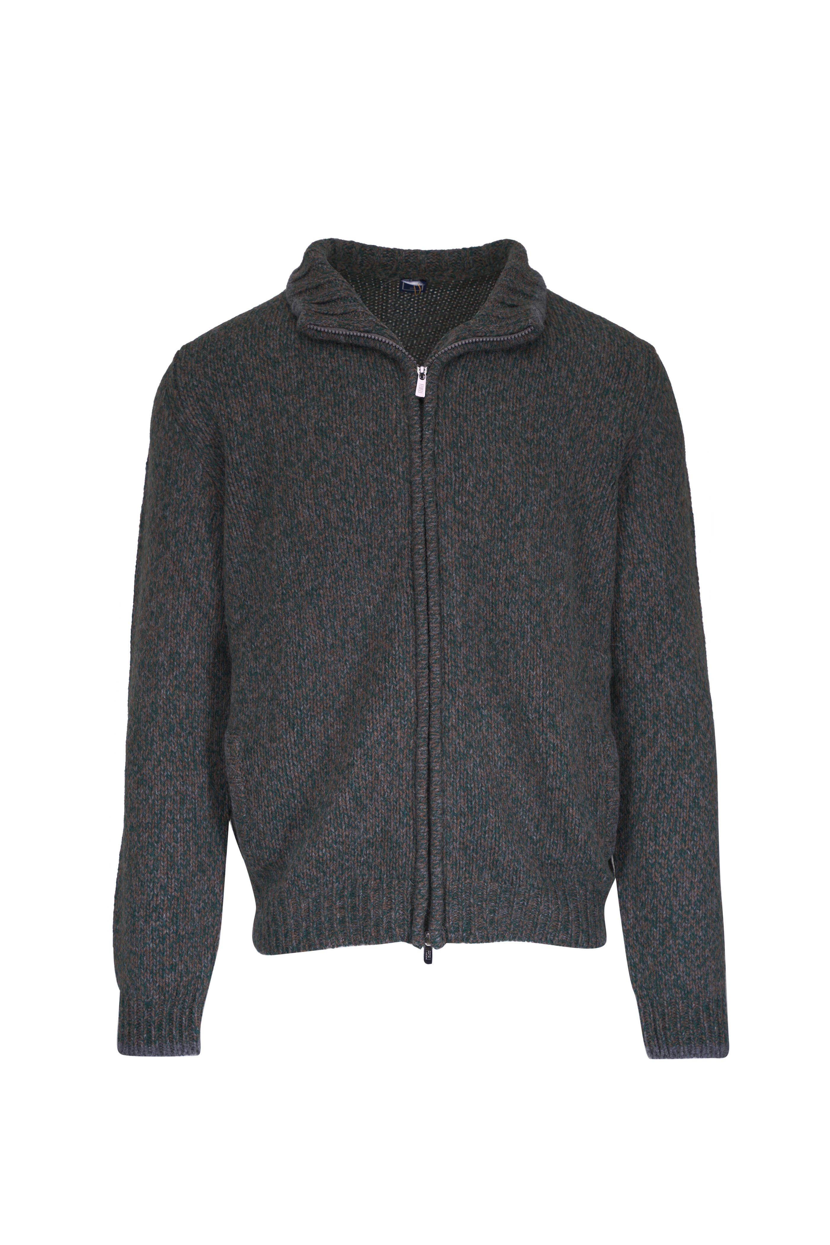 • Fedeli - Green & Brown Mélange Full Zip Cardigan