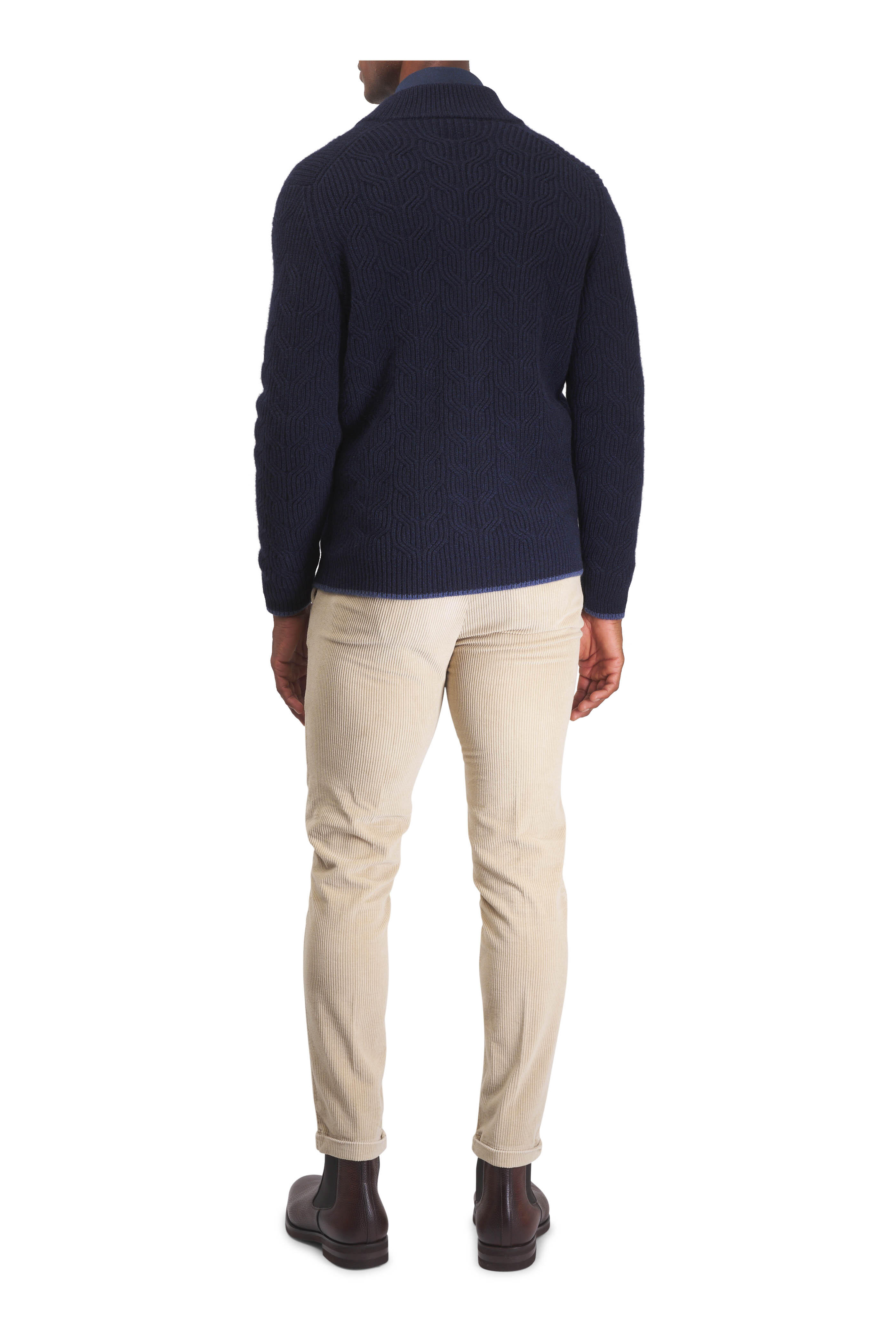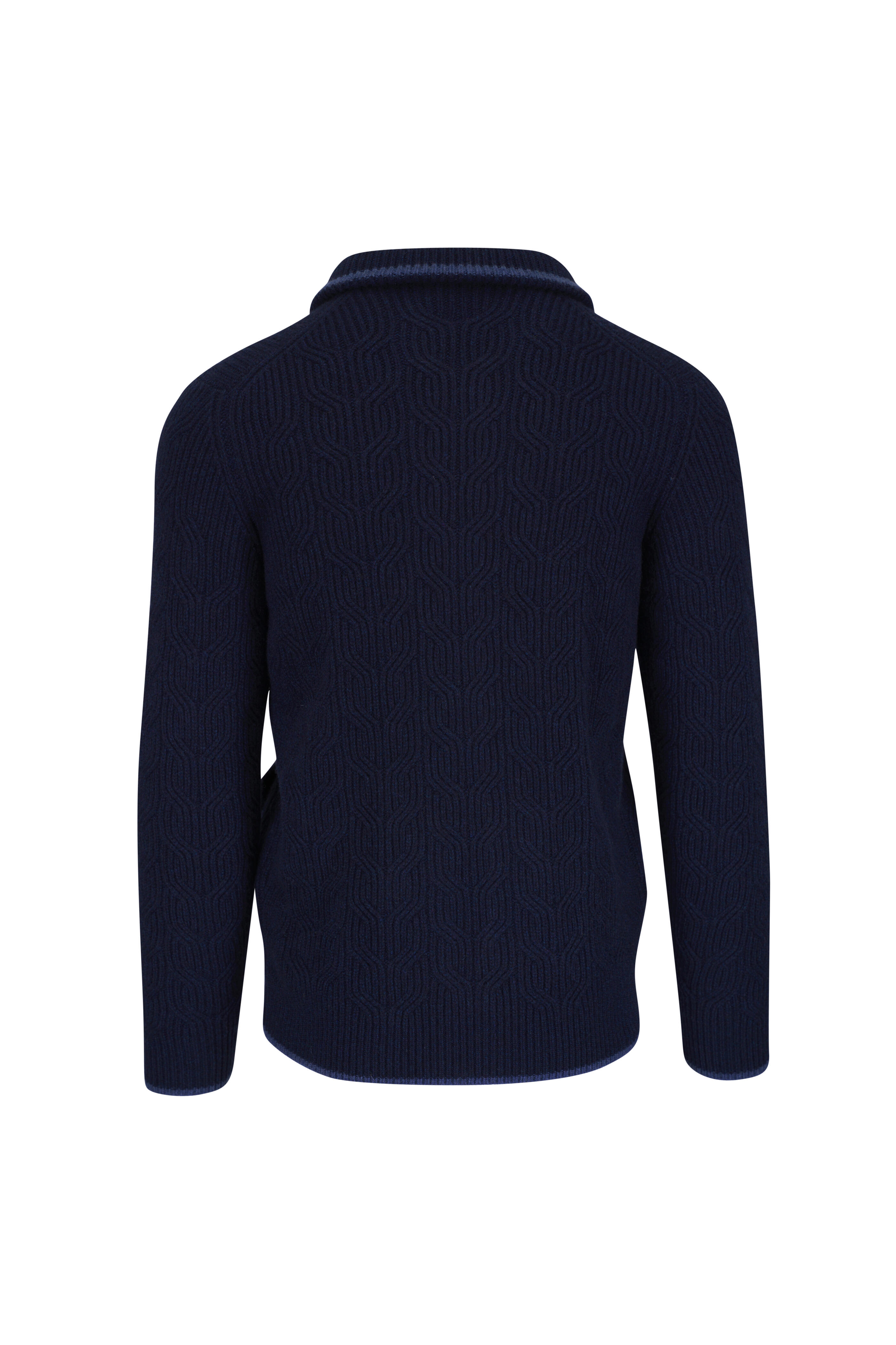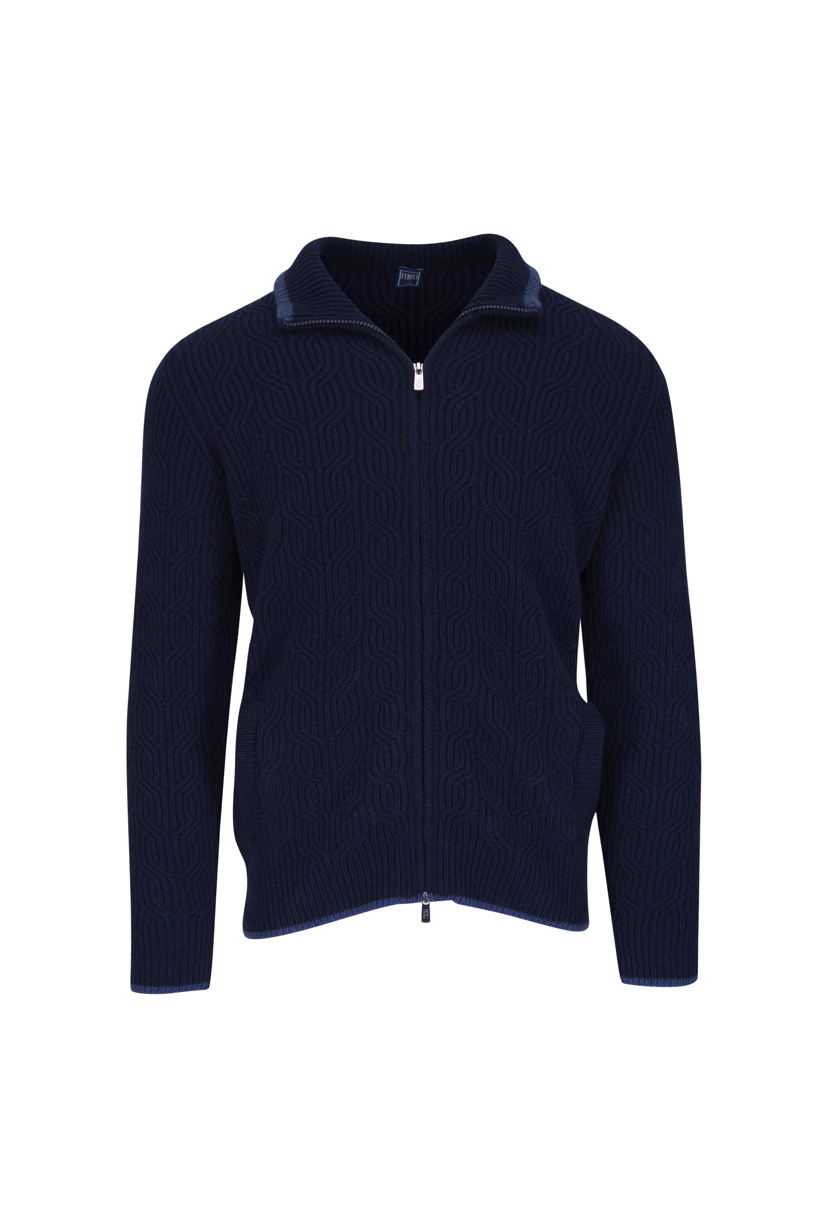 • Fedeli - Navy Tipped Cashmere Full Zip Sweater