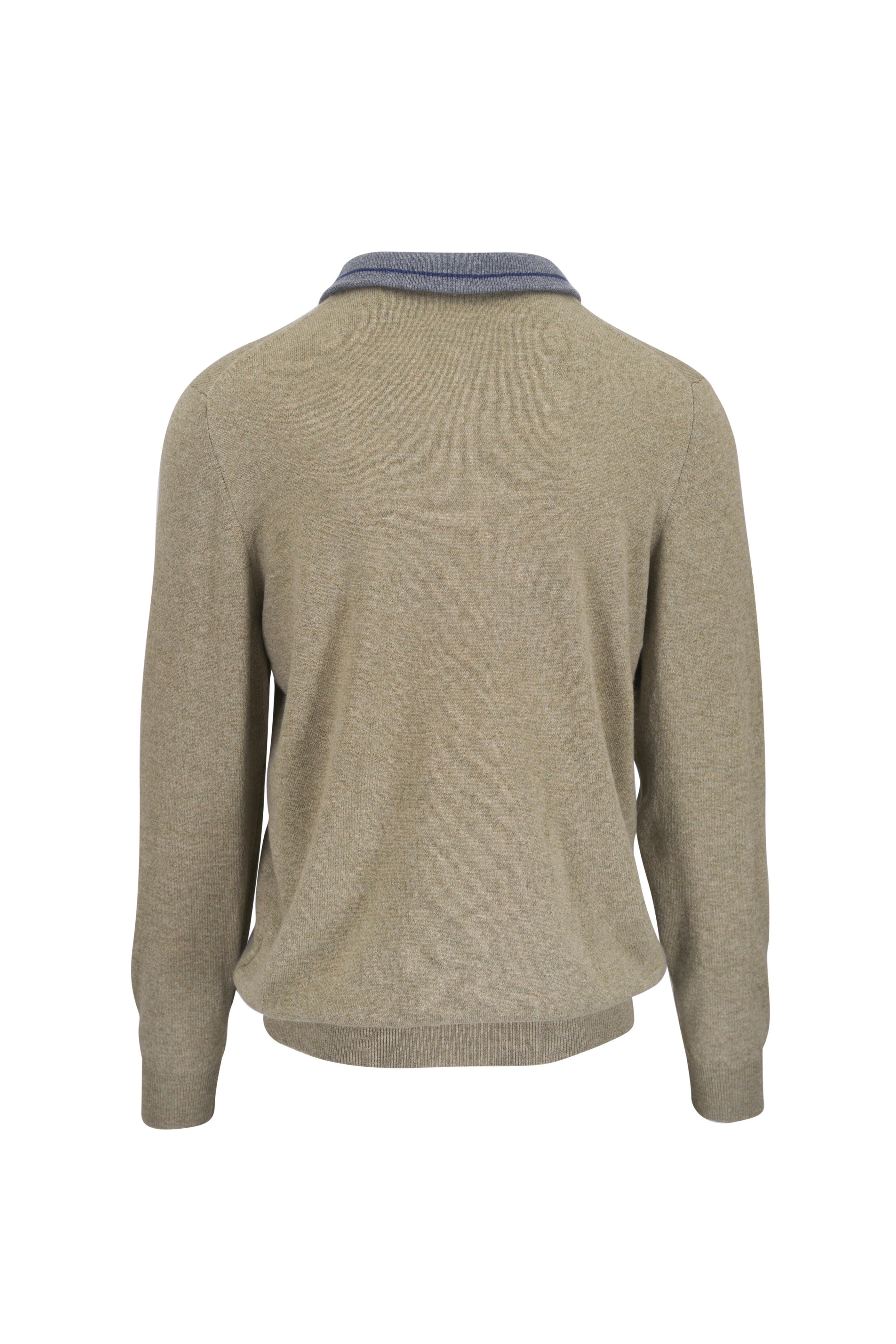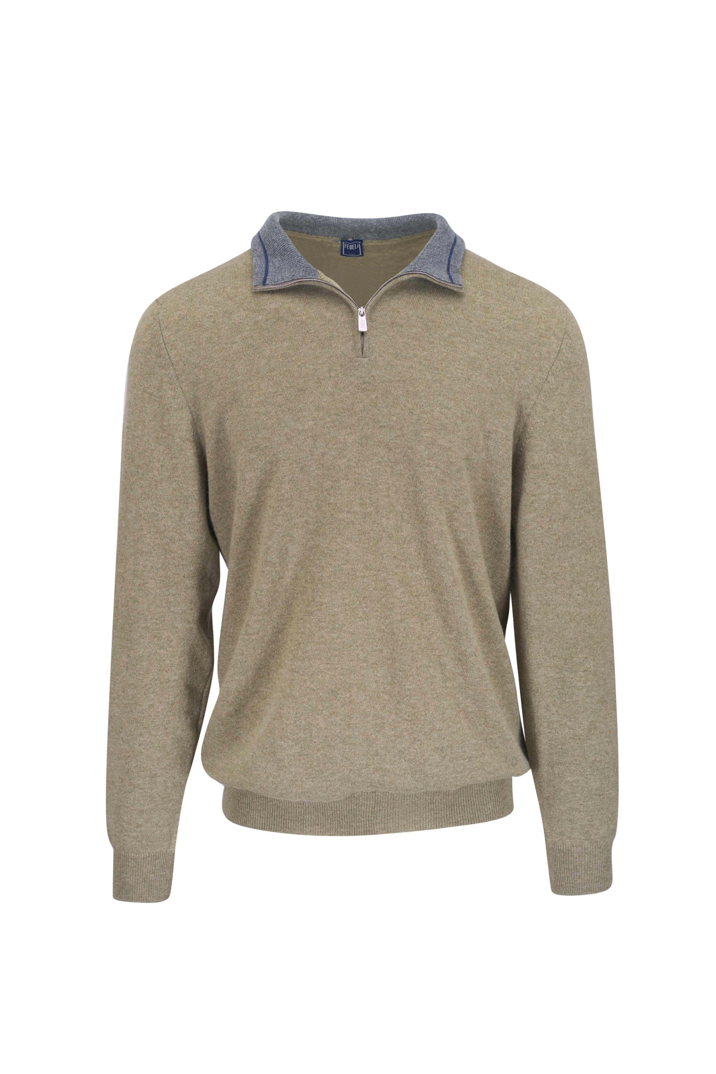 Stand collar. Quarter zip placket. Pullover style. Ribbed trims. Straight hem. Made in Italy. Shoulder to hem 30" (size L). 100% Cashmere. Machine wash.
