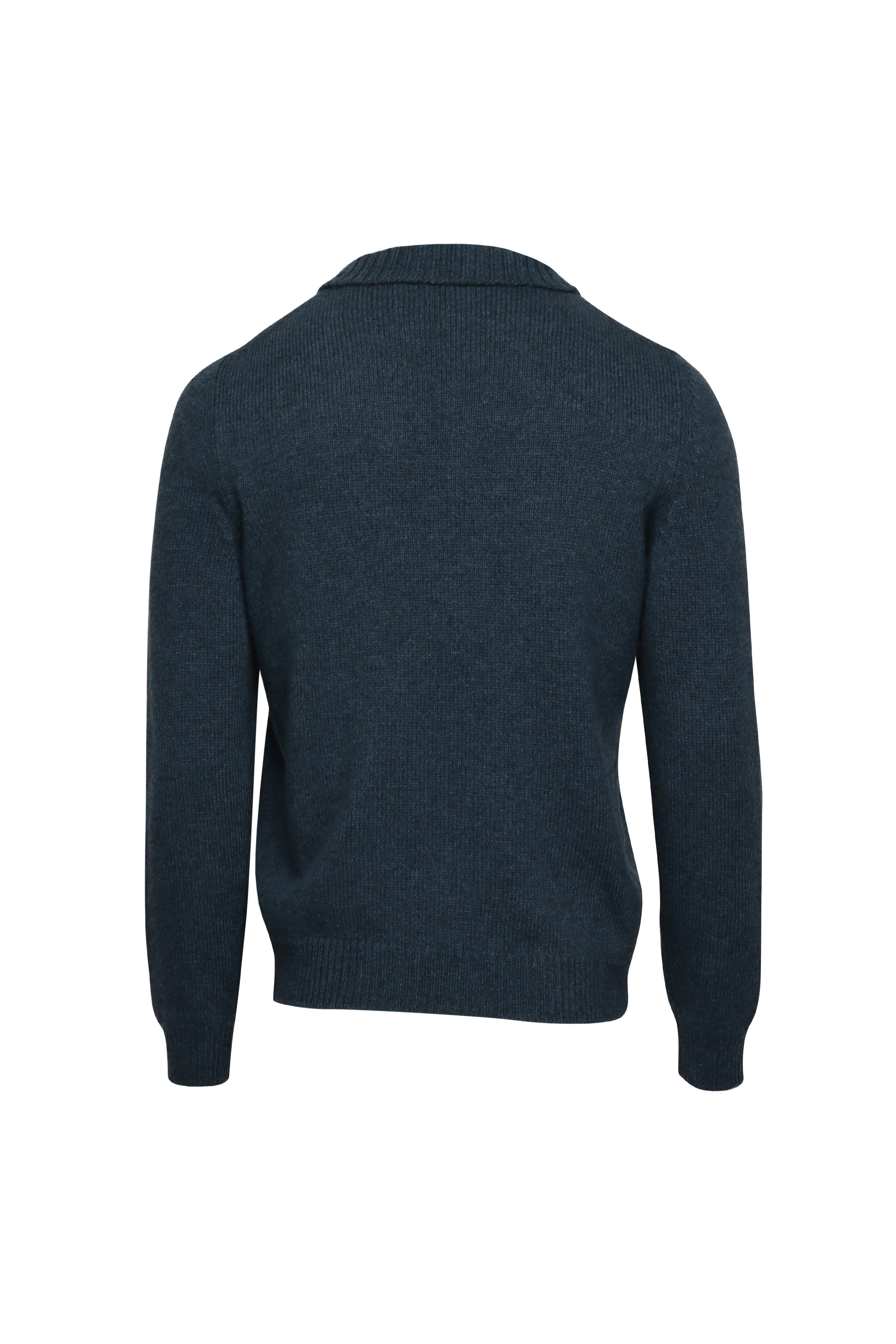 • Fedeli - Blue Knit Quarter Zip Sweater