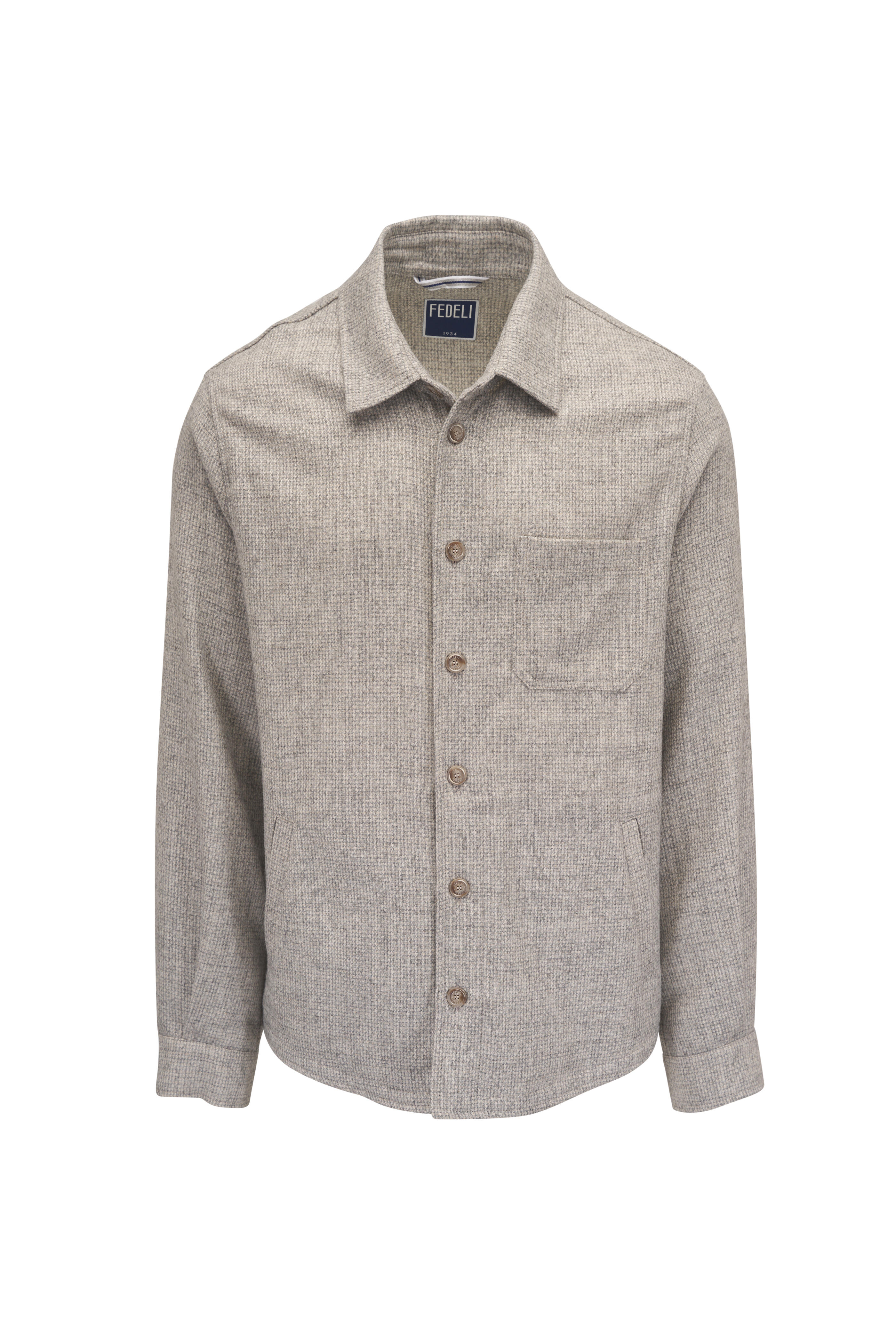 Spread collar. Front button placket. Chest patch pocket; lower slip pockets. Single button squared cuffs. Made in Italy. 58% wool, 33% alpaca, 9% polyester. Dry clean.