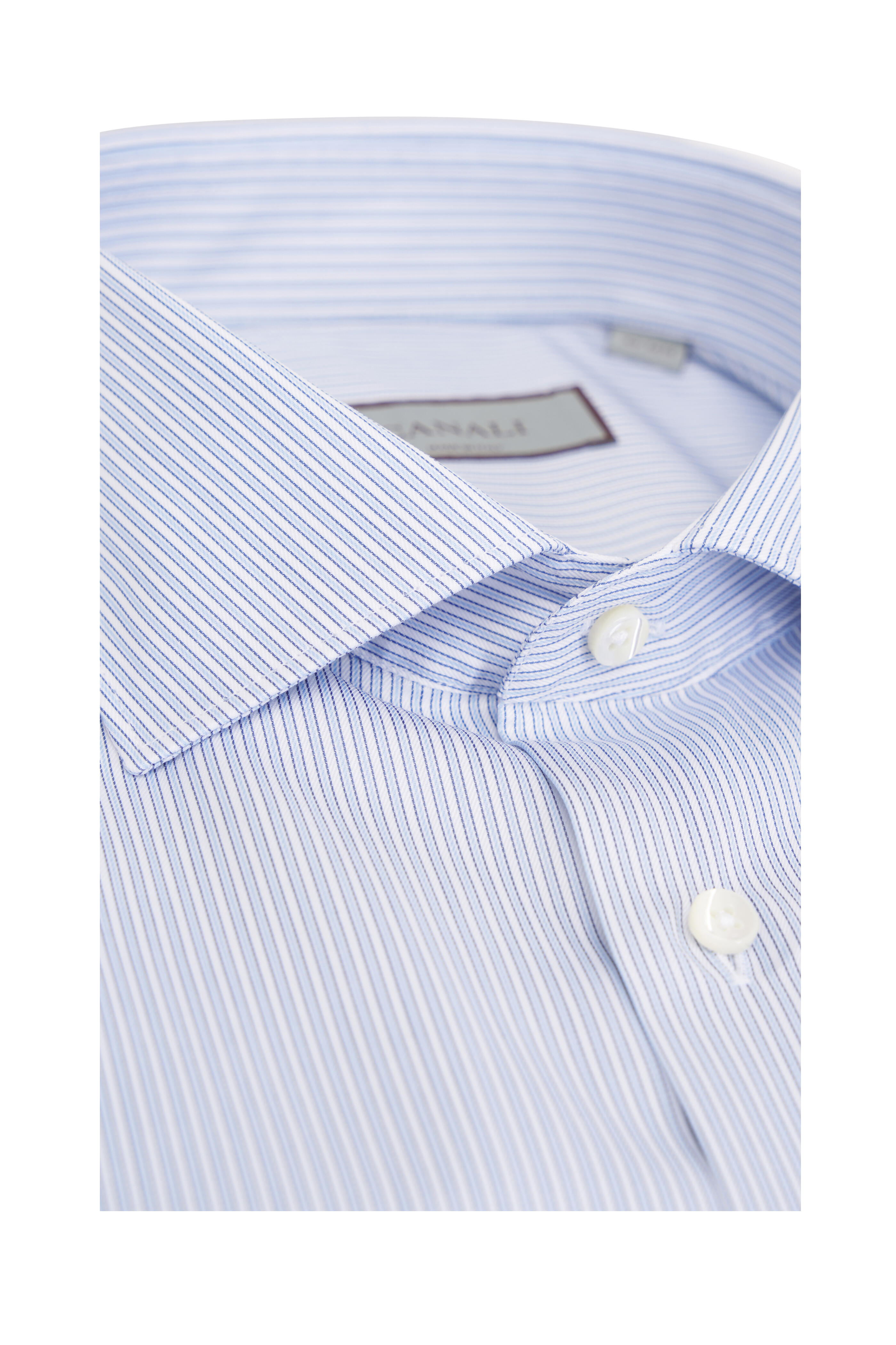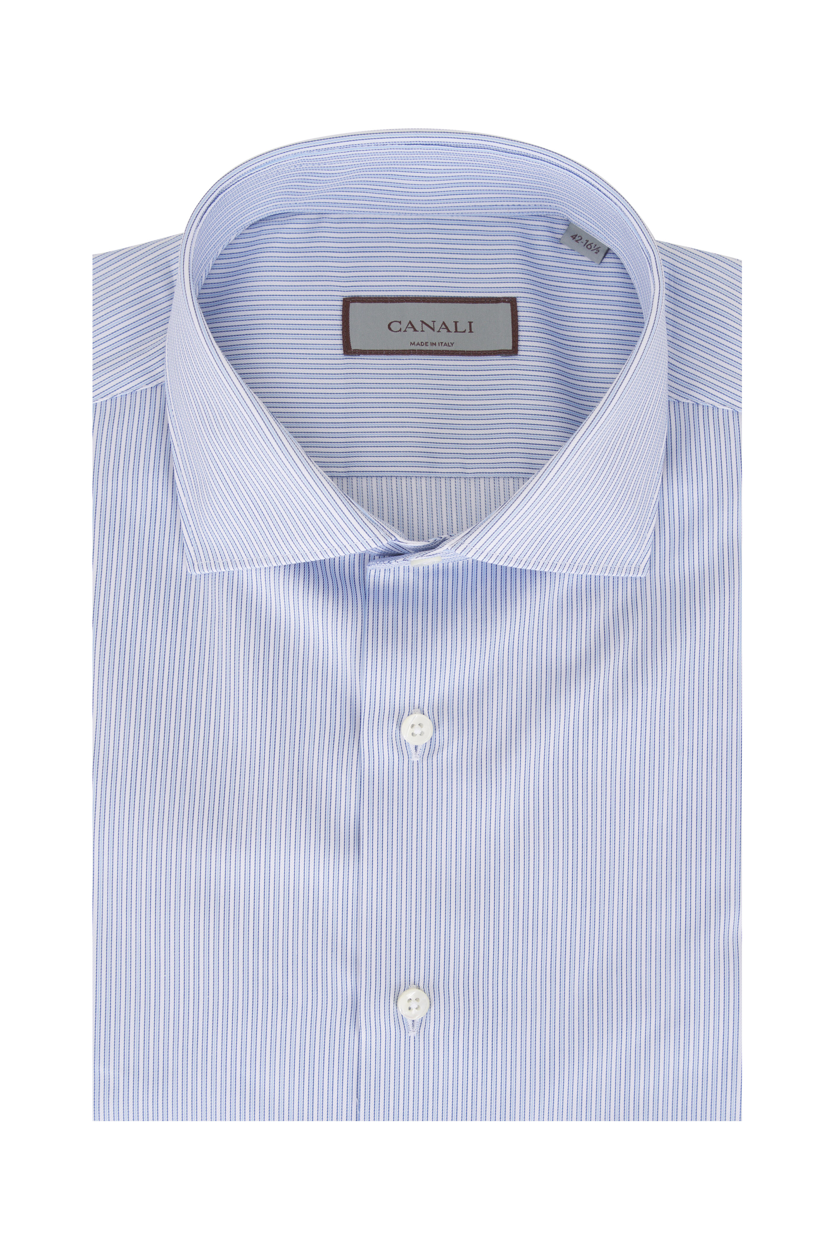 Spread collar. French front button placket. Single button barrel cuffs. Made in Italy. 100% cotton. Machine wash.