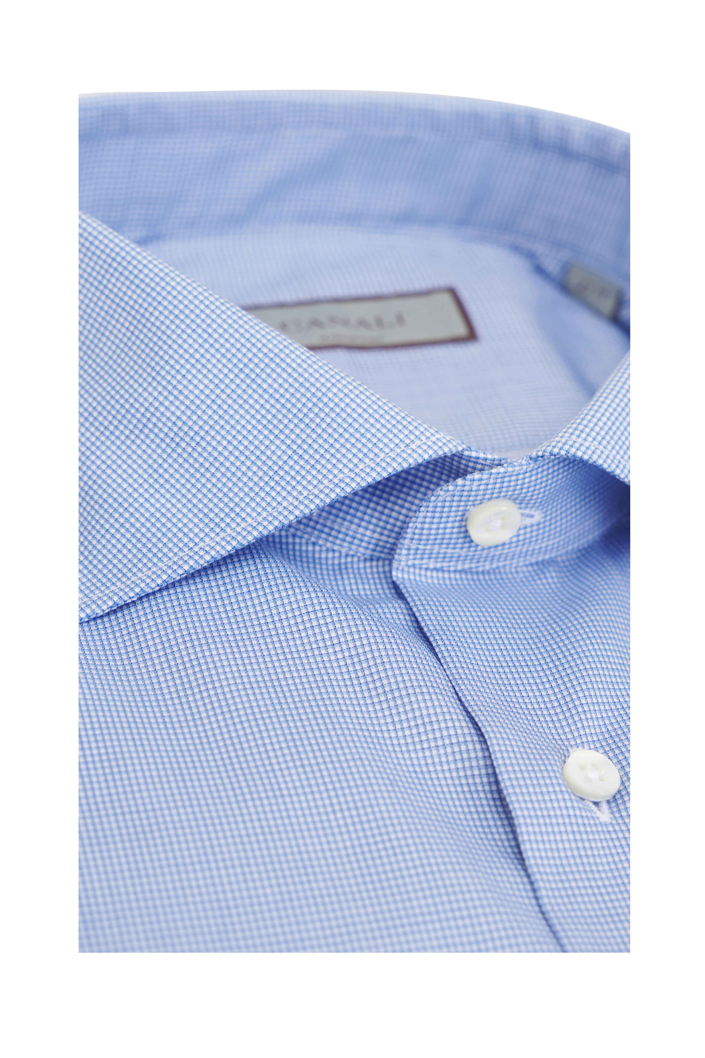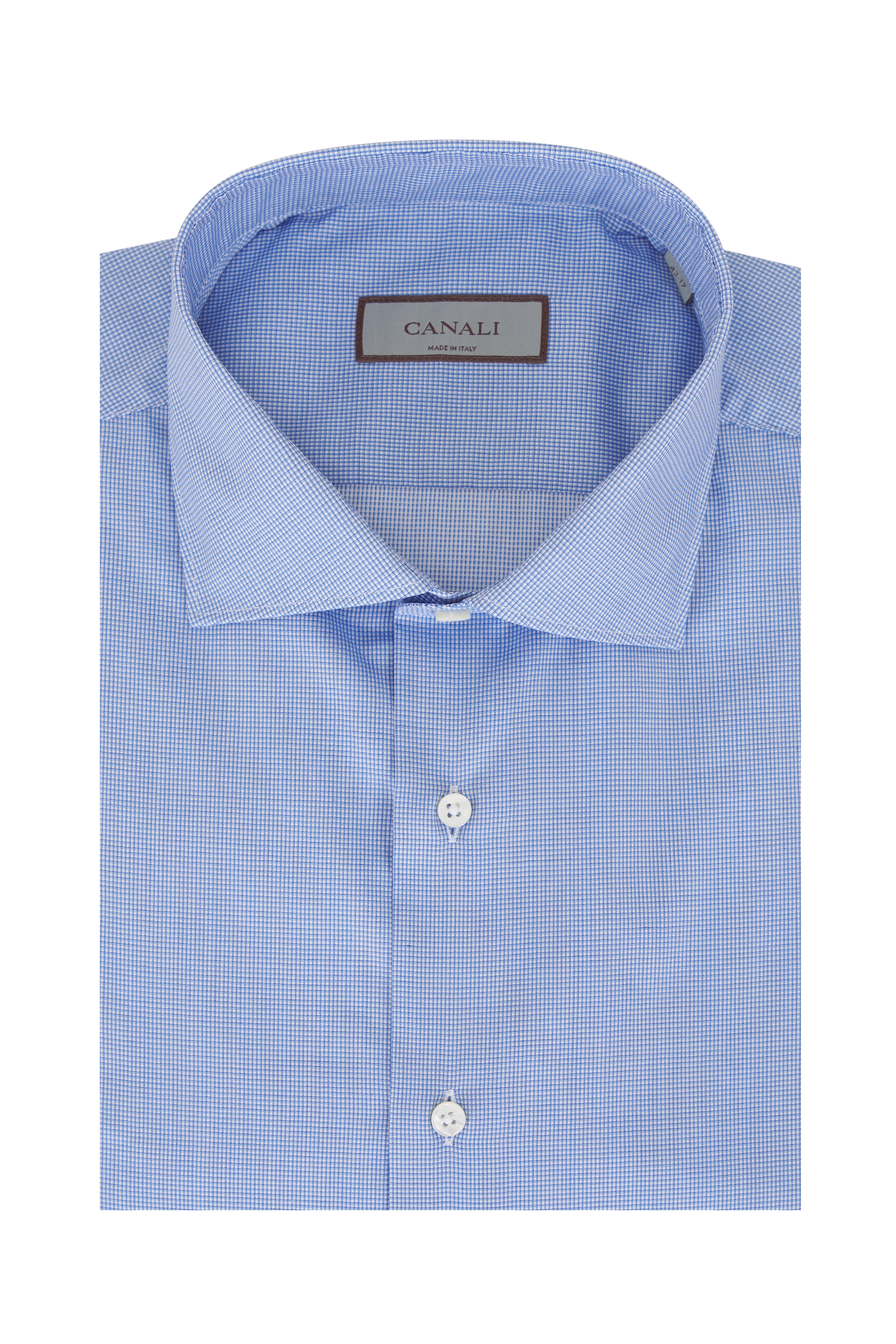 Spread collar. French front button placket. Single button barrel cuffs. Made in Italy. 100% cotton. Machine wash.