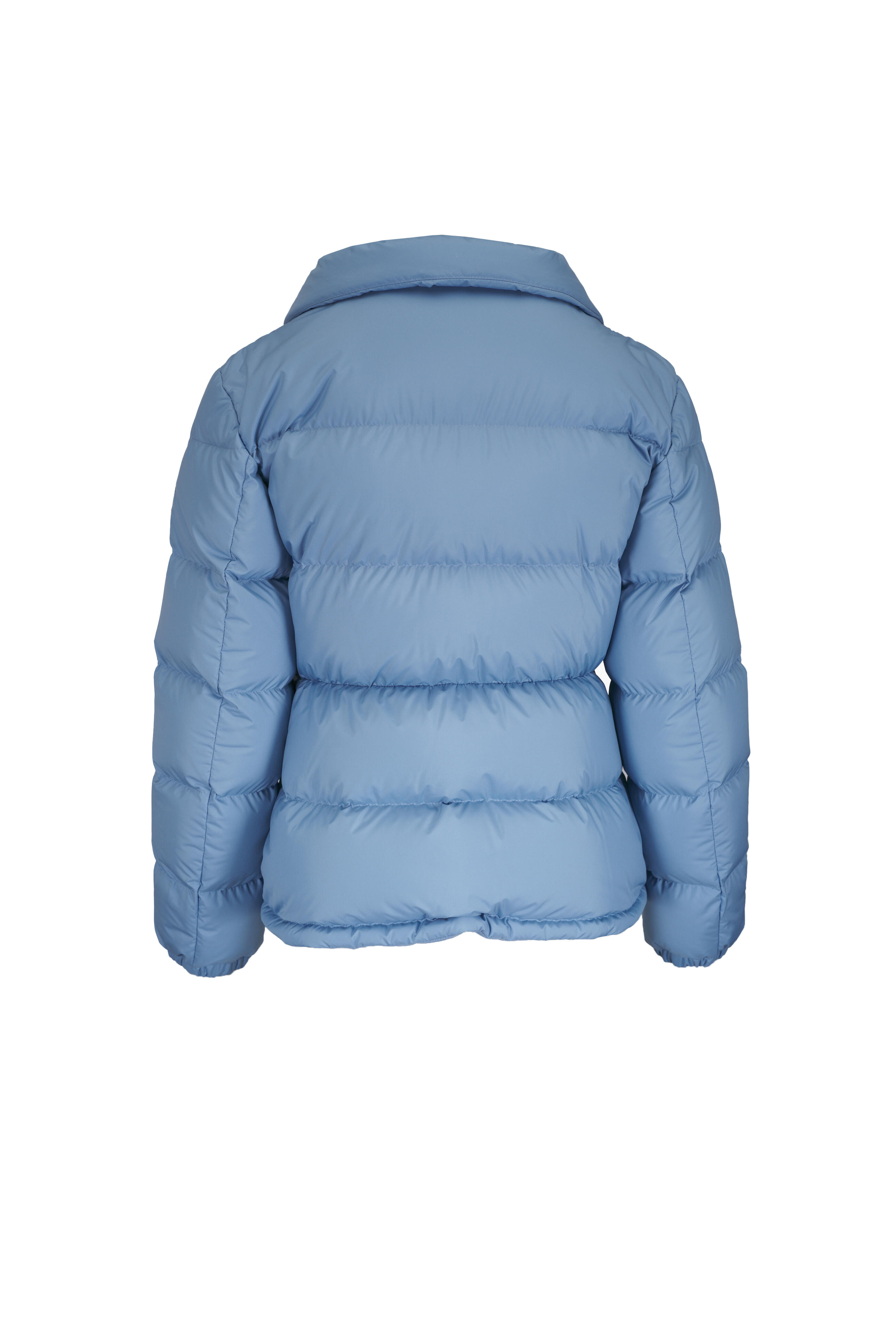 Stand collar. Two-way front zip placket. Concealed side zip pockets. Elasticized cuffs. Straight hem. Made in Italy. Shoulder to hem 25" ( size 4). 100% polyamide; Fill: 90% goose down, 10% feather. Hand wash.