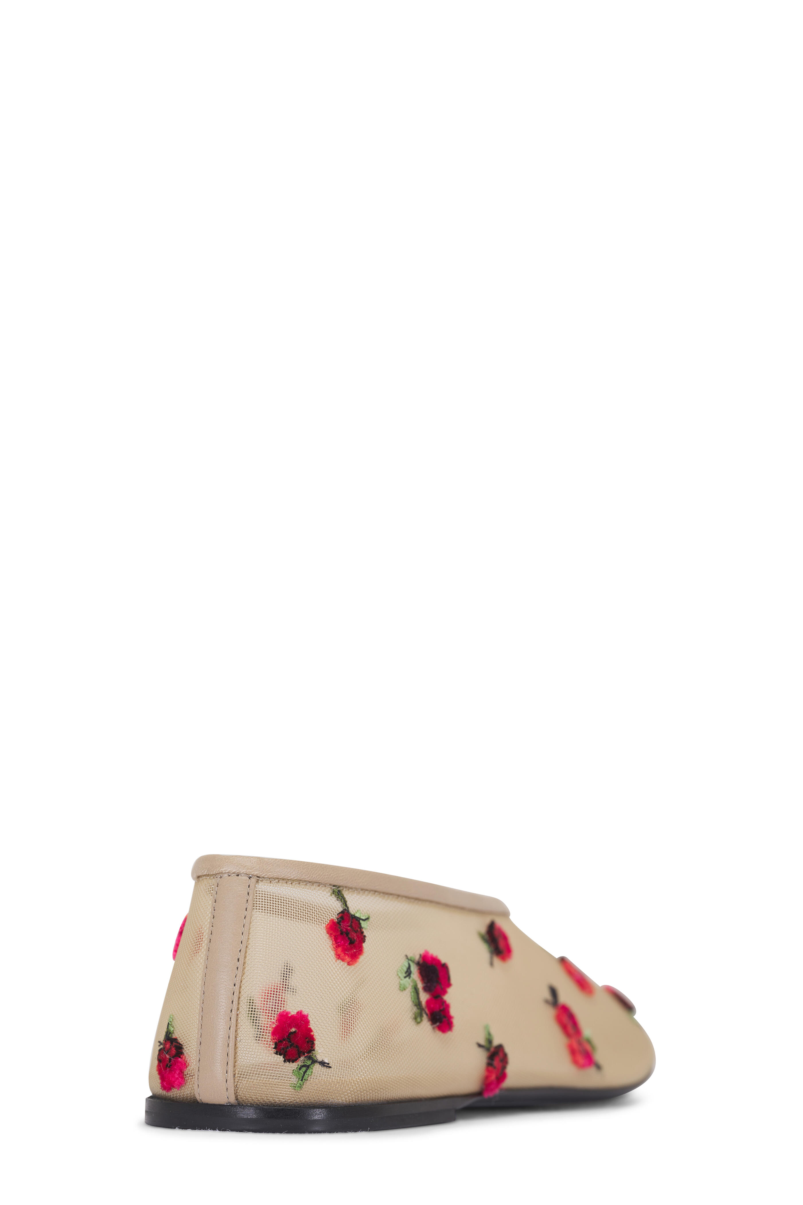 • Khaite - Marcy Beige Mesh & Raspberry Embroidered Flat