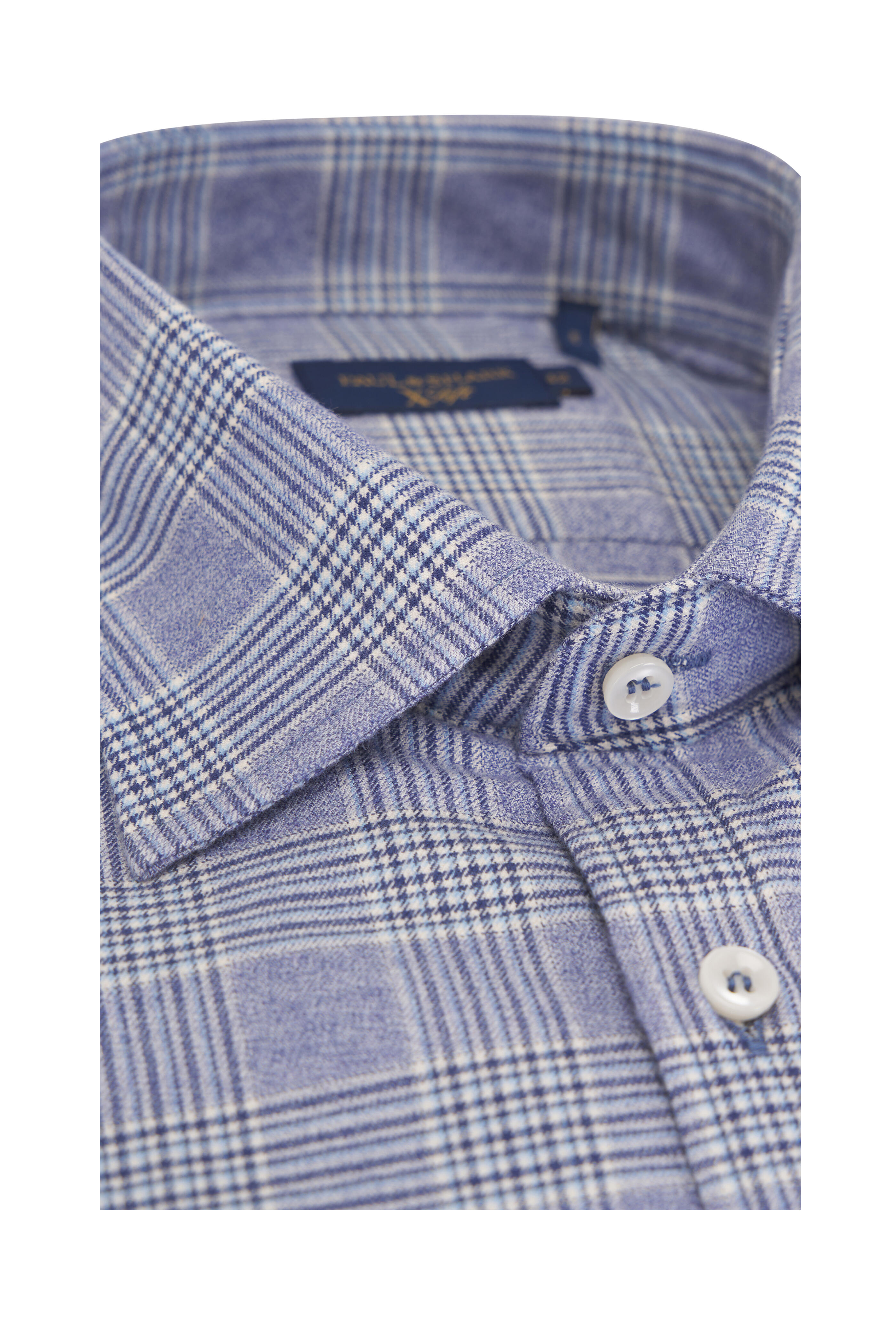 Spread collar. Front button placket. Single button barrel cuffs. Imported. 100% cotton. Machine wash.