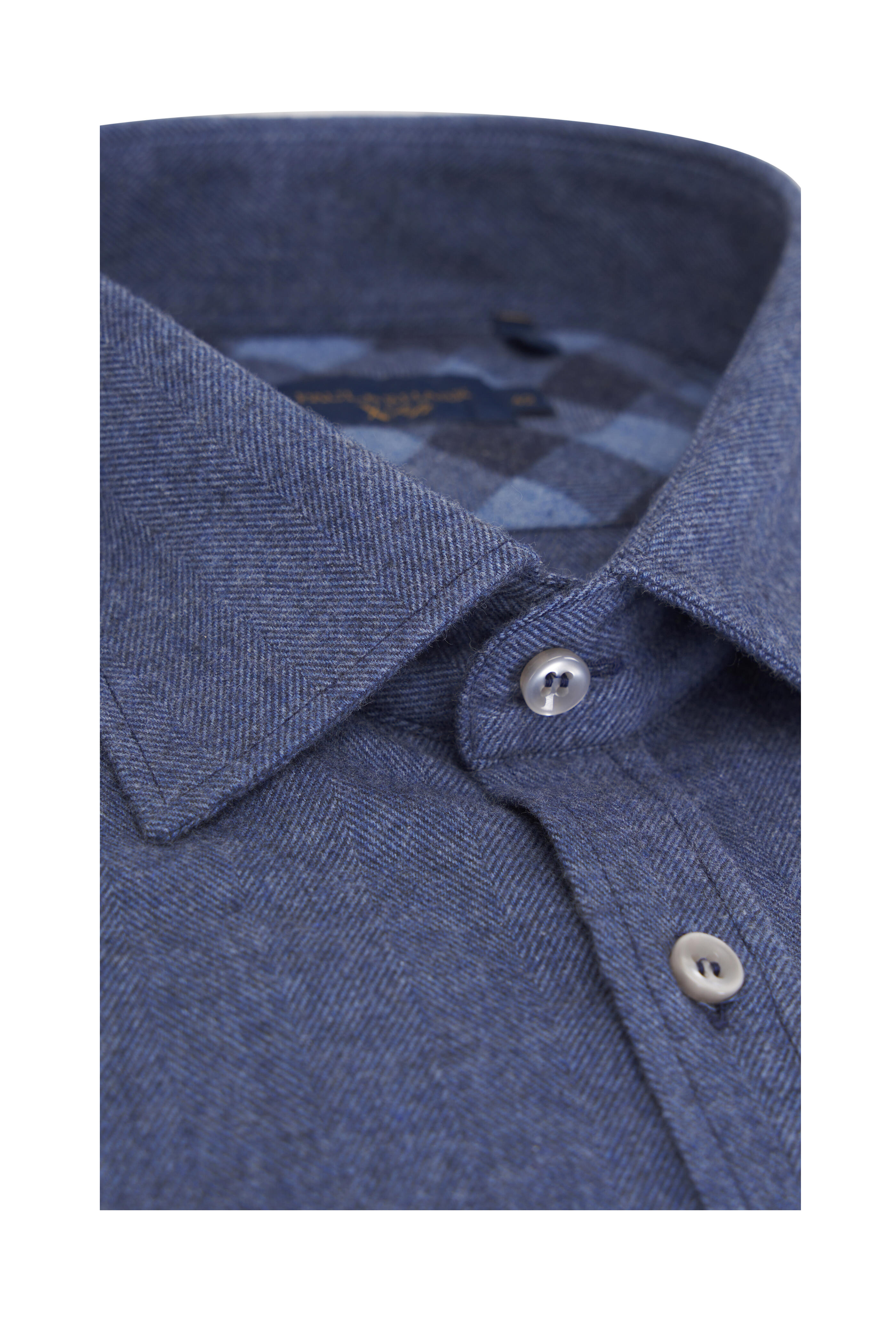 X-Soft Blue Herringbone Flannel Sport Shirt