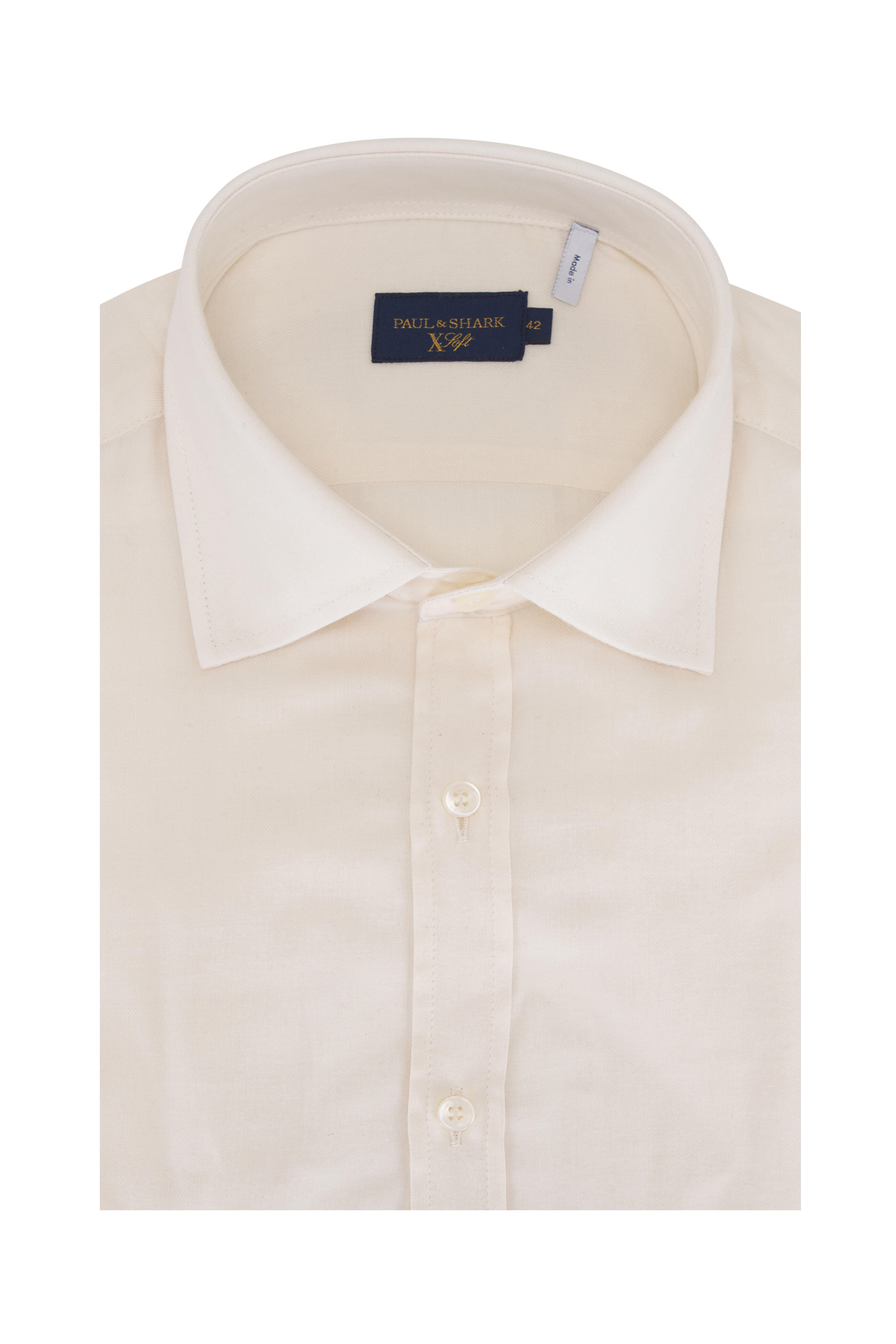 X-Soft Ecru Herringbone Sport Shirt