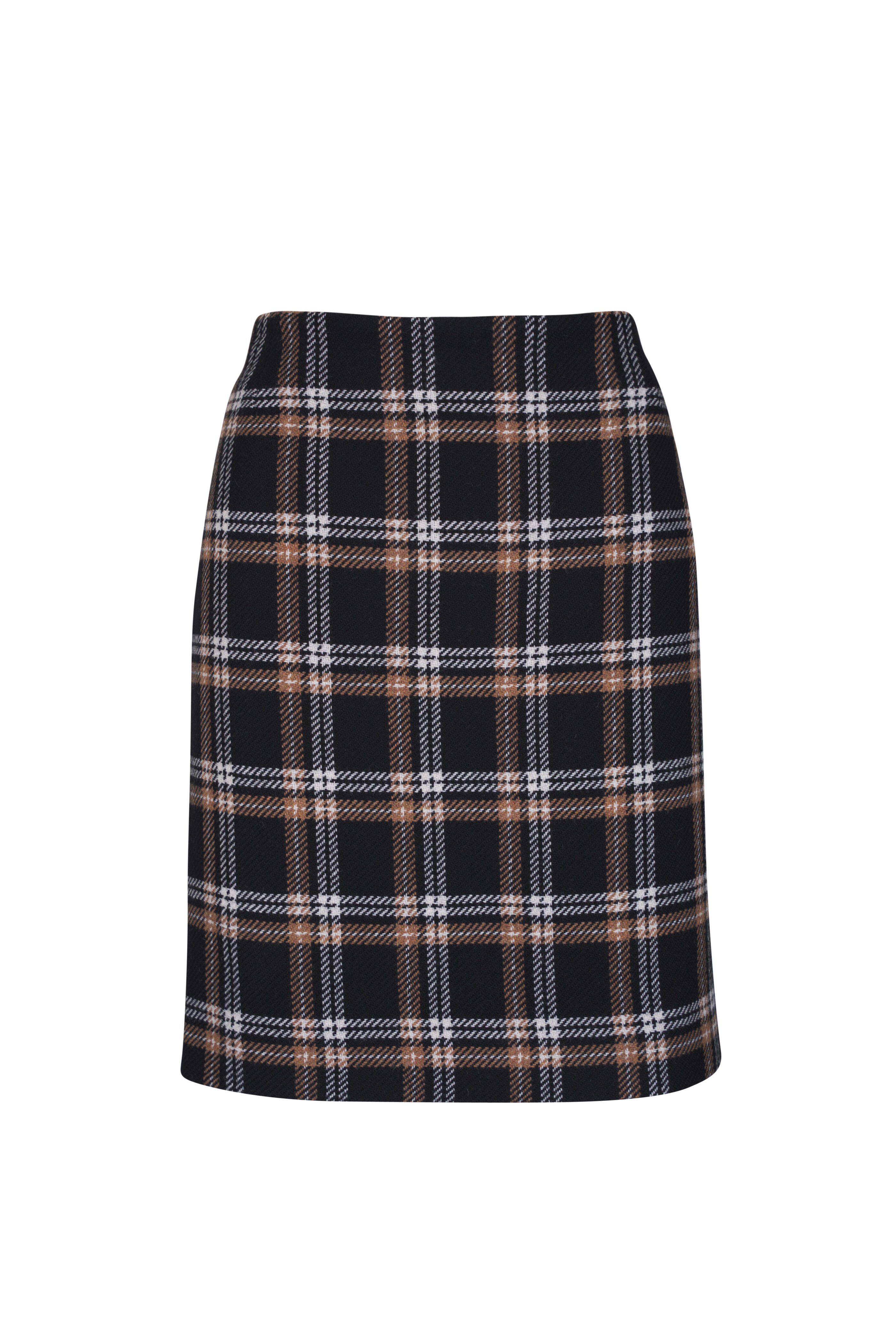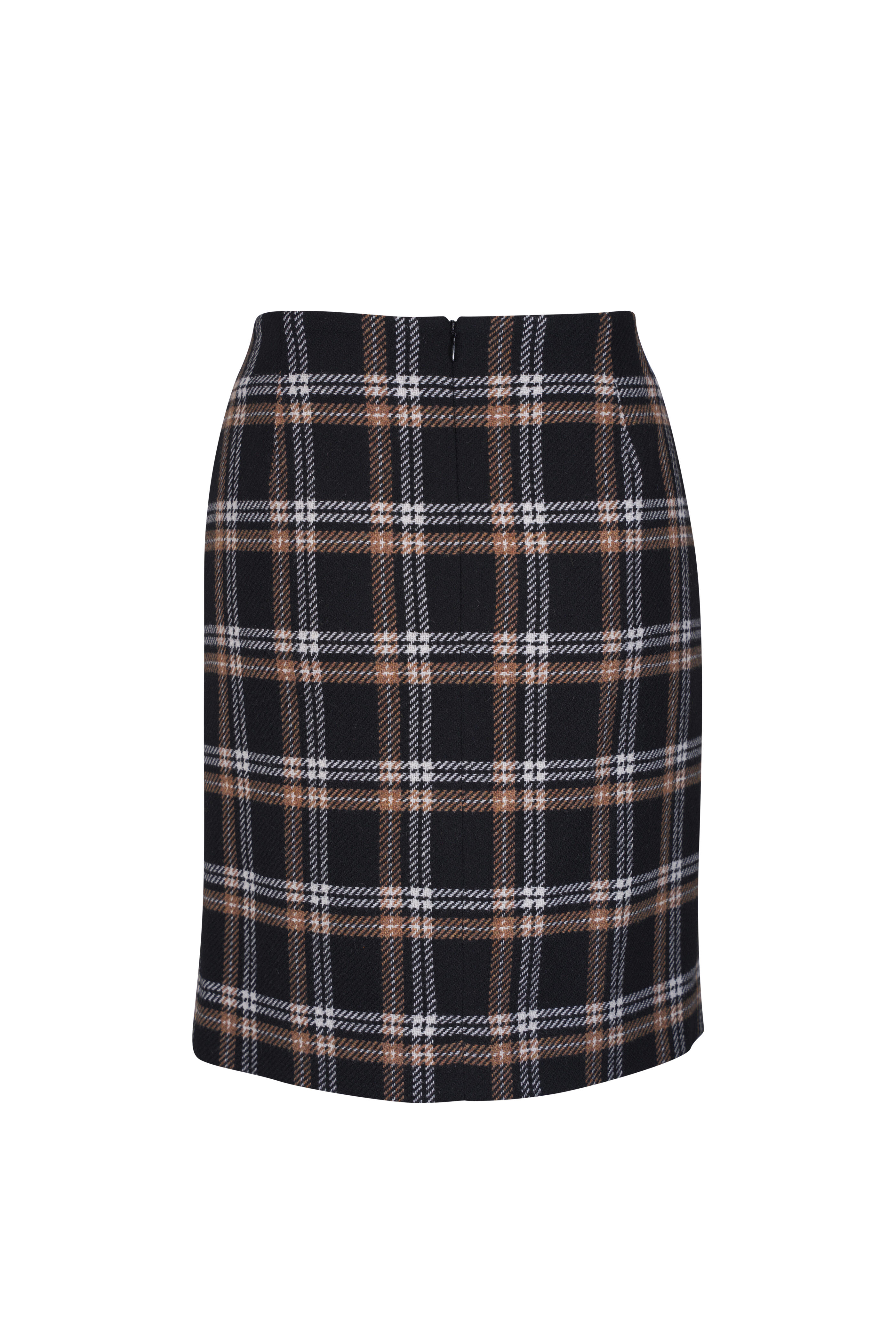 Concealed back zip. Imported. 20" length. 70% wool, 30% polyester; lined. Dry clean.