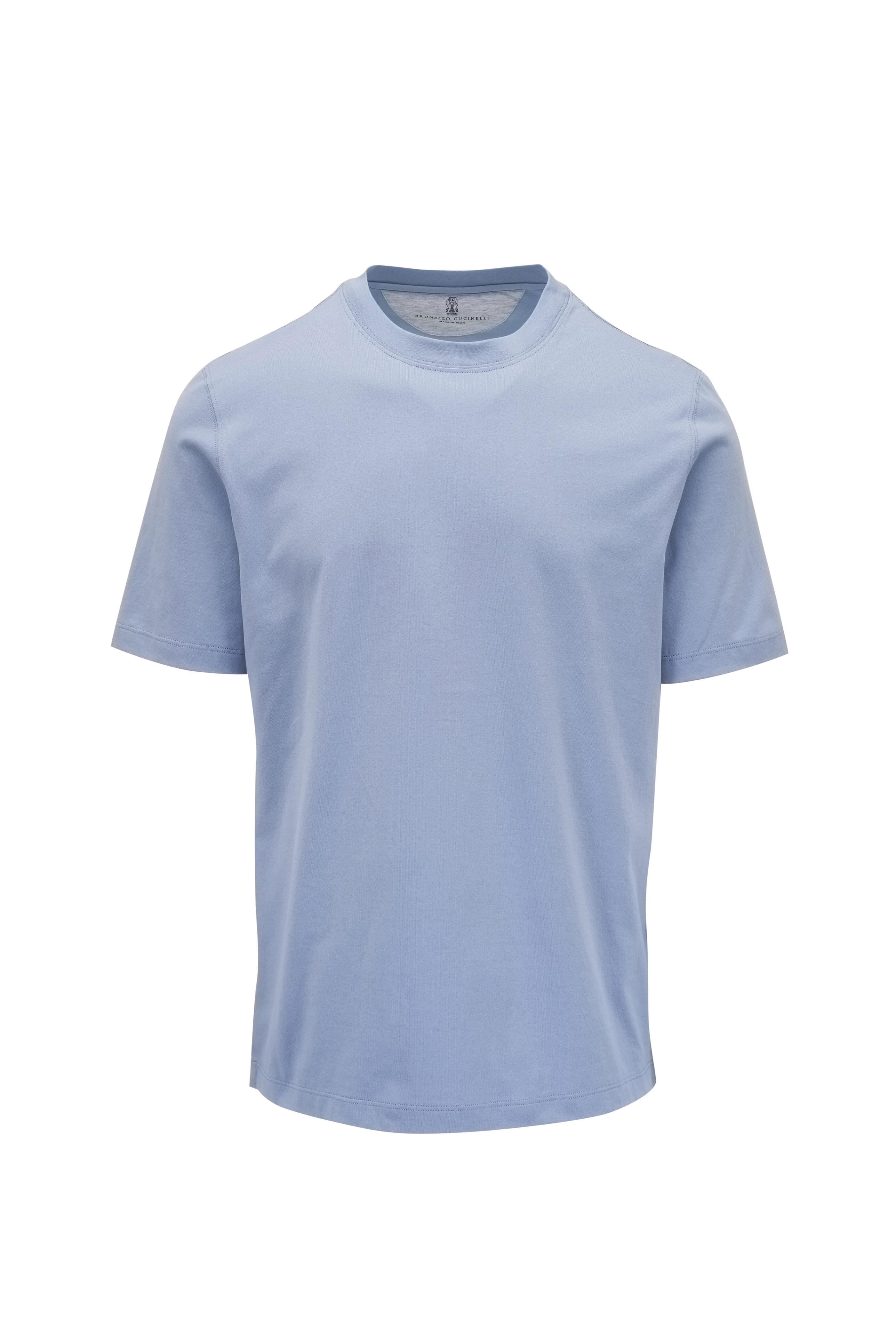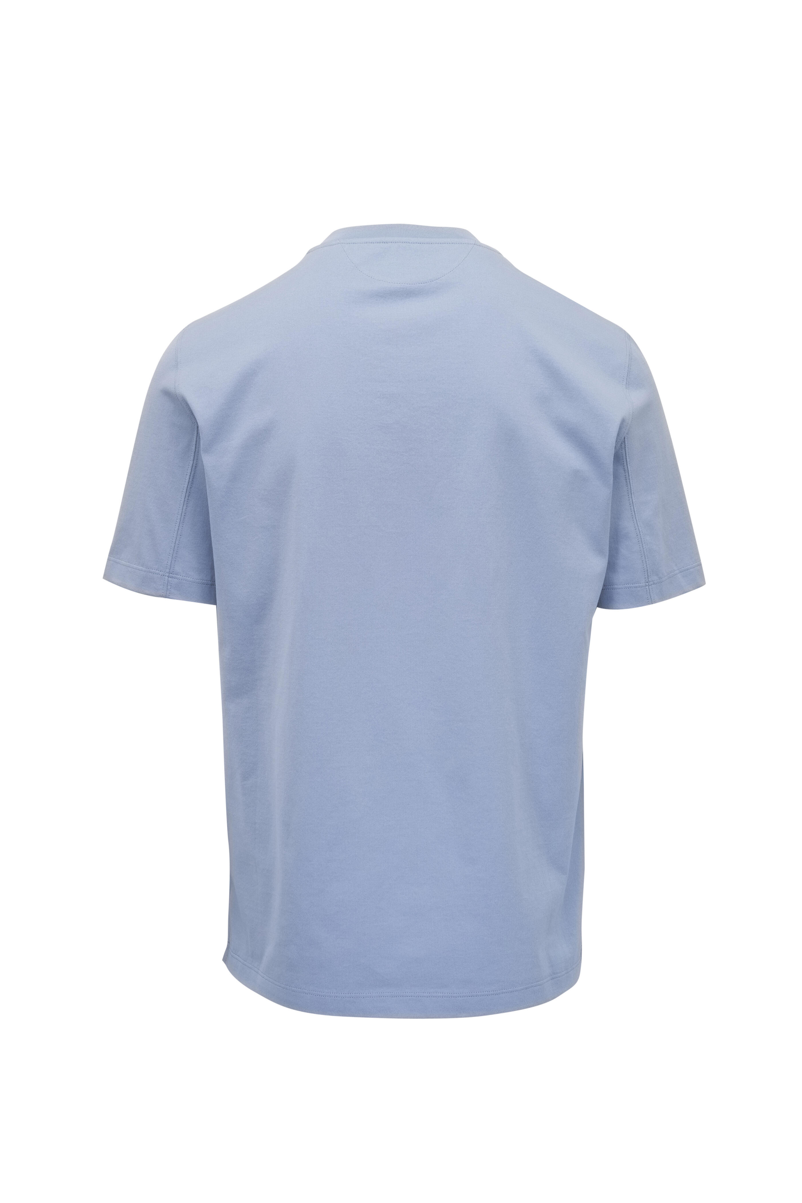 Crewneck collar. Pullover style. Short sleeves. Vented hem. Made in Italy. Shoulder to hem 29" (size L). 100% cotton.