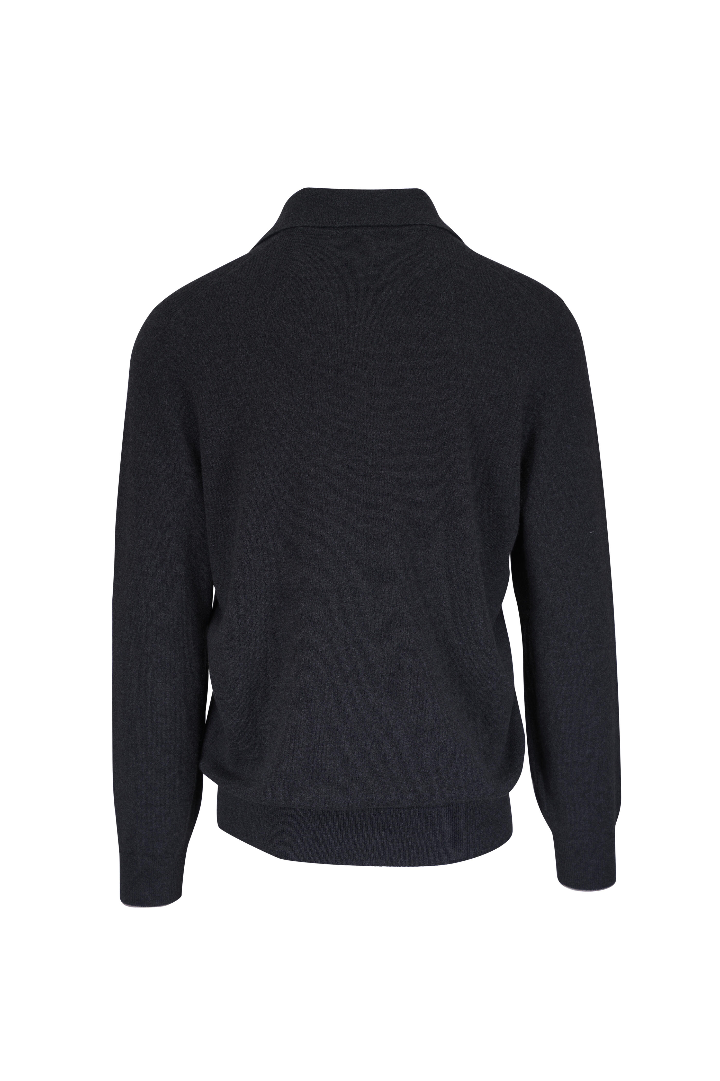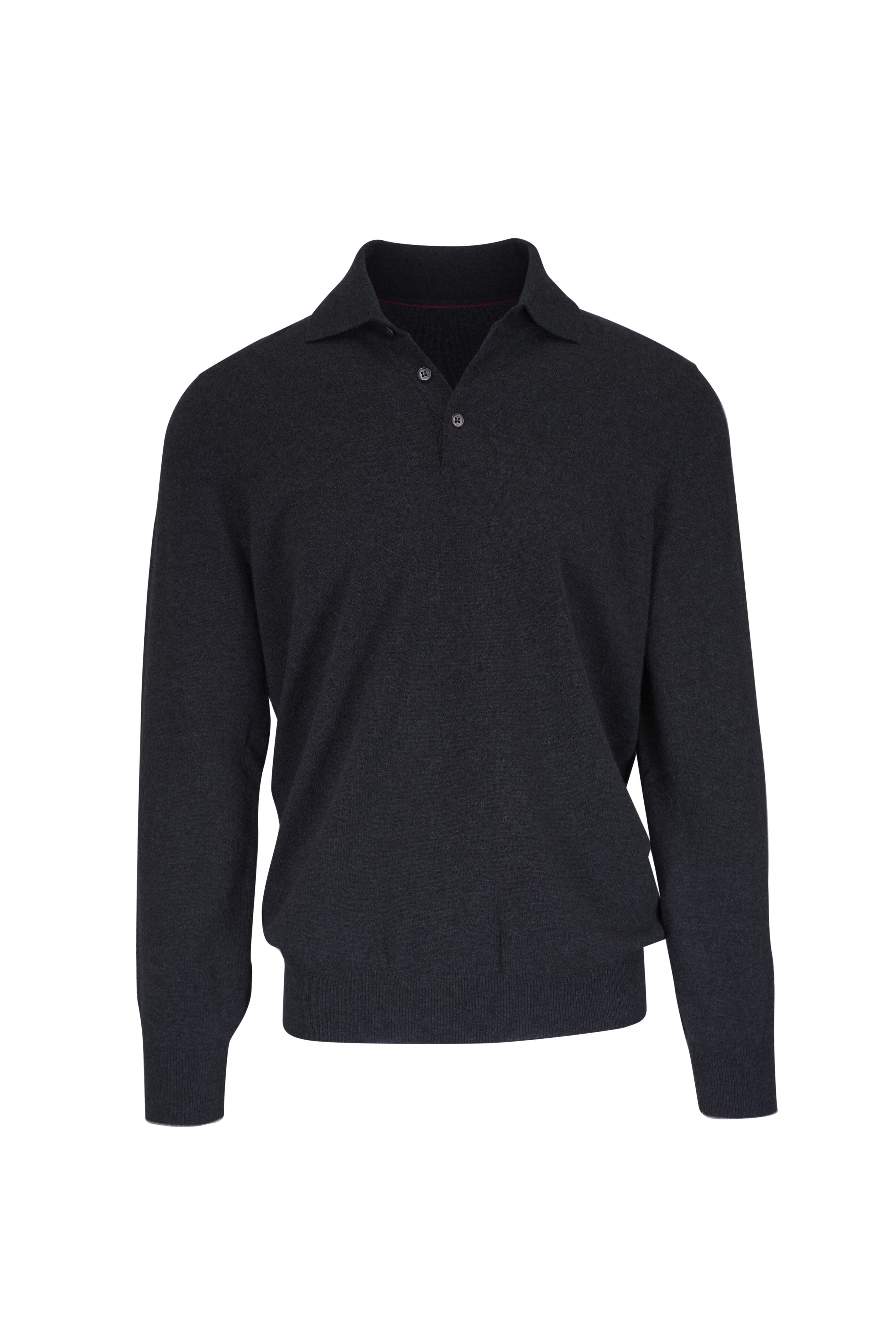 Anthracite Cashmere Long Sleeve Polo
