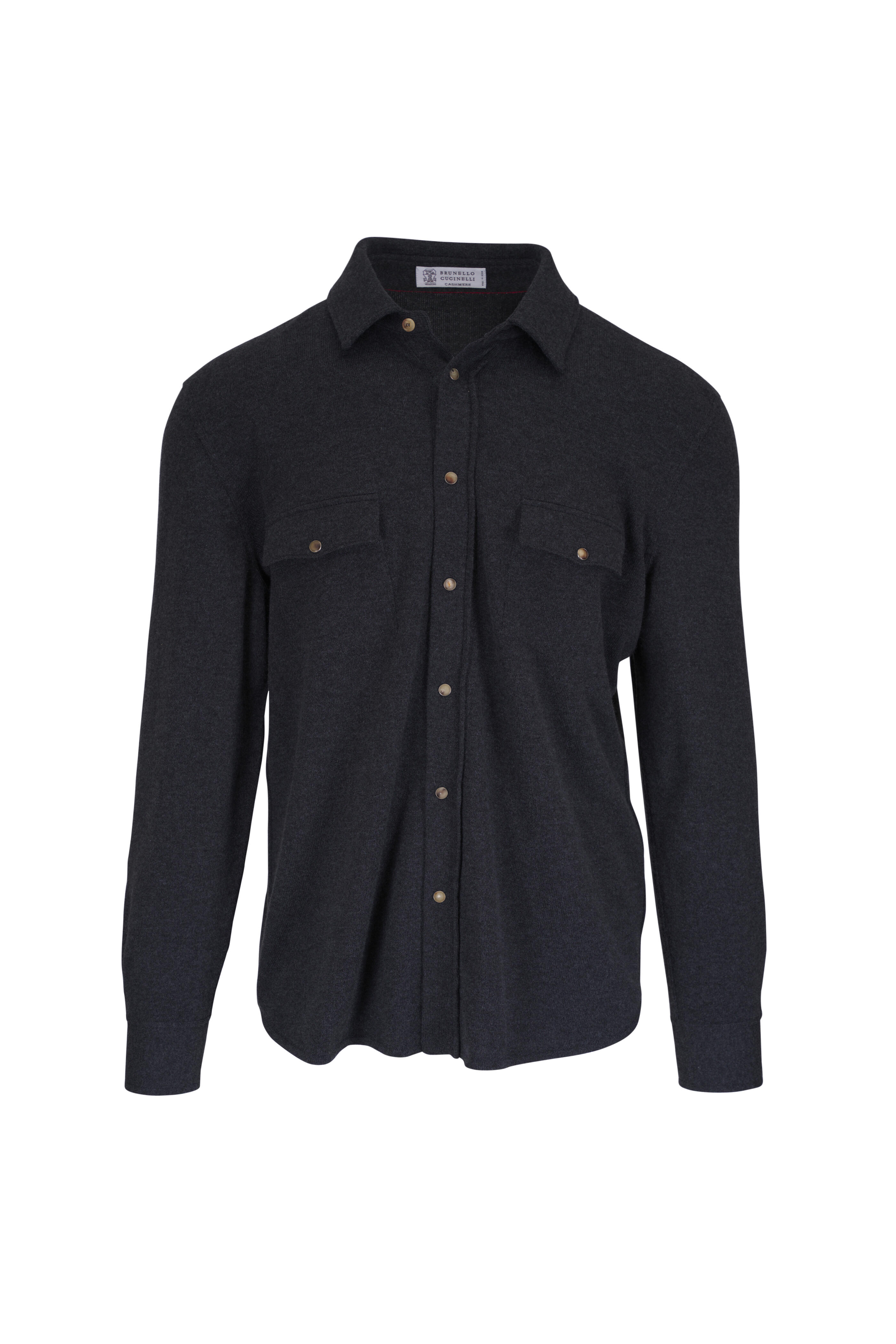 Dark Gray Wool, Cashmere & Silk Sweater Shirt