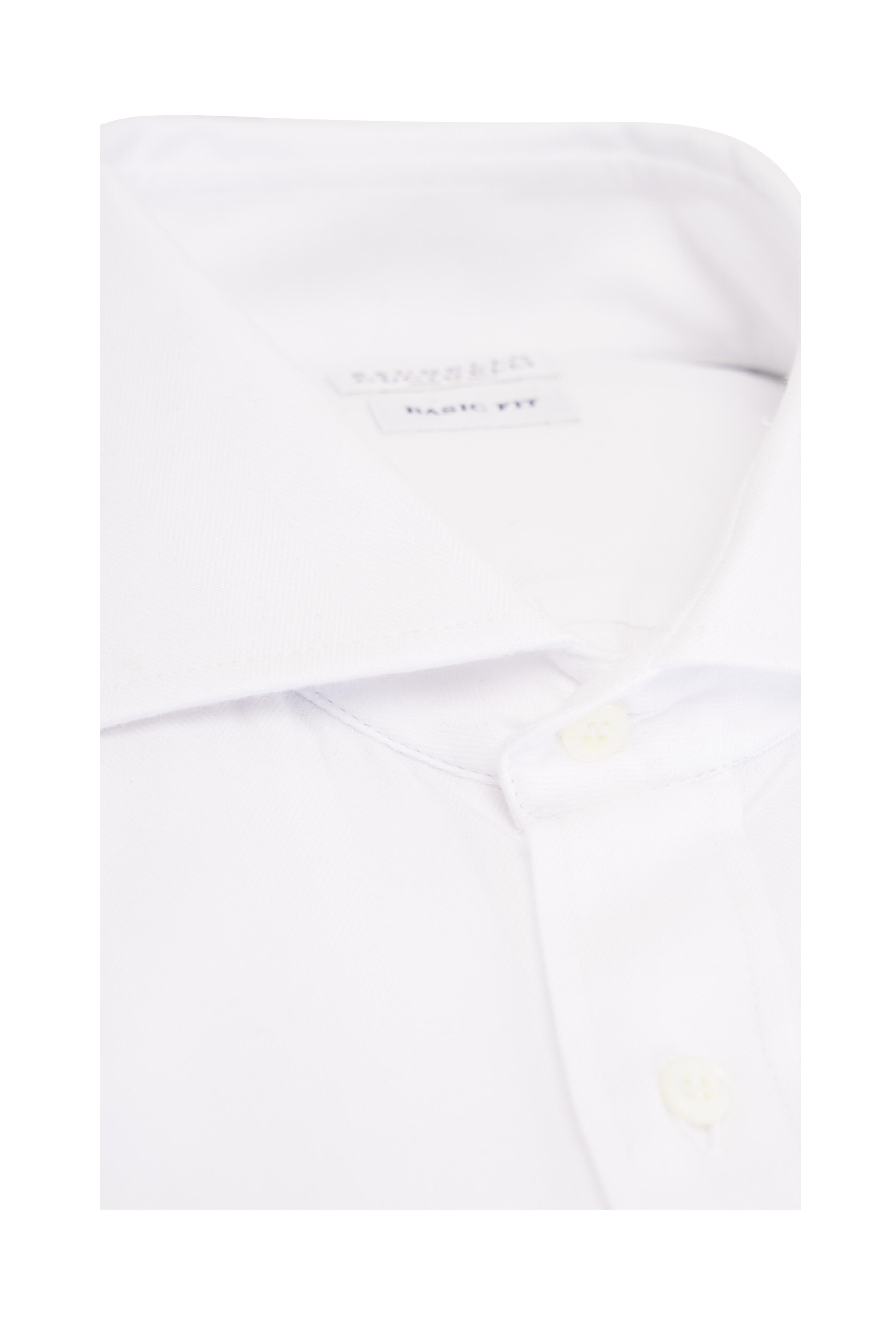 Spread collar. French front button placket. Double button barrel cuffs. Made in Italy. Basic fit. 59% cotton, 41% lyocell. Machine wash.