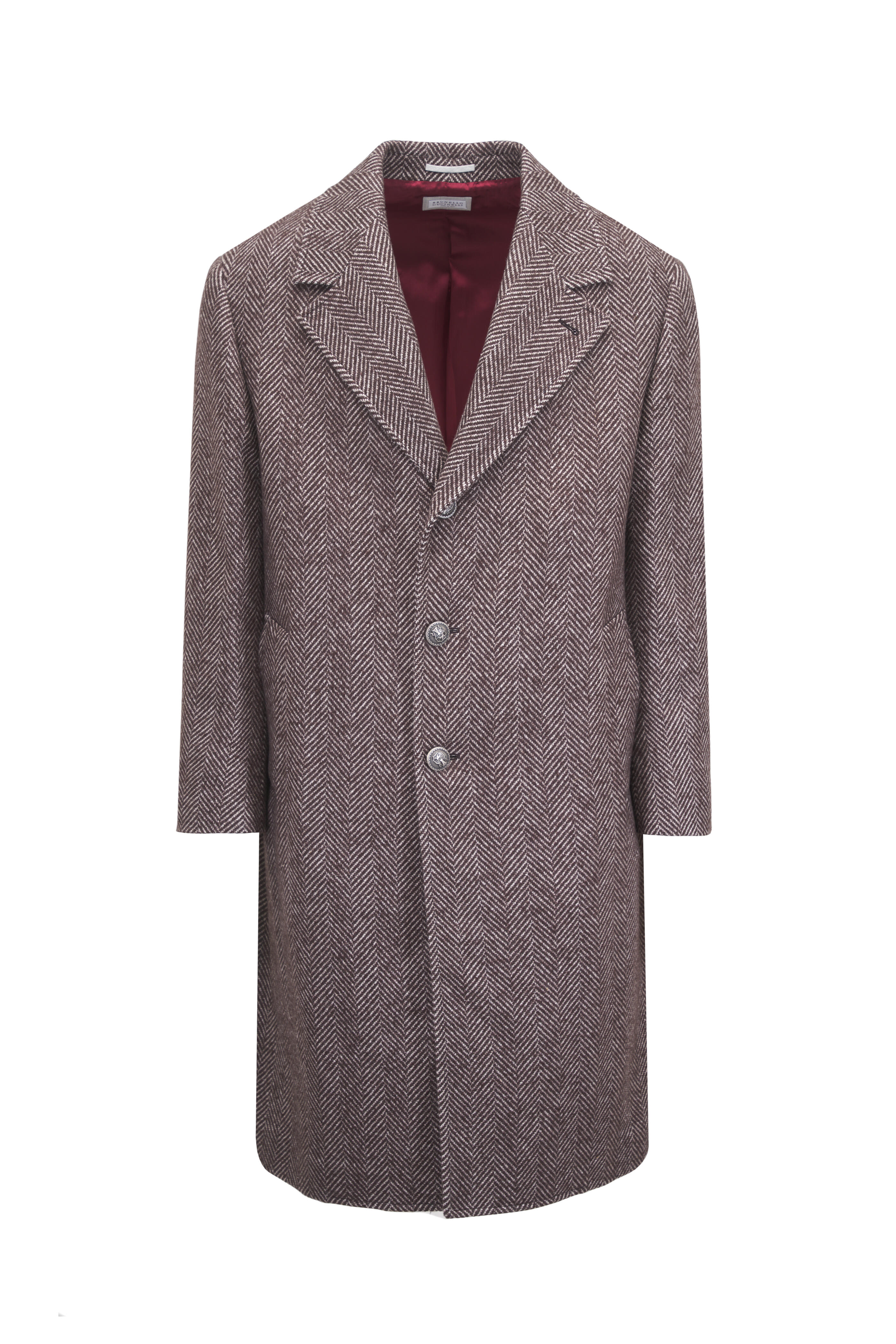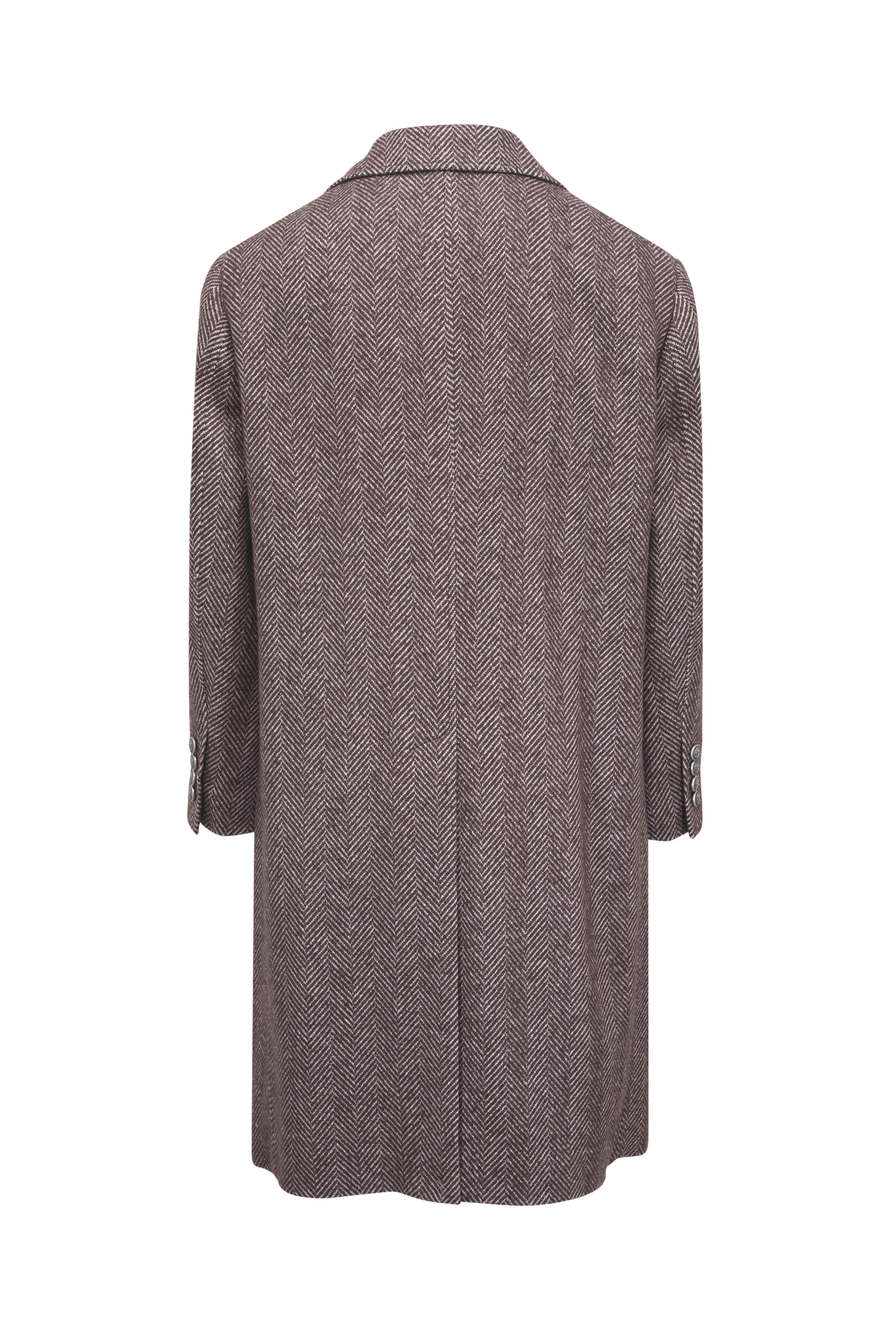 Brown Herringbone Cashmere & Silk Overcoat