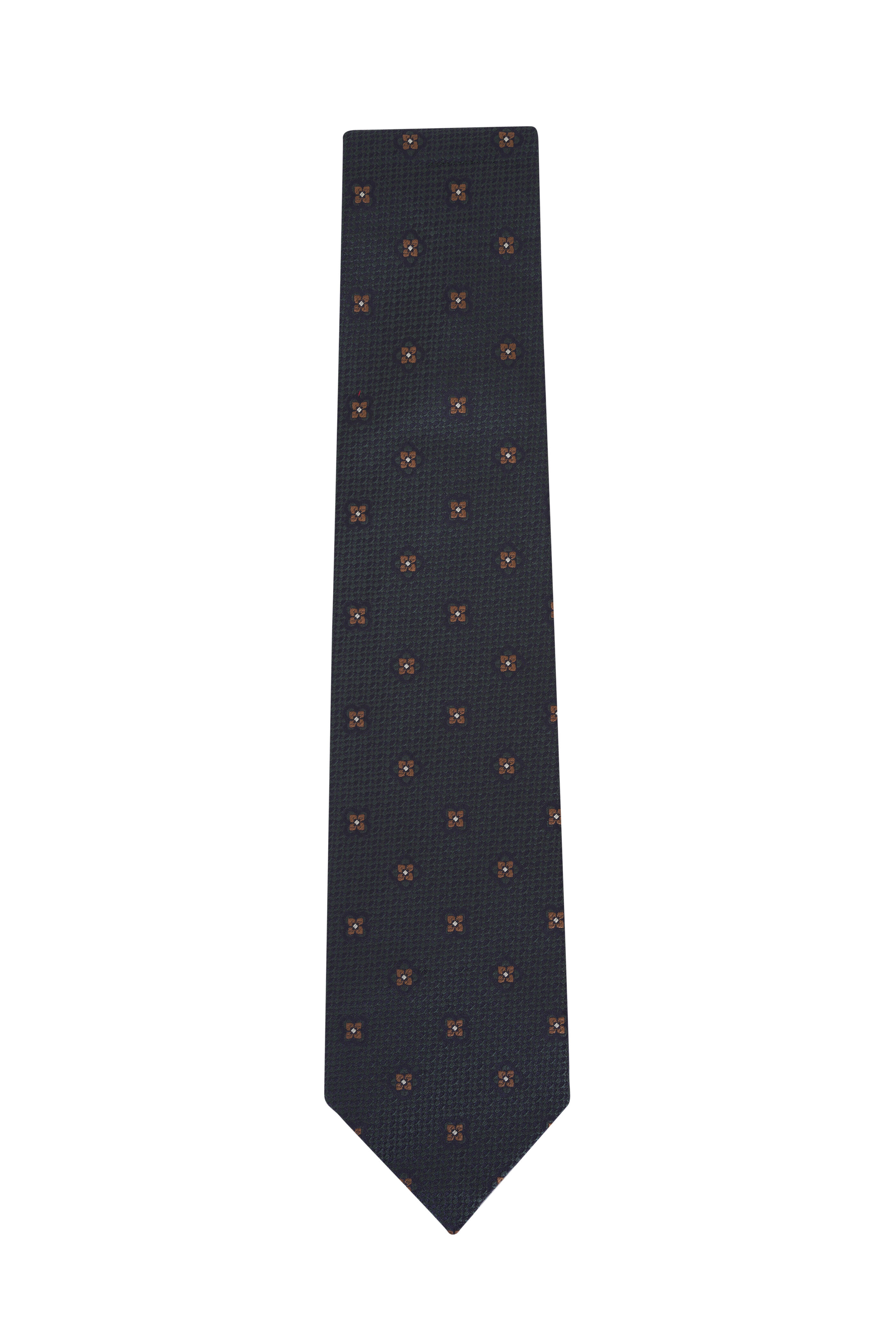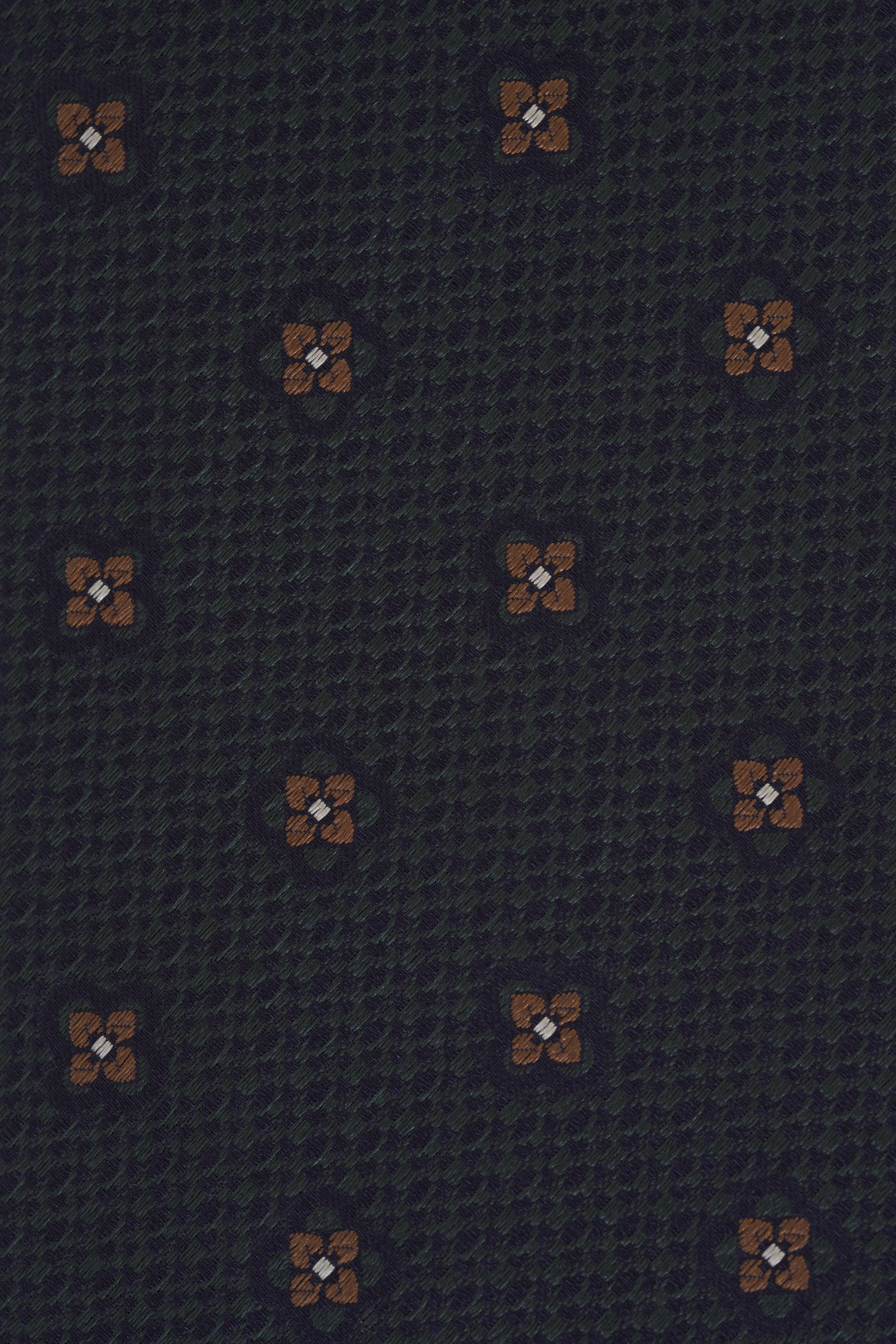 Navy, Green & Brown Floral Print Silk Necktie