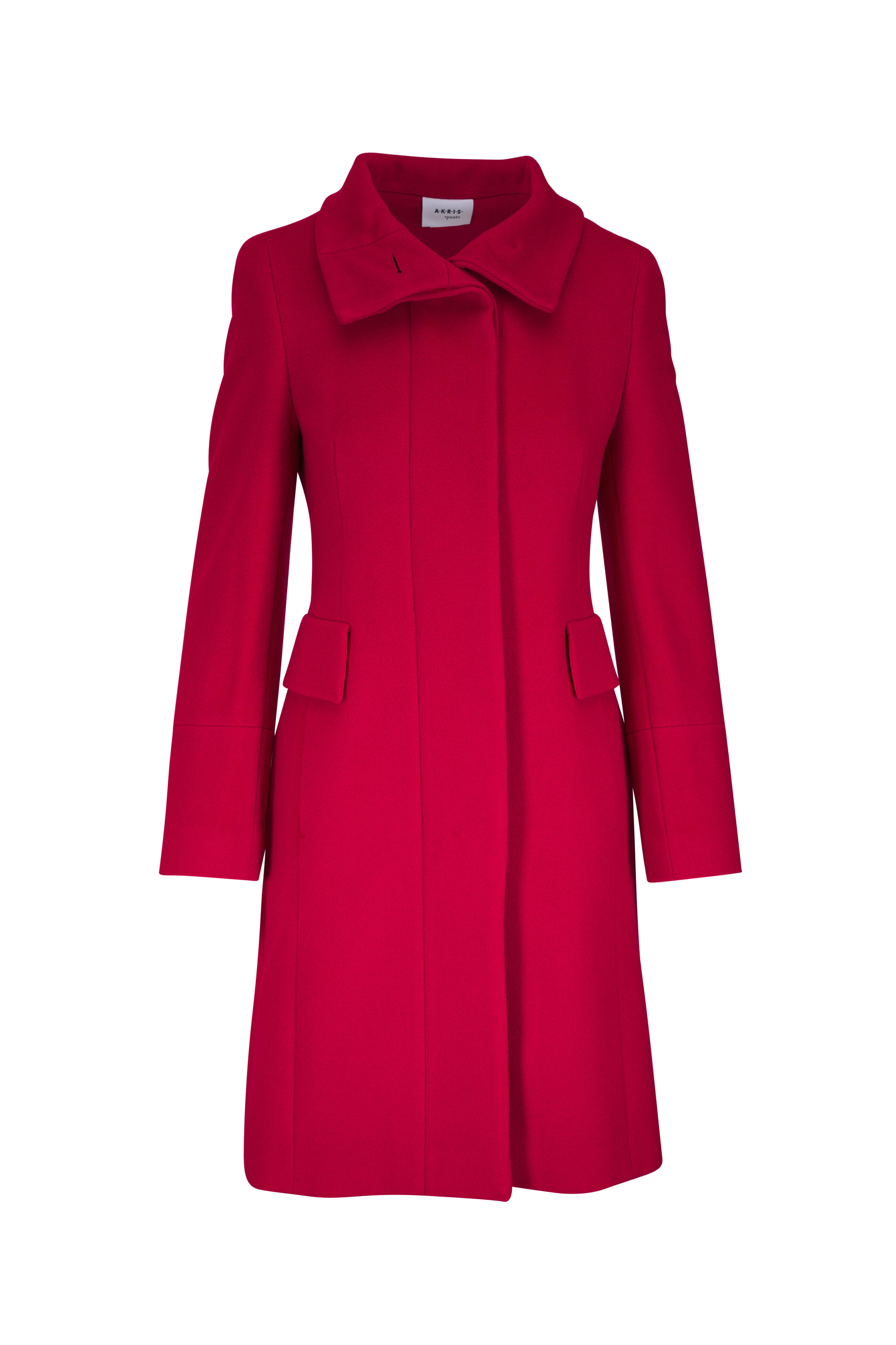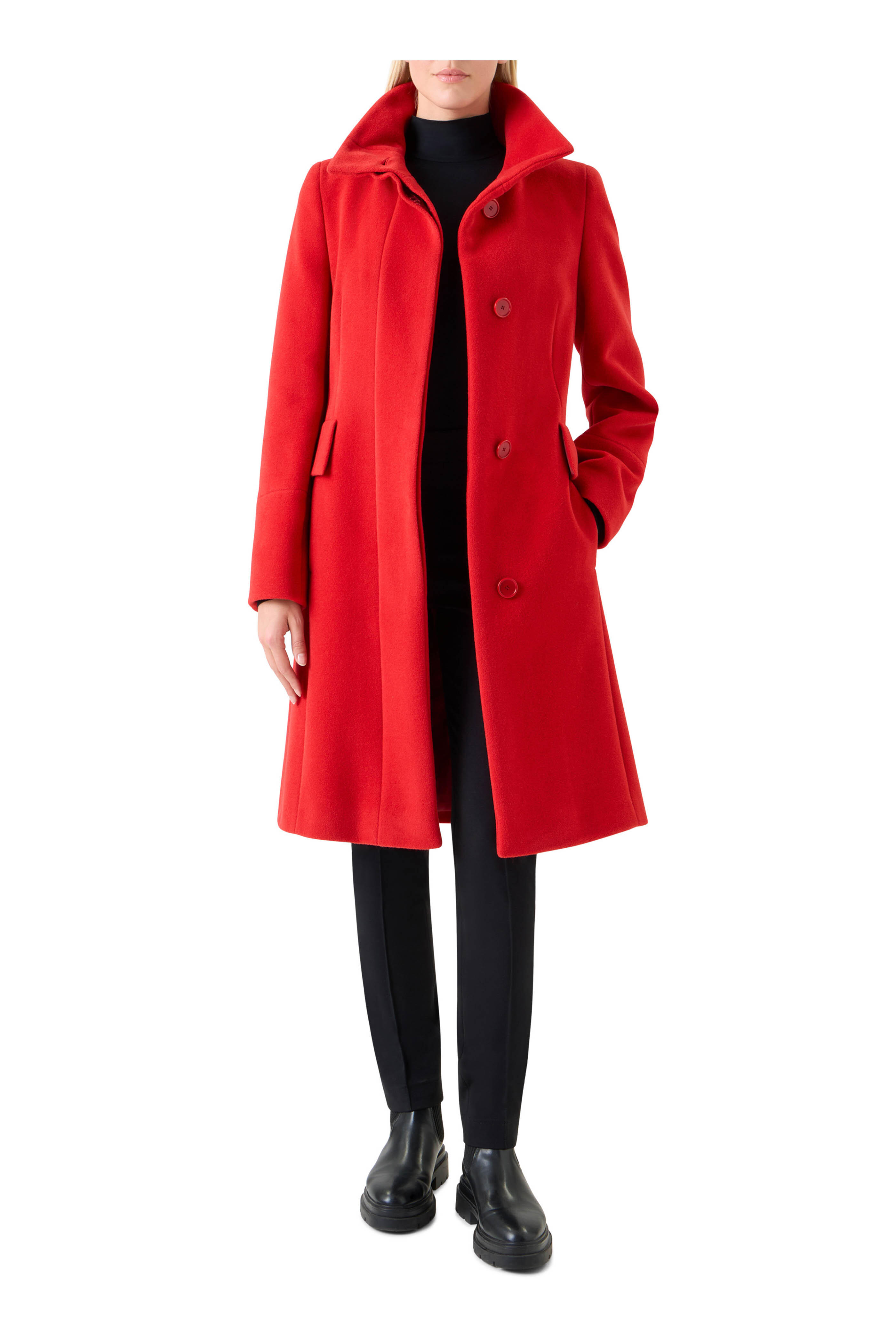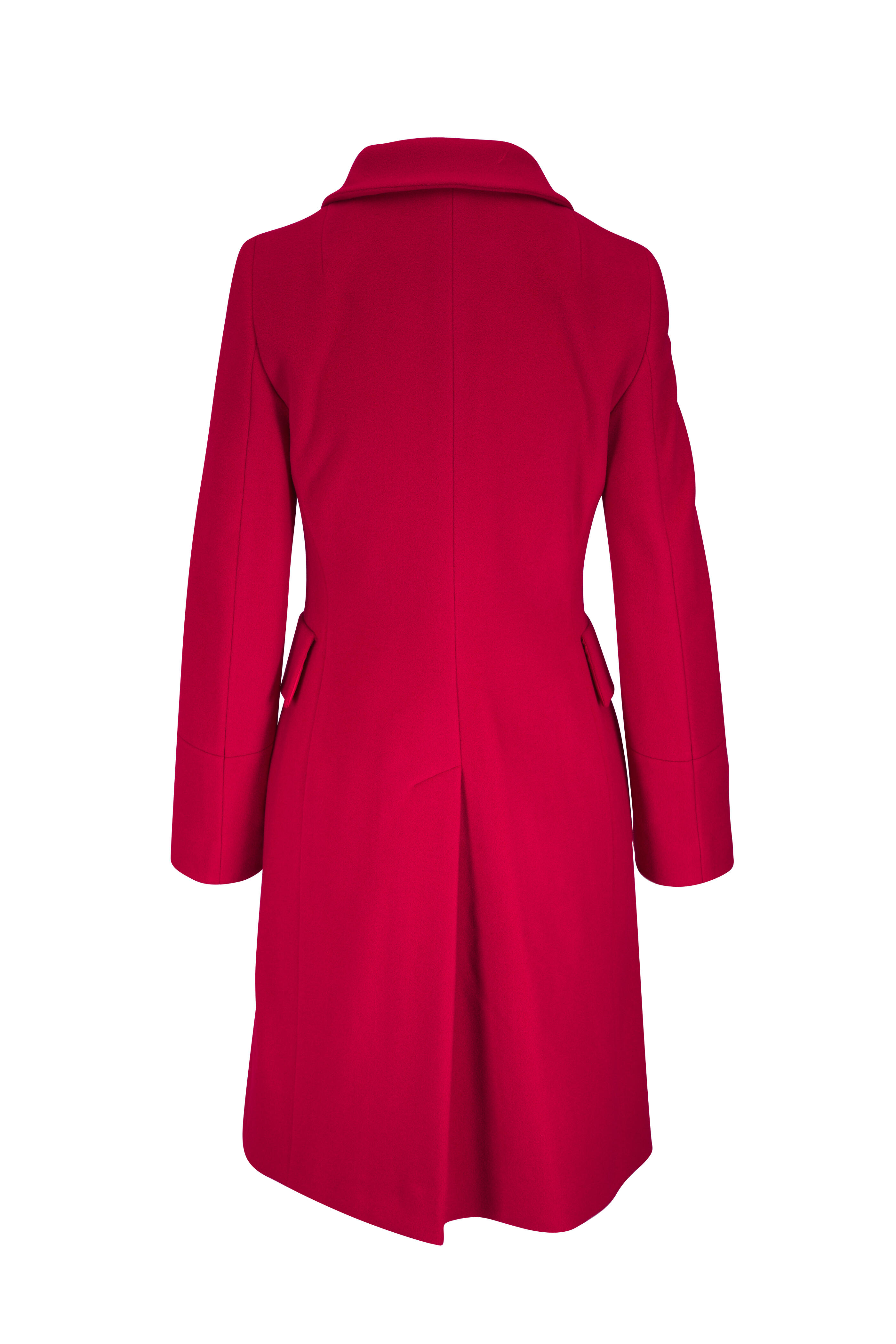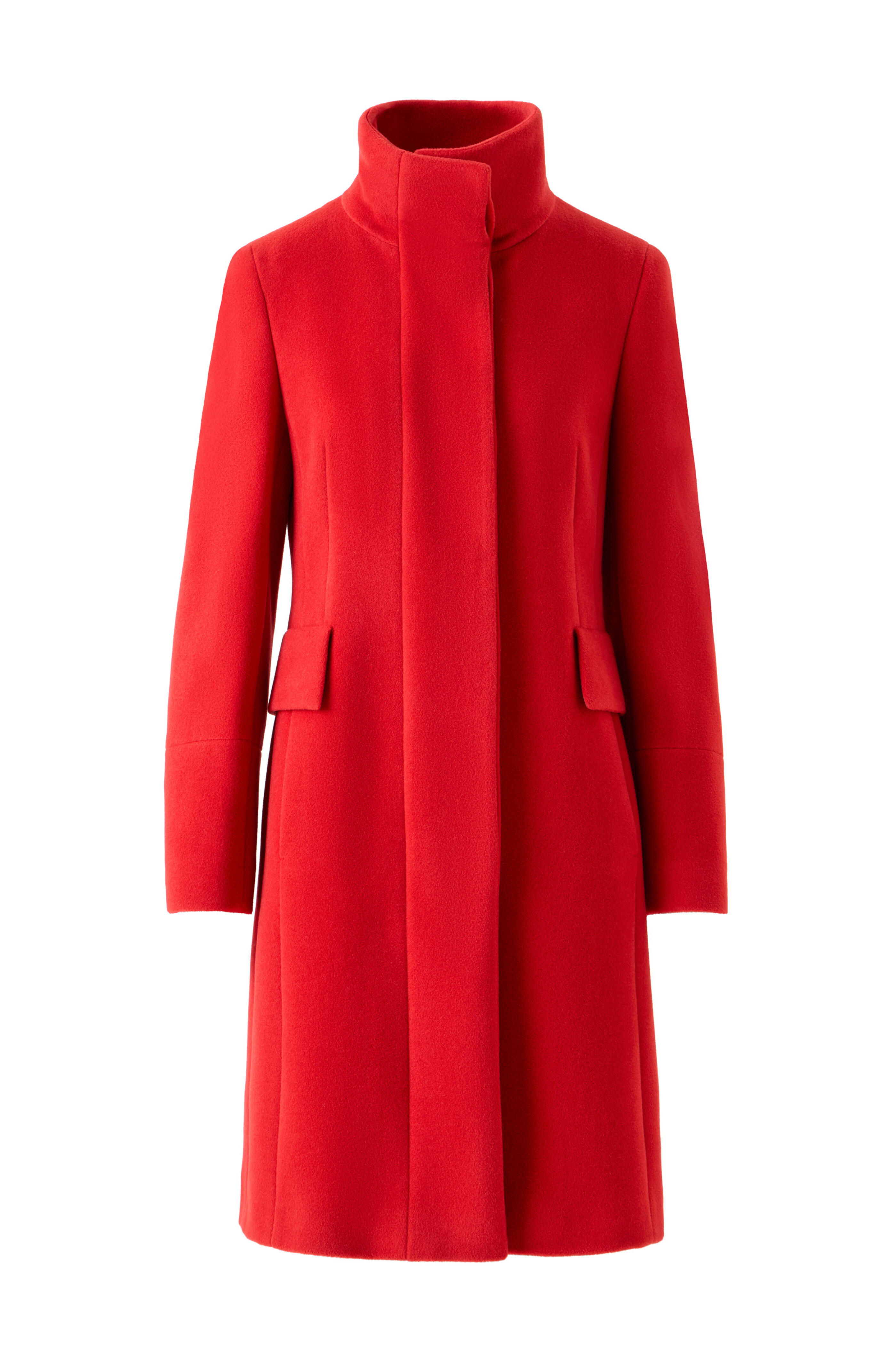 Fold-over stand collar. Concealed front button placket. Side slip pockets; faux flap pockets. Back vent. Fabric from Italy. Approximately 39" shoulder to hem (measurements taken from size 4). 75% virgin wool, 20% polyamide, 5% cashmere. Dry clean.